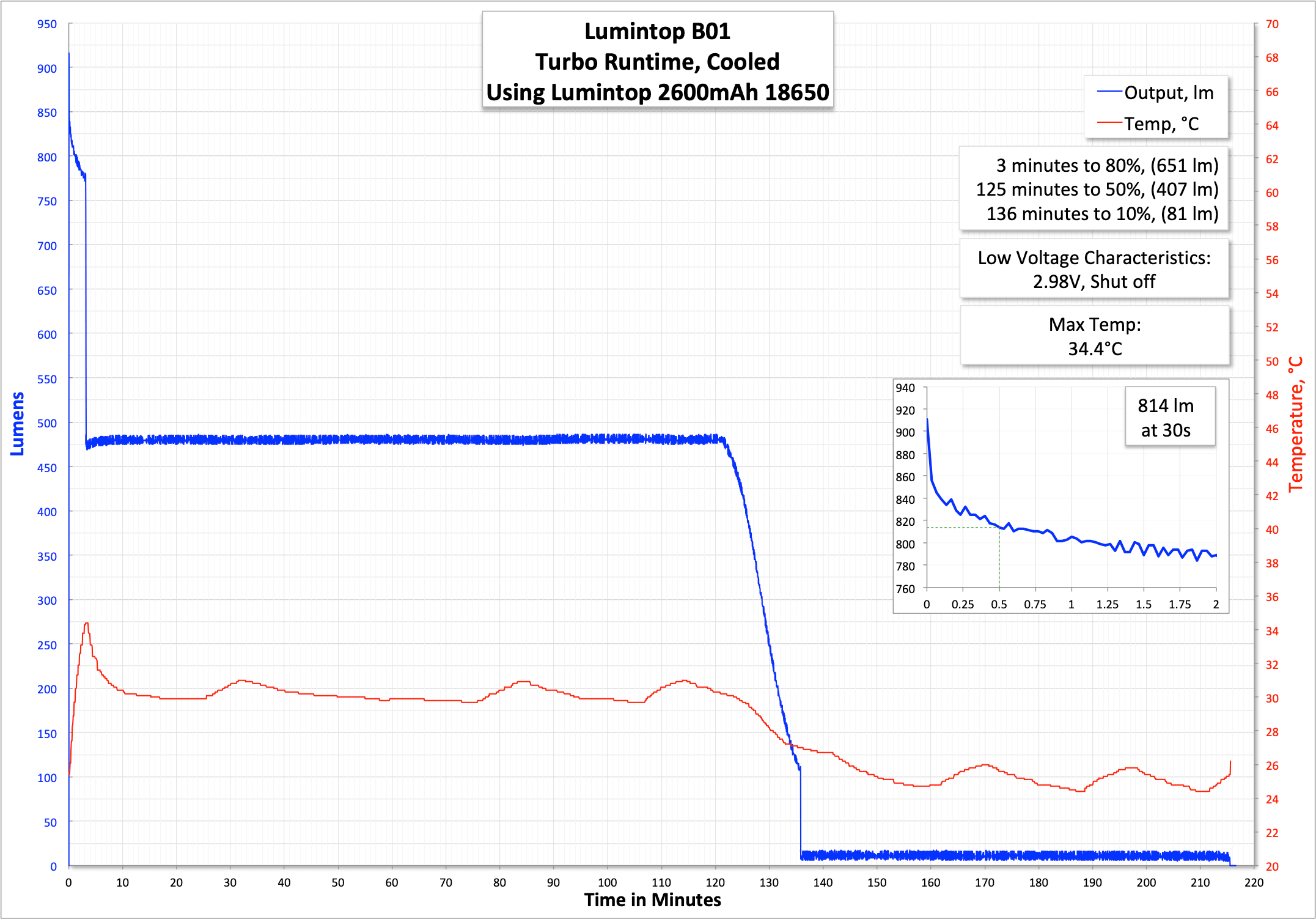 | Measured Lumens (at 30s) | 814 (95.8% of claim)^ |