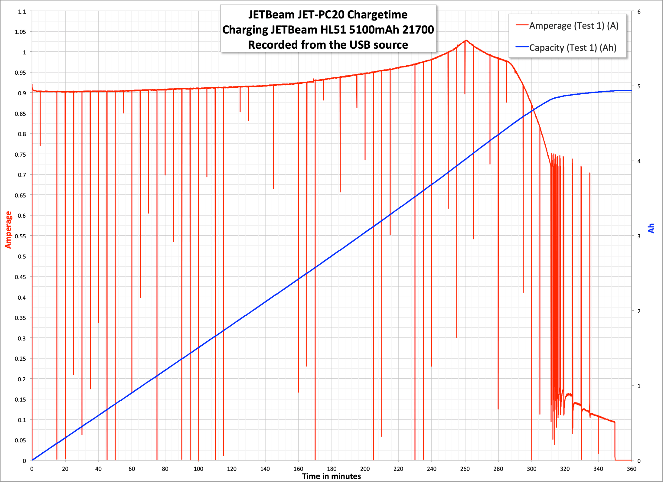 Charging is maybe surprisingly slow – USB-C can handle more than 0.9A (max 1A). A cell of 5100mAh capacity can handle more than a 1A charge rate. And there are a bunch of dropouts during charging. But there’s nothing really wrong with charging slowly, and I don’t know what to make of the dropouts, so I’ll give this one an “ok” for charging.