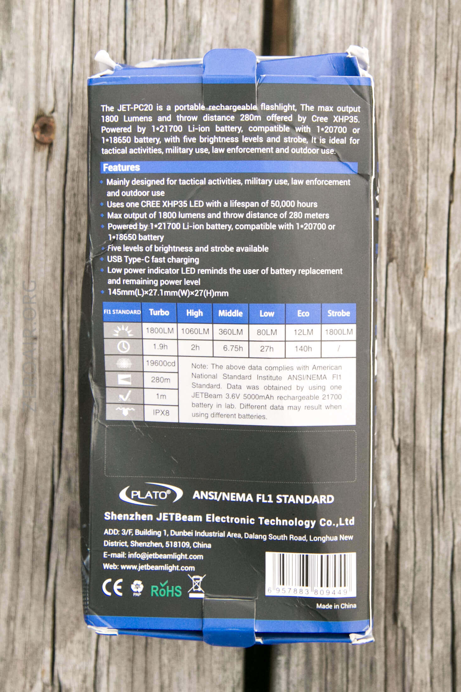 Here’s a link to the JETBeam Jet-PC20 Flashlight product page.