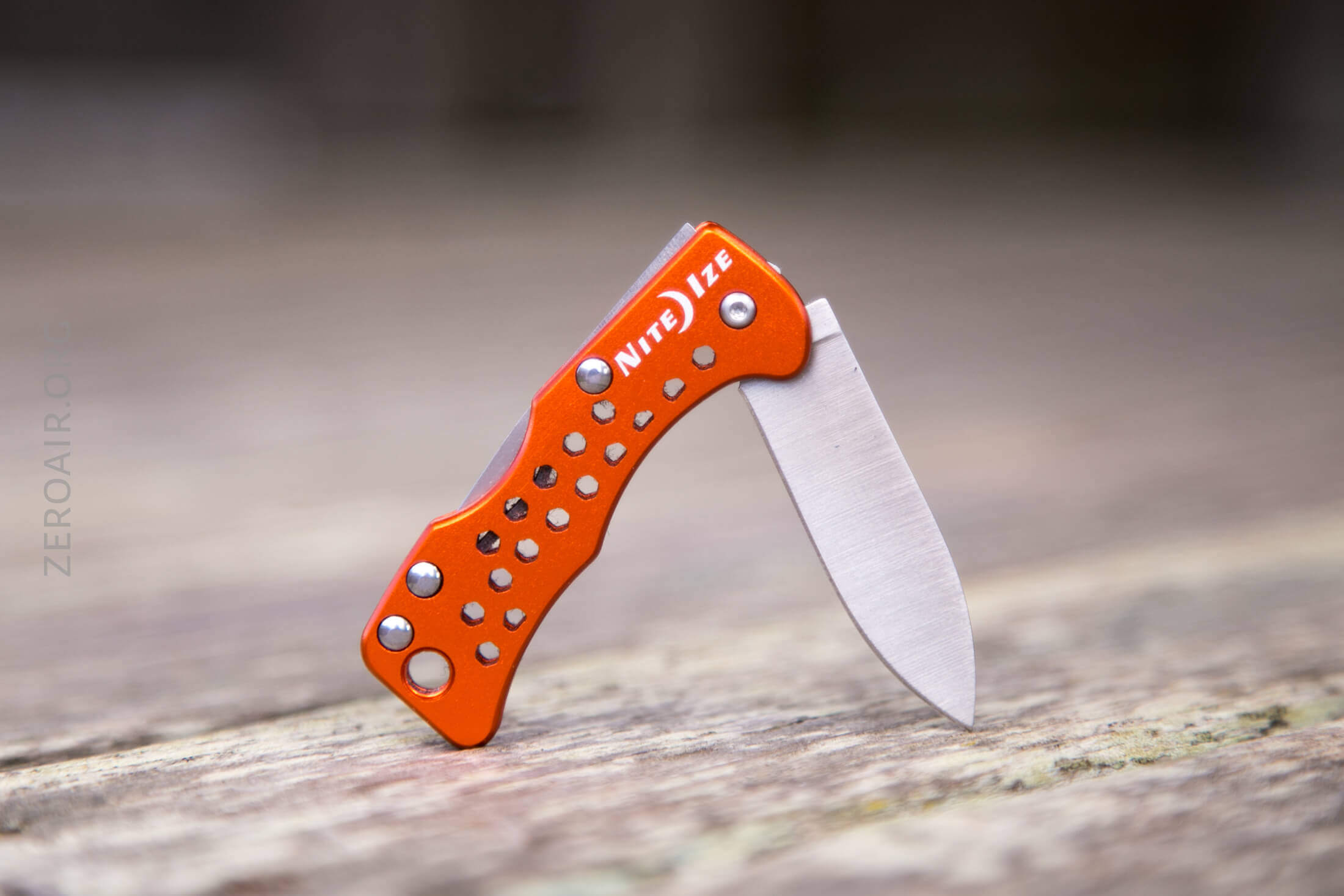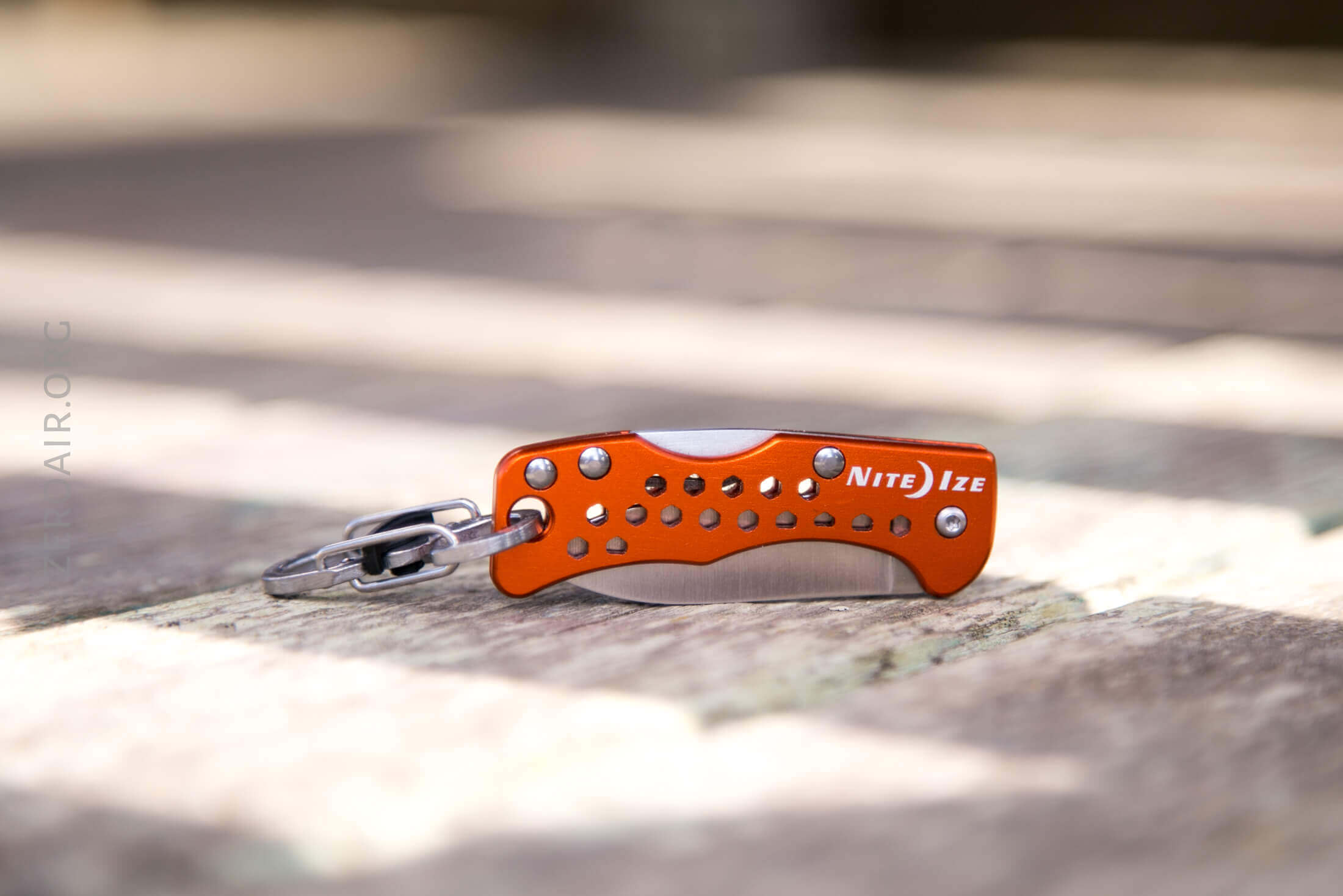 The Nite Ize DoohicKey Keychain knife is available in orange and features a short blade. Overall, lightweight, it’s a great pocket knife!