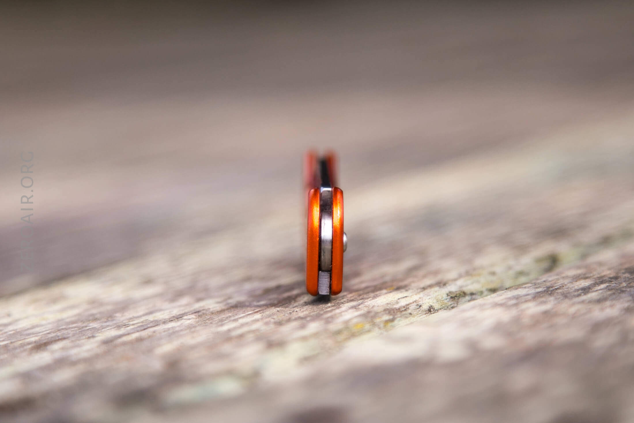 First of all, this knife is orange. That means it’s already awesome. The orange is a bit unusual – the aluminum scales are actually anodized orange. From what I read, anodizing something to this color is difficult.