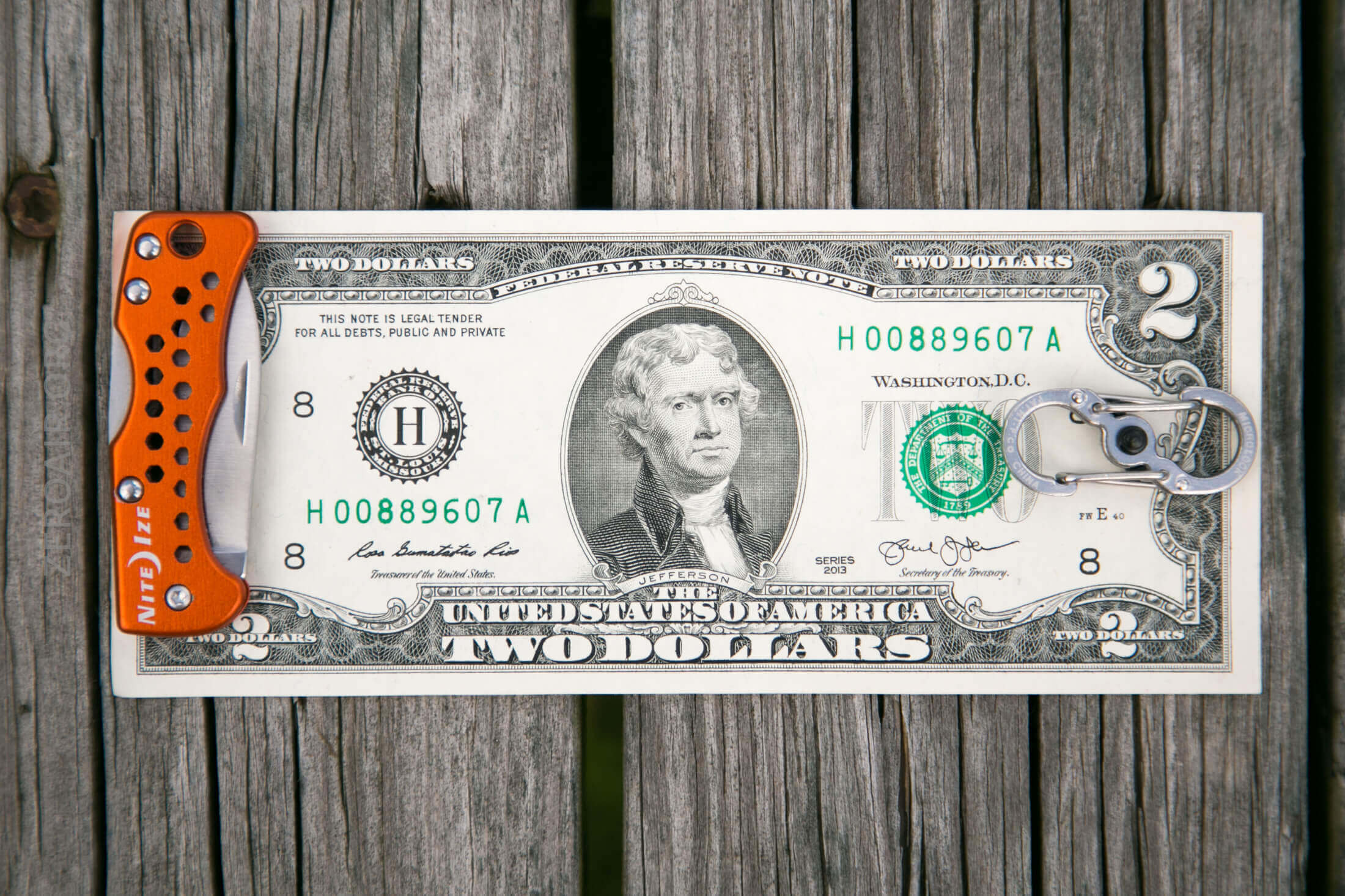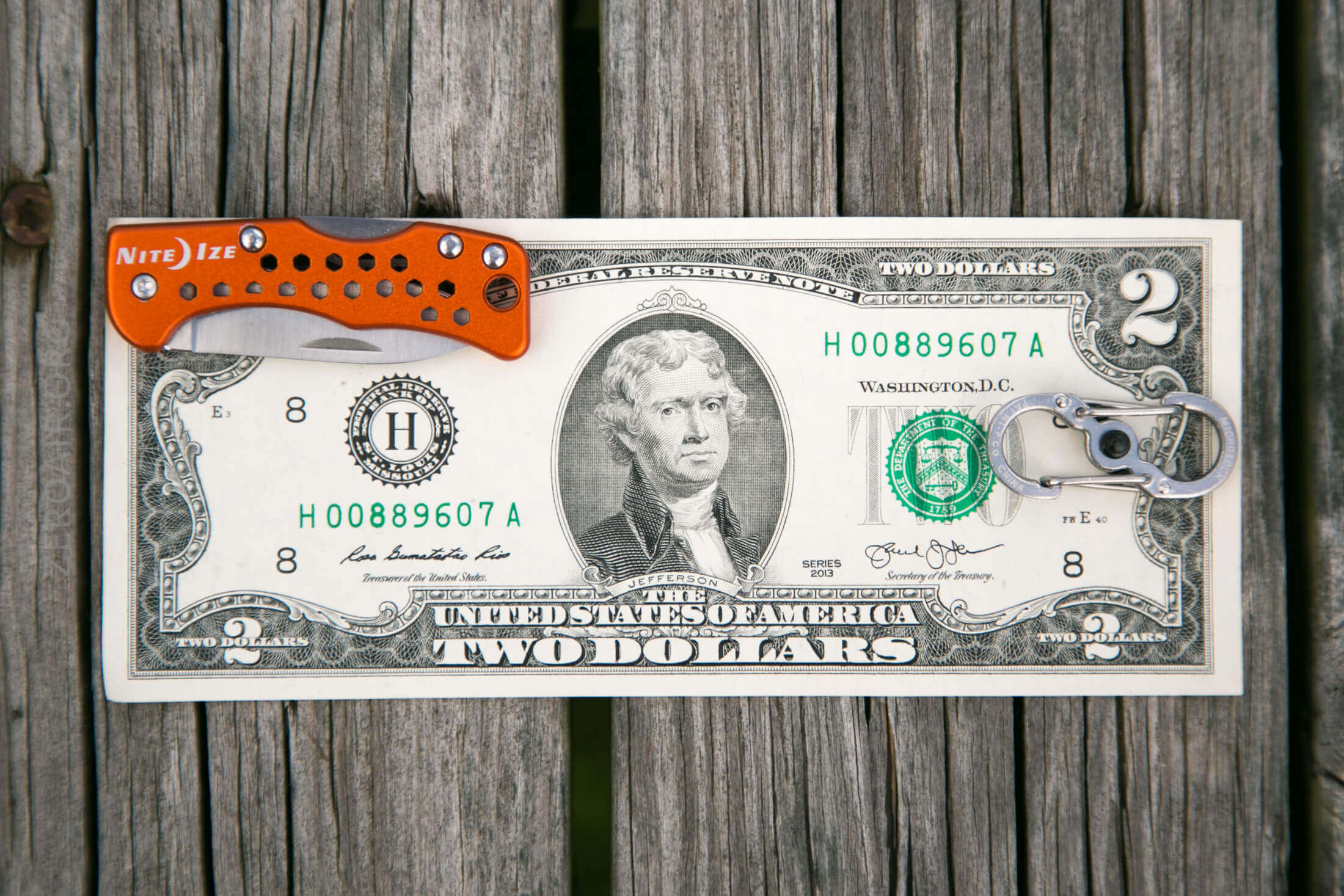 I keep this tiny knife in my coin pocket. If I wanted to carry a bigger knife, I would still carry this little Nite Ize knife, too. It’s super thin, super light, and super tiny. Great for opening packages and the like.