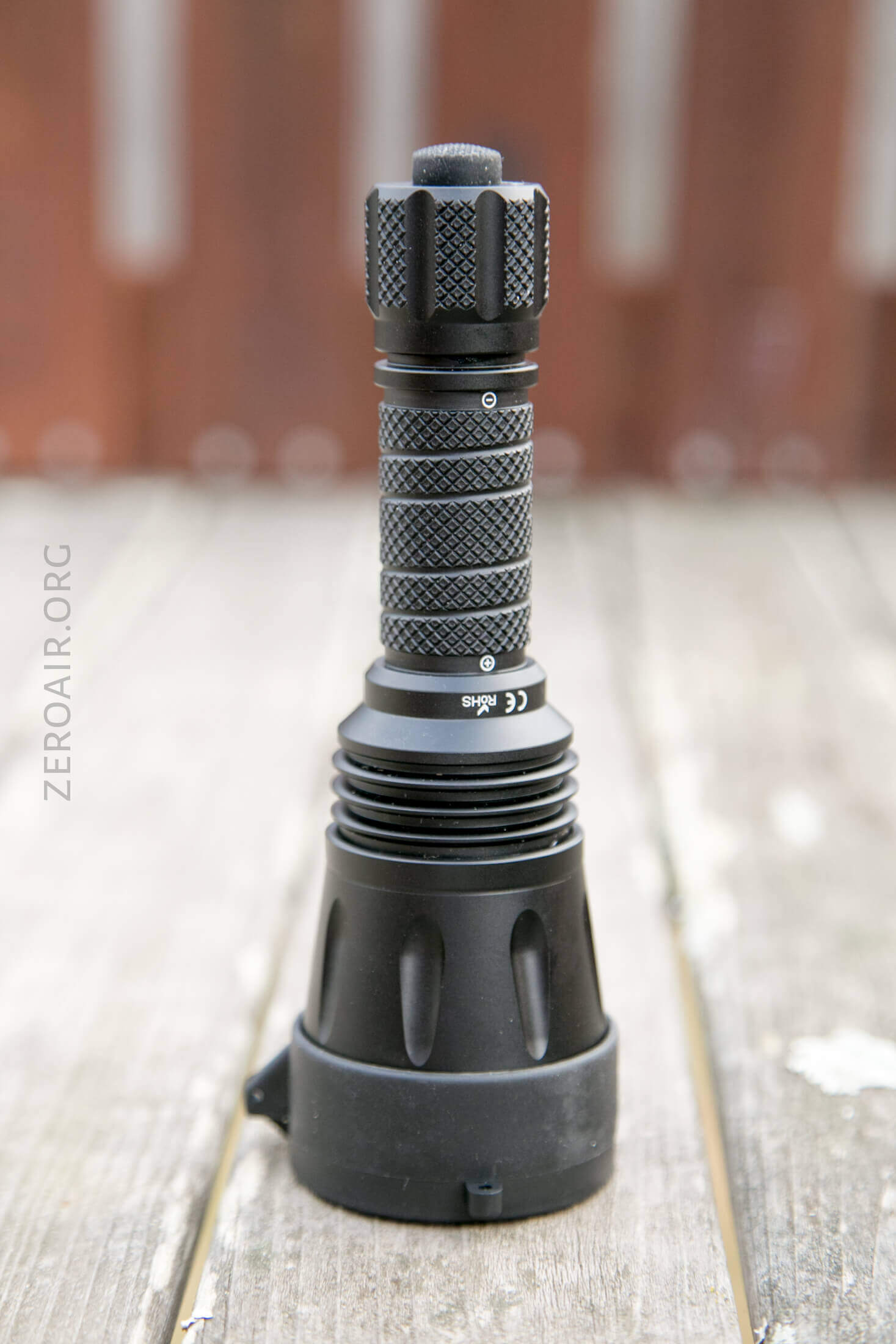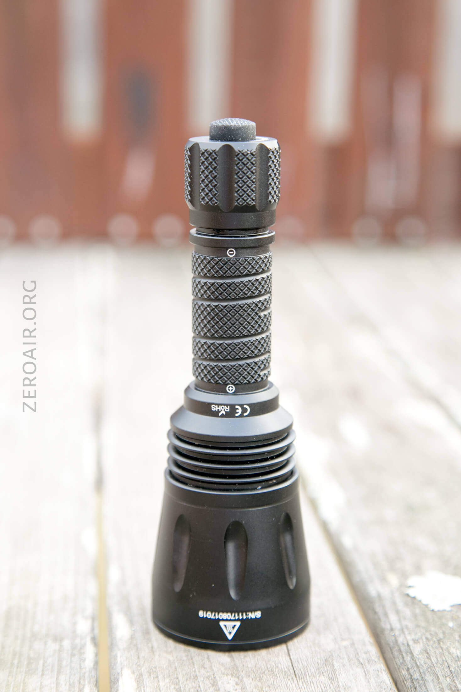 Here’s the test light with the venerable Convoy S2+. Mine’s a custom “baked” edition Nichia 219b triple. A very nice 18650 light.
