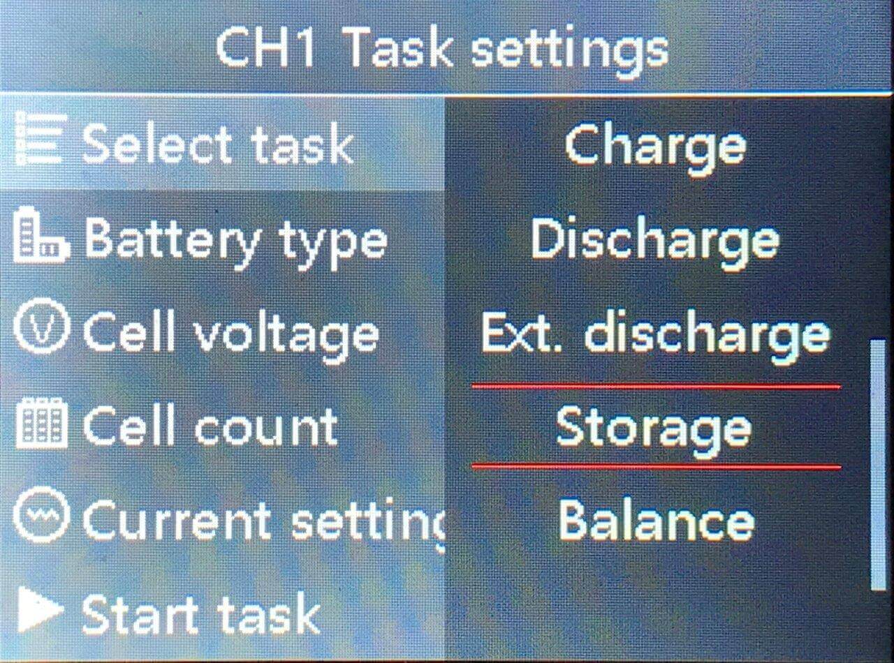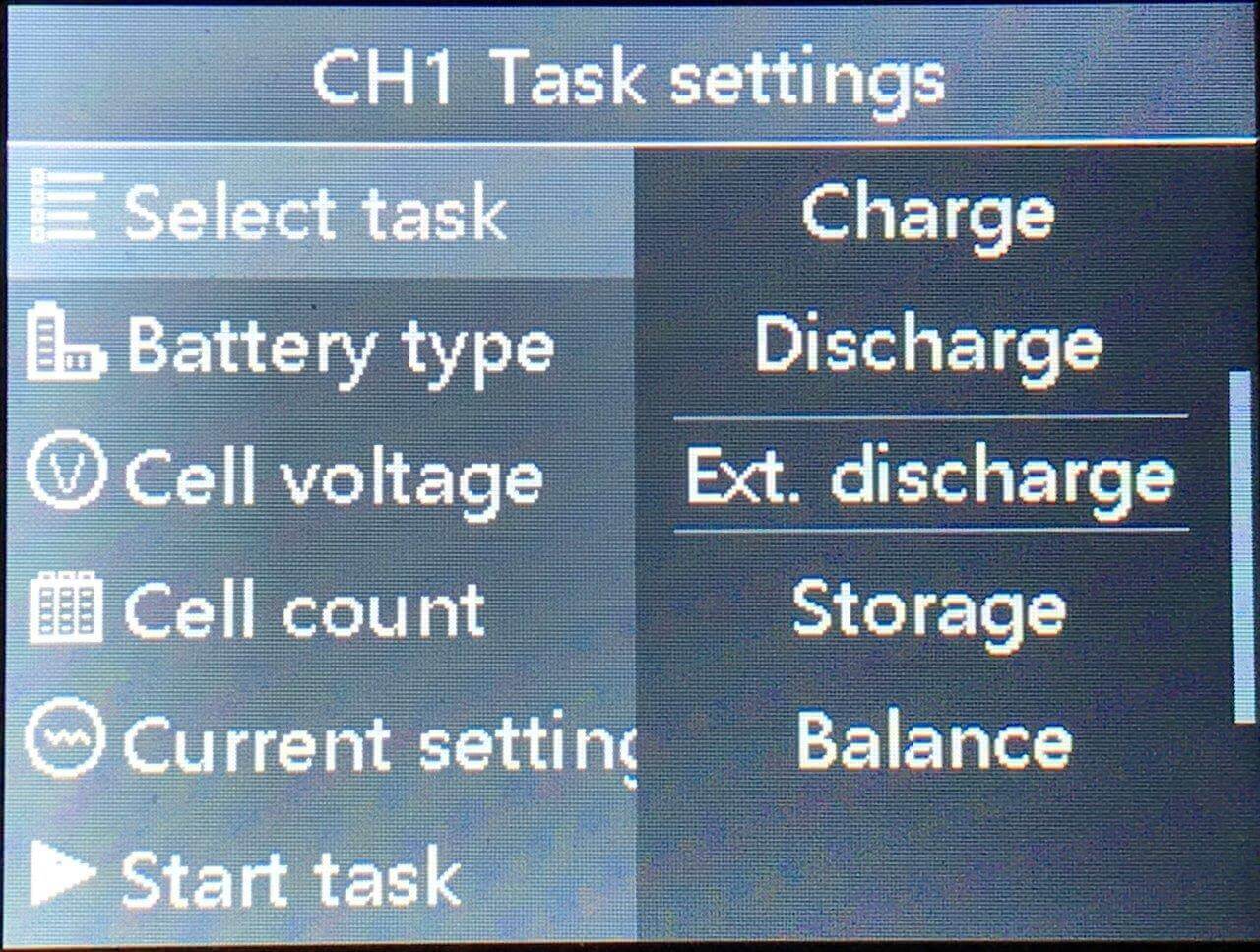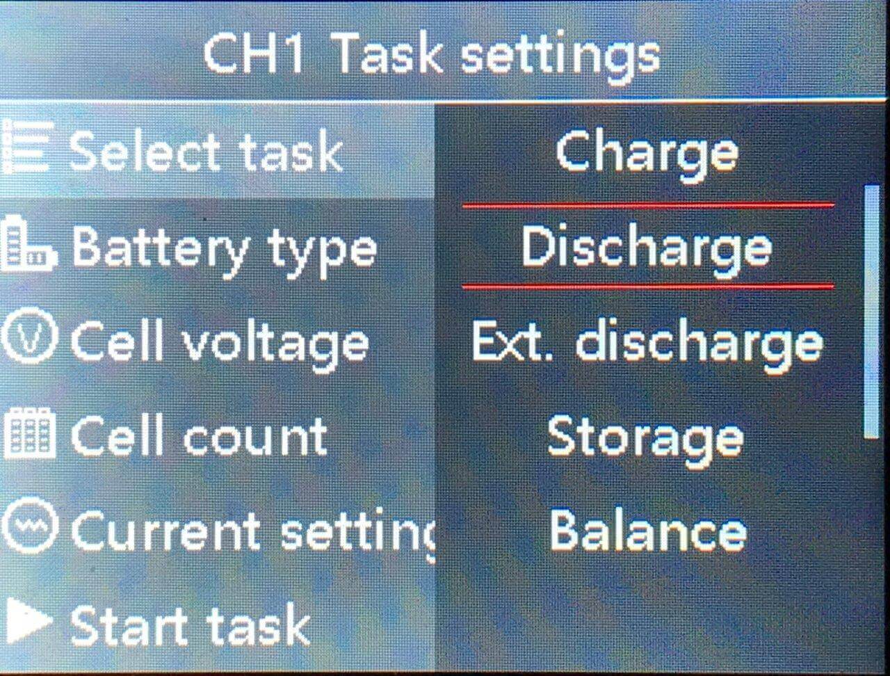There are a number of sub-menus too. For example, you can manually select what cell voltage to discharge to: