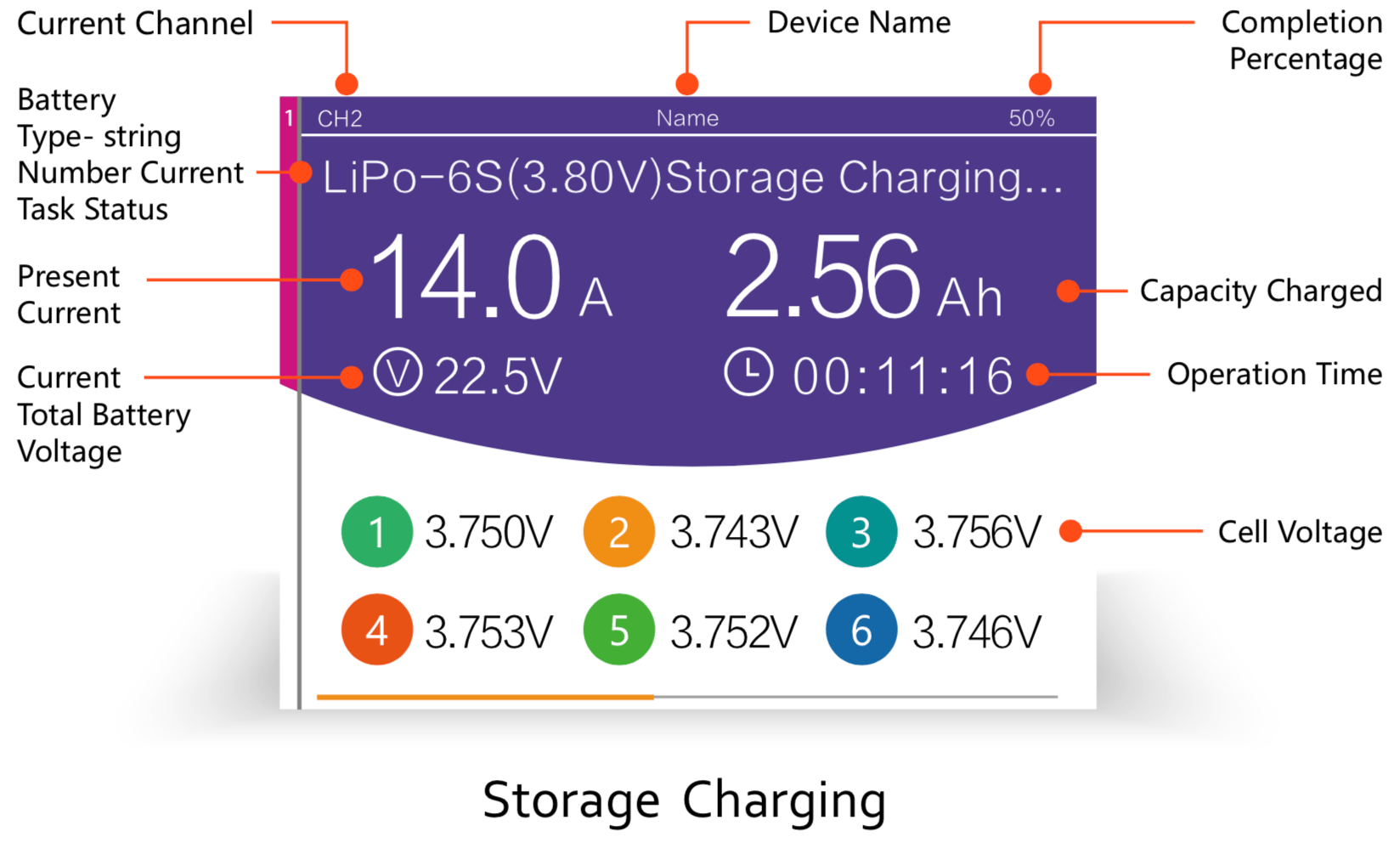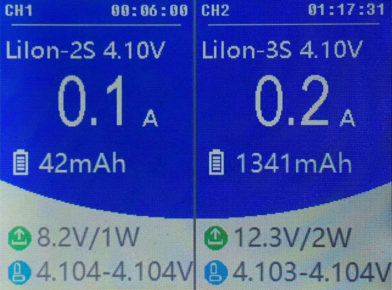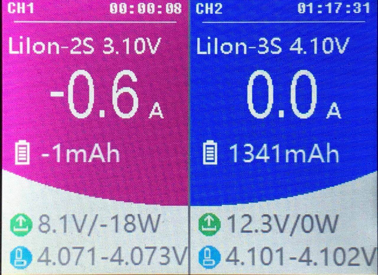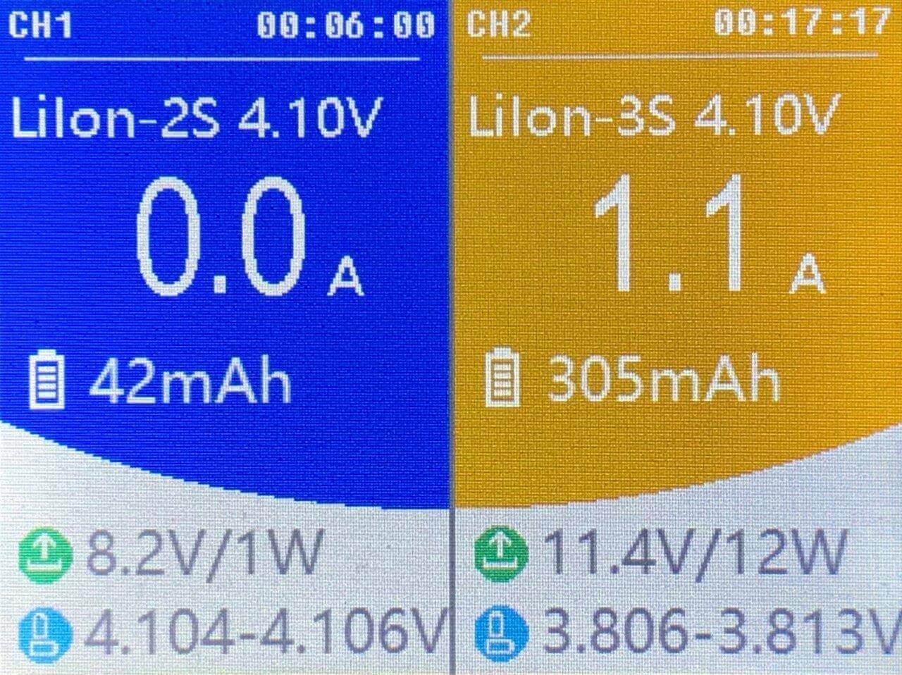 Channel 2 showed more info, because it charged longer and was a 3s pack.
