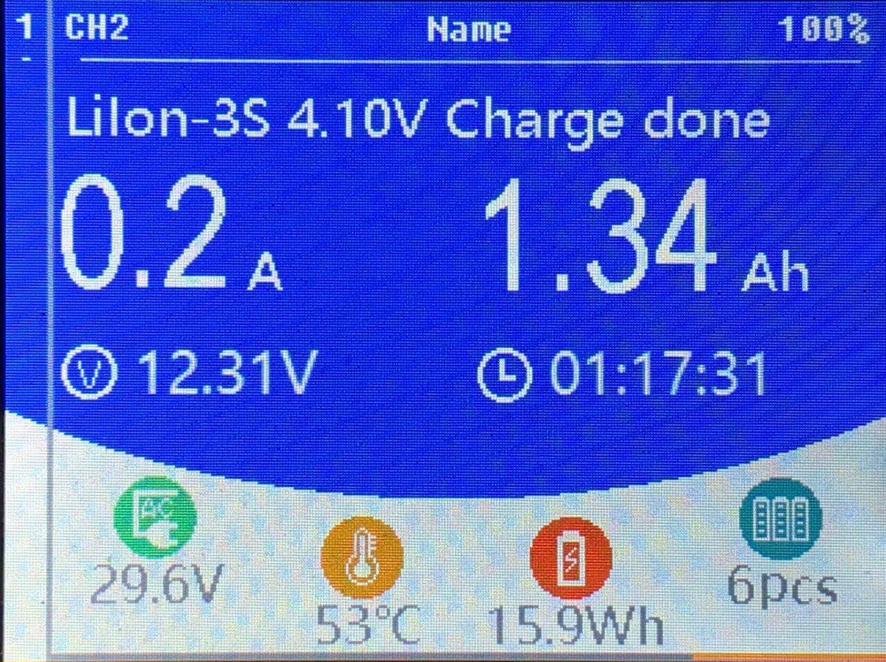 And yes, even when complete, the charger does indicate that there is some current flowing into the cells. I’m not sure what to make of that.