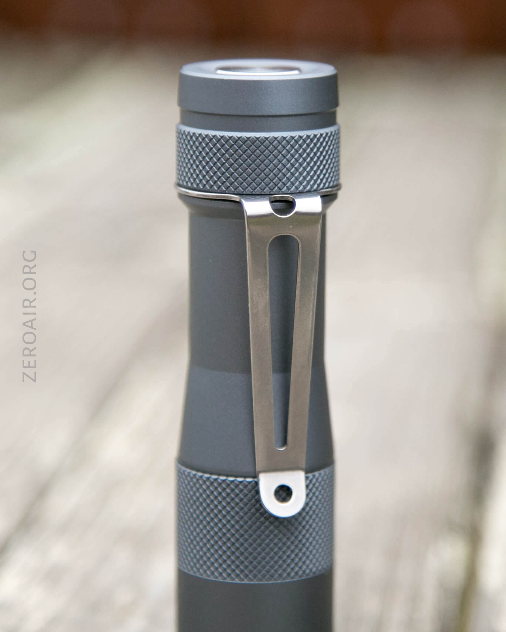 It’s bezel-down and non-reversible. So no hatlight use here. In fact, the collar won’t even fit over the bigger threads on the head end, and you’ll probably break the very thin o-ring that lives atop the clip when reinstalling it. I did anyway. And this is not one of the o-rings for which there are spares.