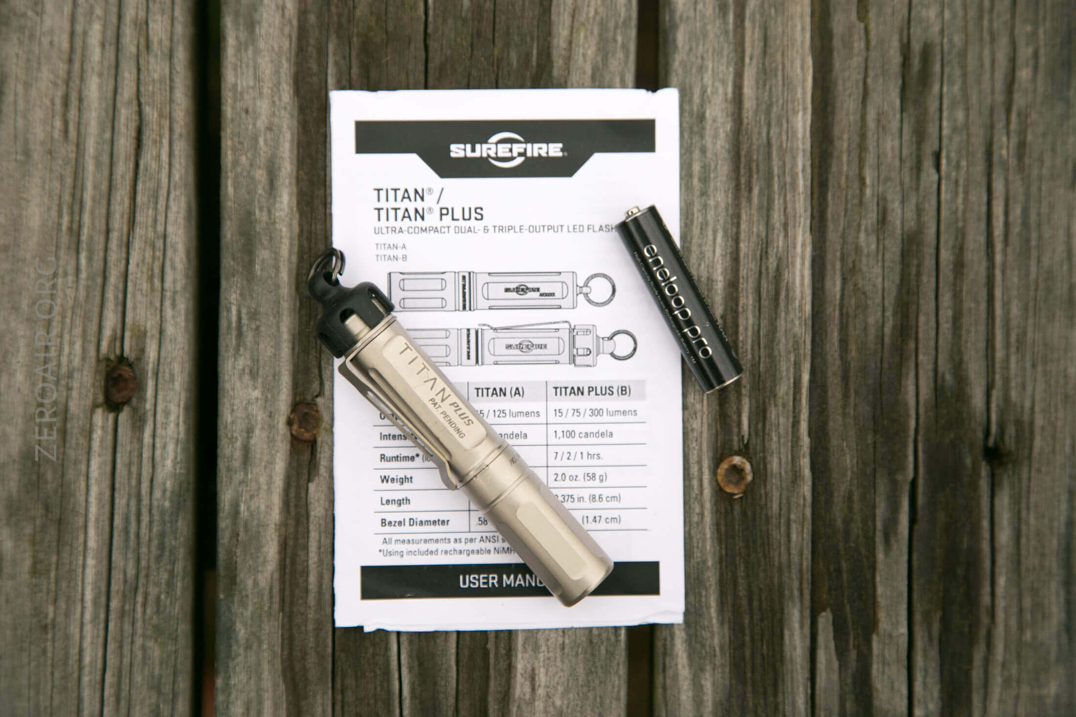 The Titan Plus is powered by a single AAA-sized cell. Surefire includes an Eneloop Pro, which is a very nice touch. It’s unclear if this light will support a lithium-ion AAA-sized cell – a 10440, but at the very least, it’s not officially supported. Reports are that it won’t kill your light immediately, though.