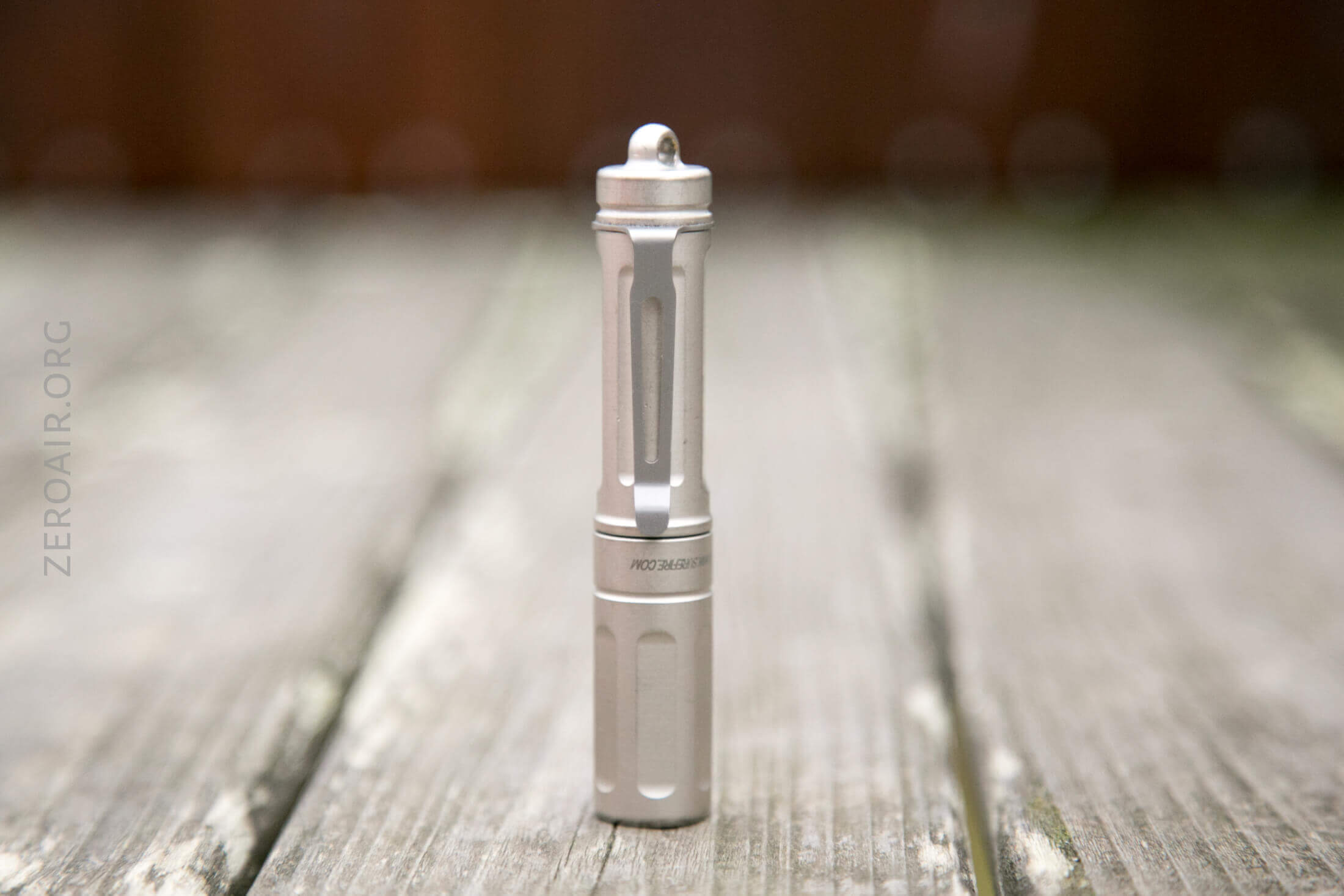 Also included is a pocket clip, which is a collar variety and removable. It’s not reversible, though, so no hatlight use for this light. It’s not an extremely finished clip, so the edges are a bit sharp. That said, I actually like it as a clip. The mouth is small but big enough, and it holds the light deeply. If this clip doesn’t suit you, there are aftermarket clips made specially for this light by DarkSucks. That clip is titanium.