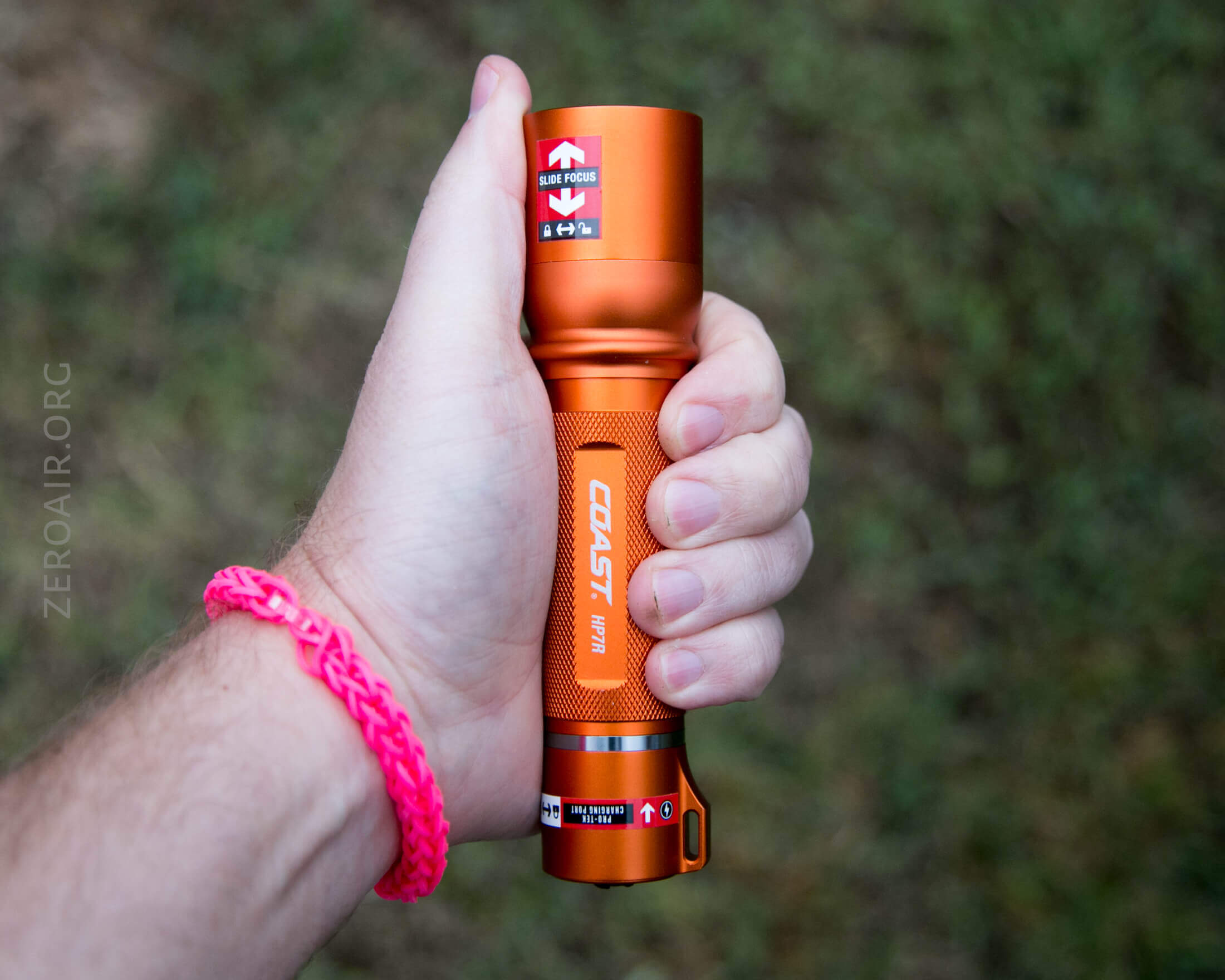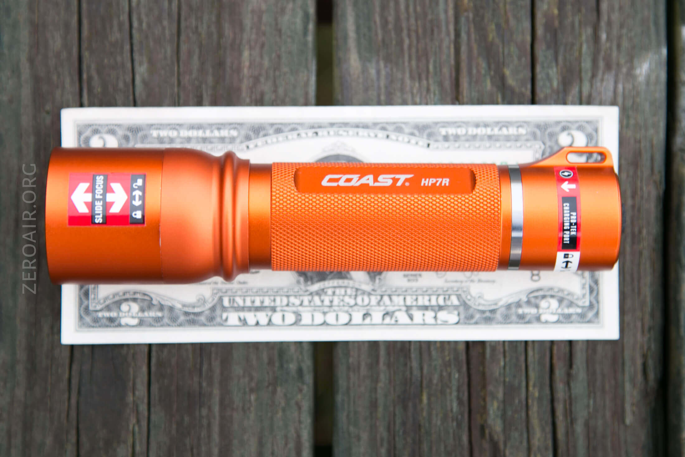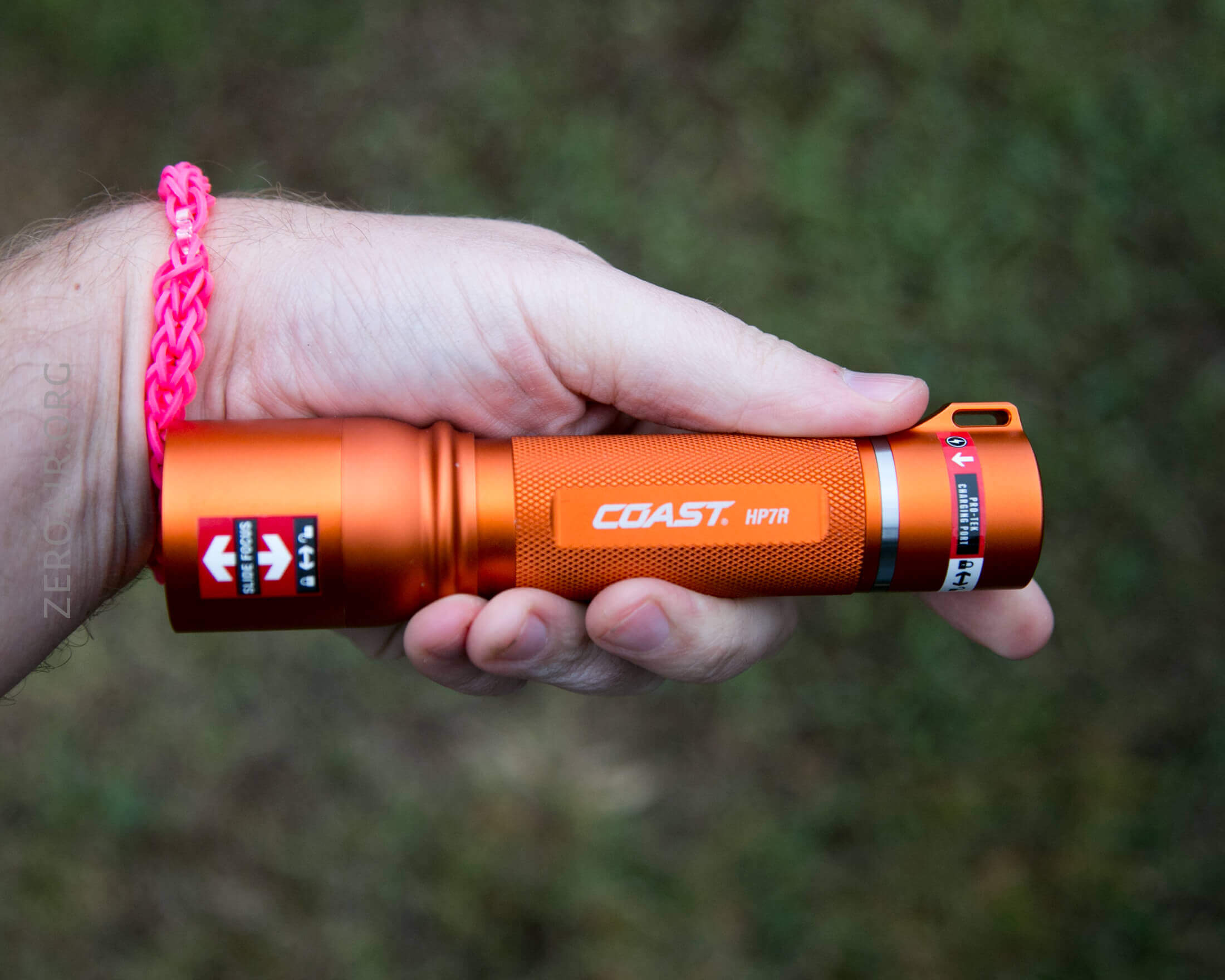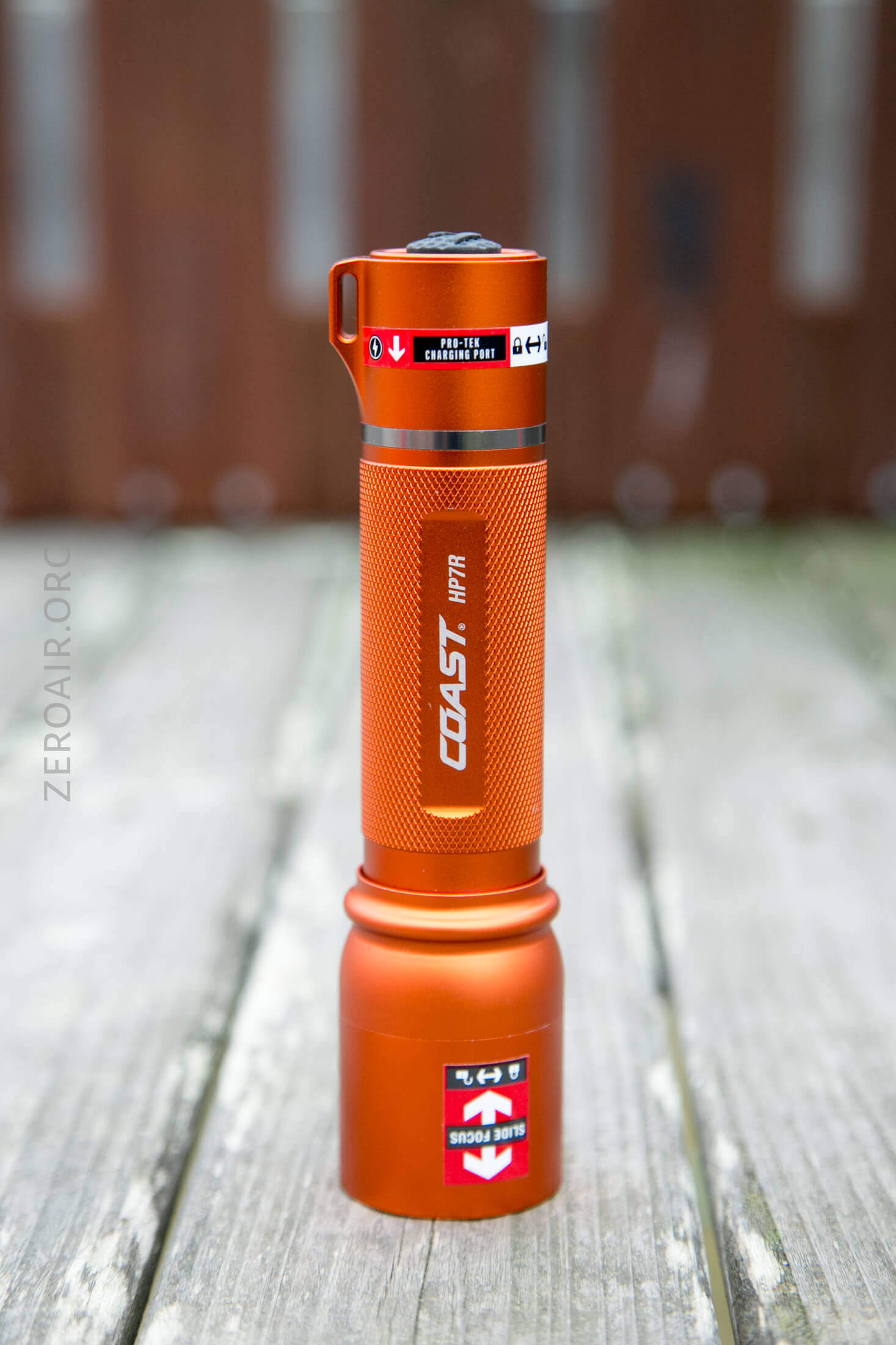 The Coast HP7R flashlight is a custom lithium-ion or 4xAAA battery light. It’s a zoomie and has a very fetching orange color body. Read on!