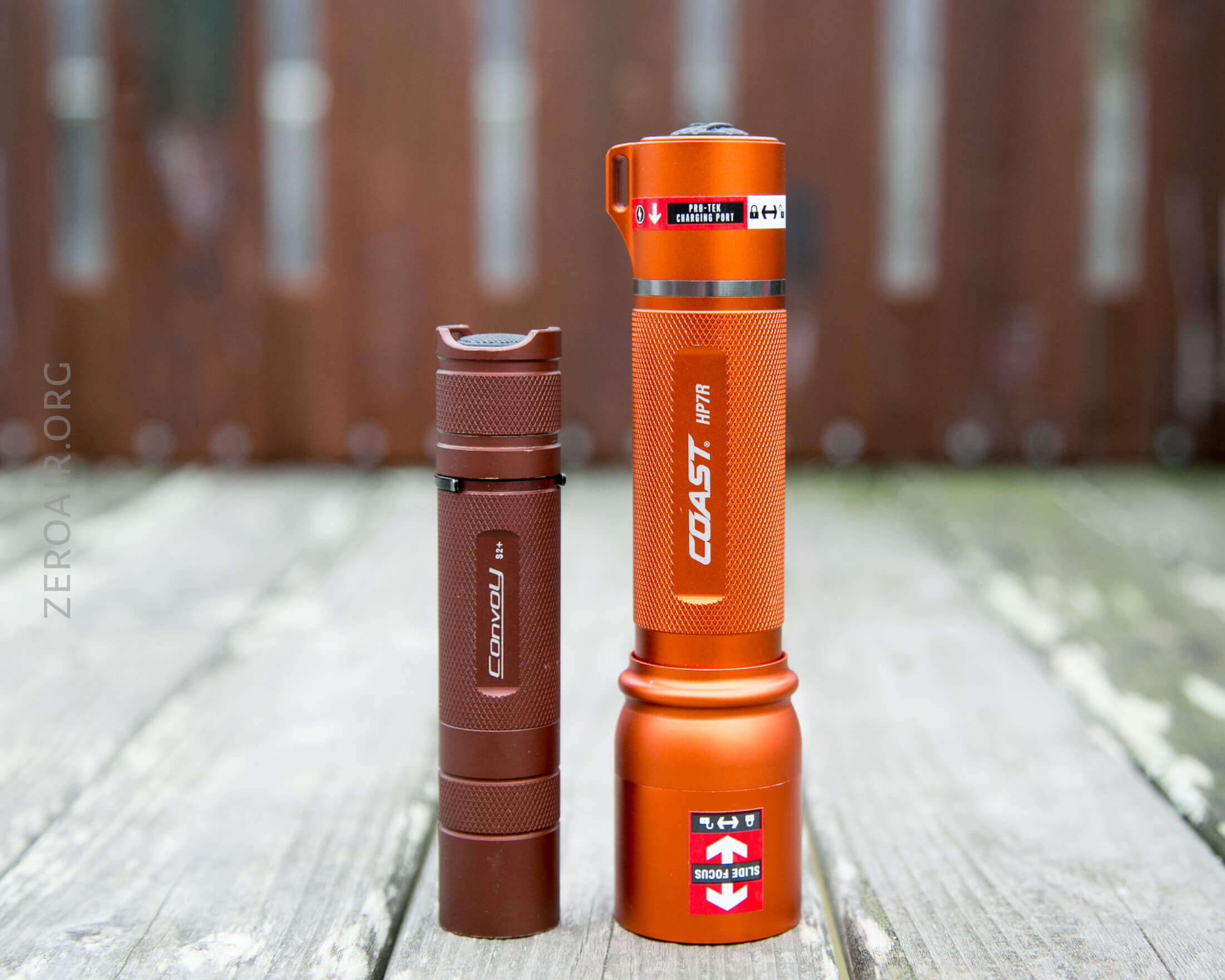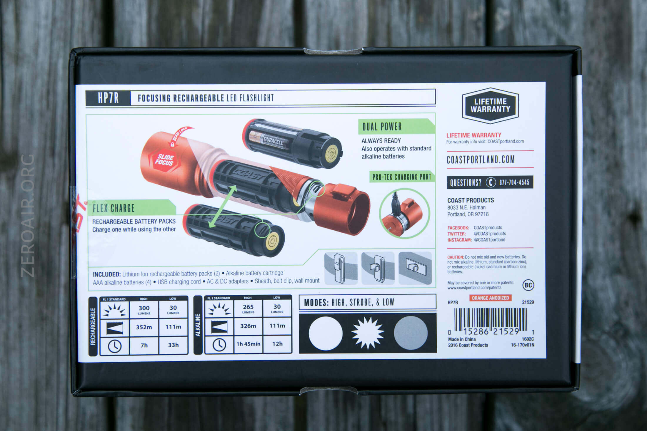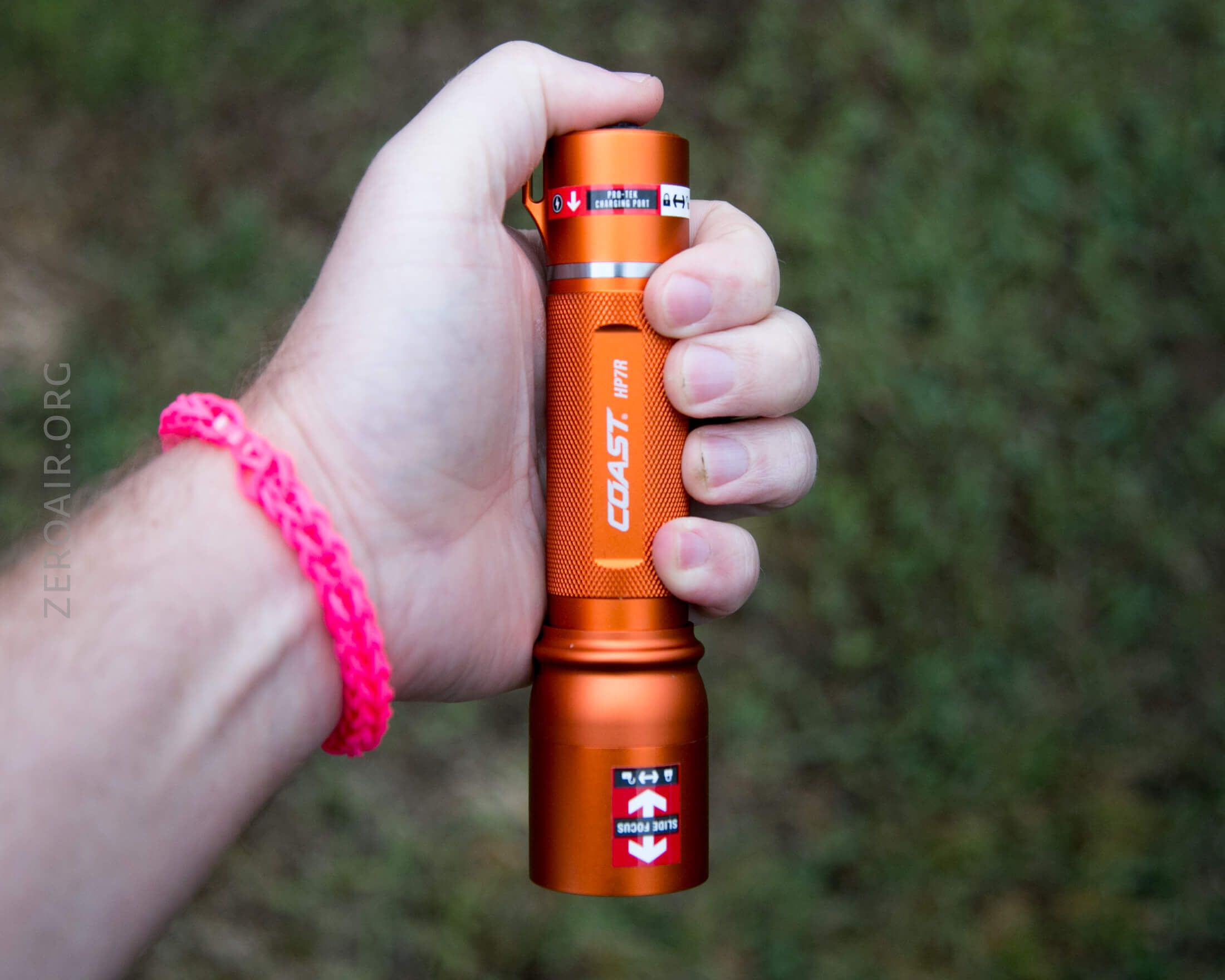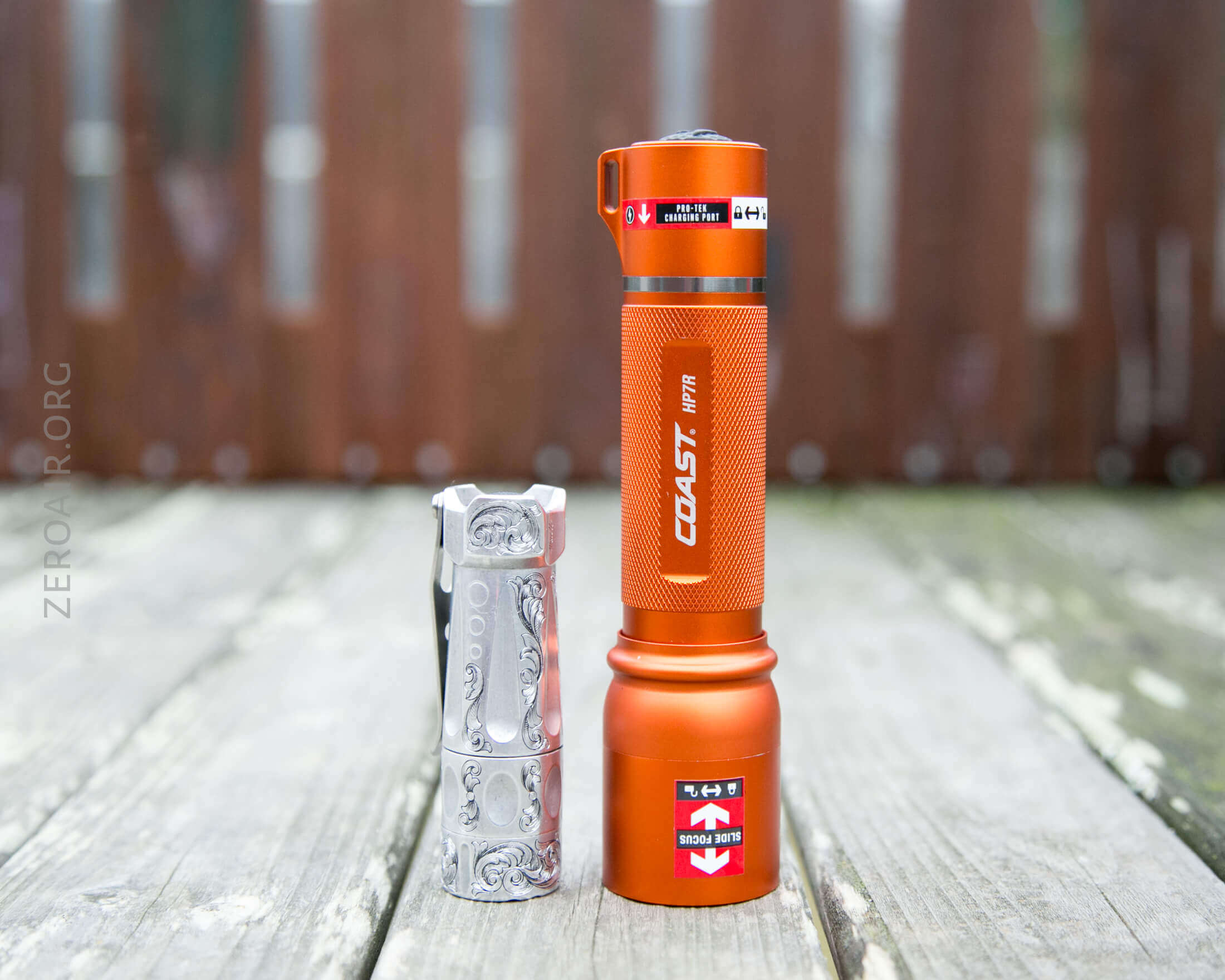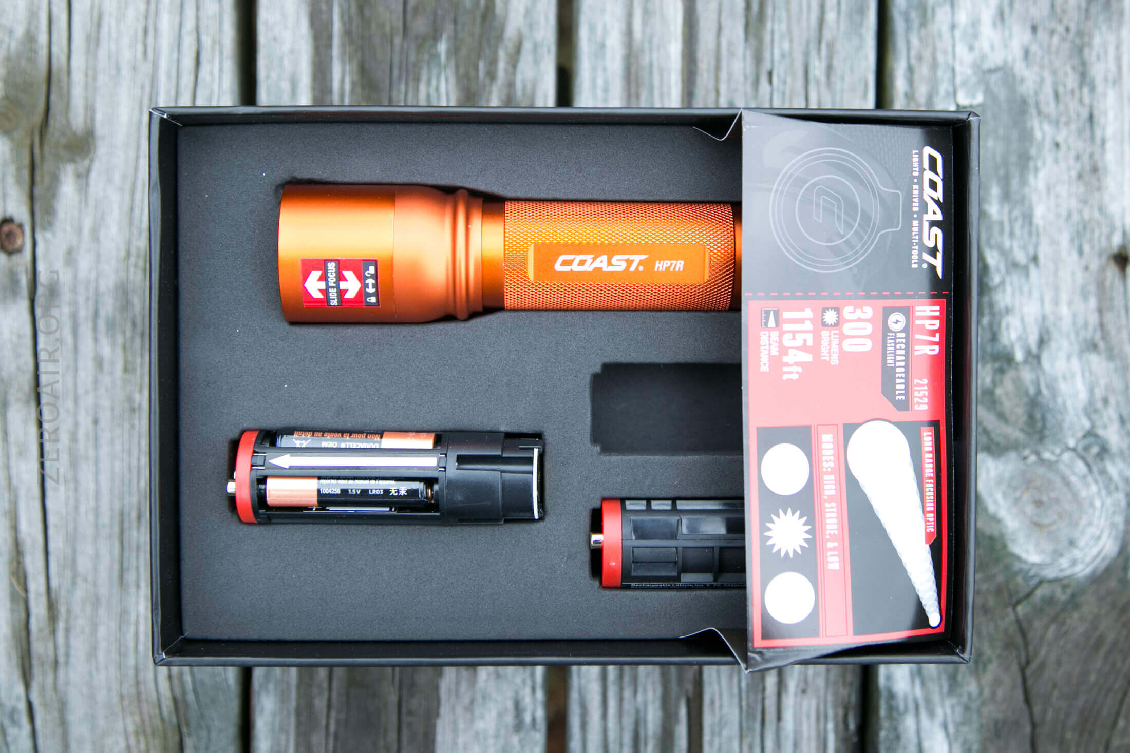 The Coast HP7R flashlight is a custom lithium-ion or 4xAAA battery light. It’s a zoomie and has a very fetching orange color body. Read on!