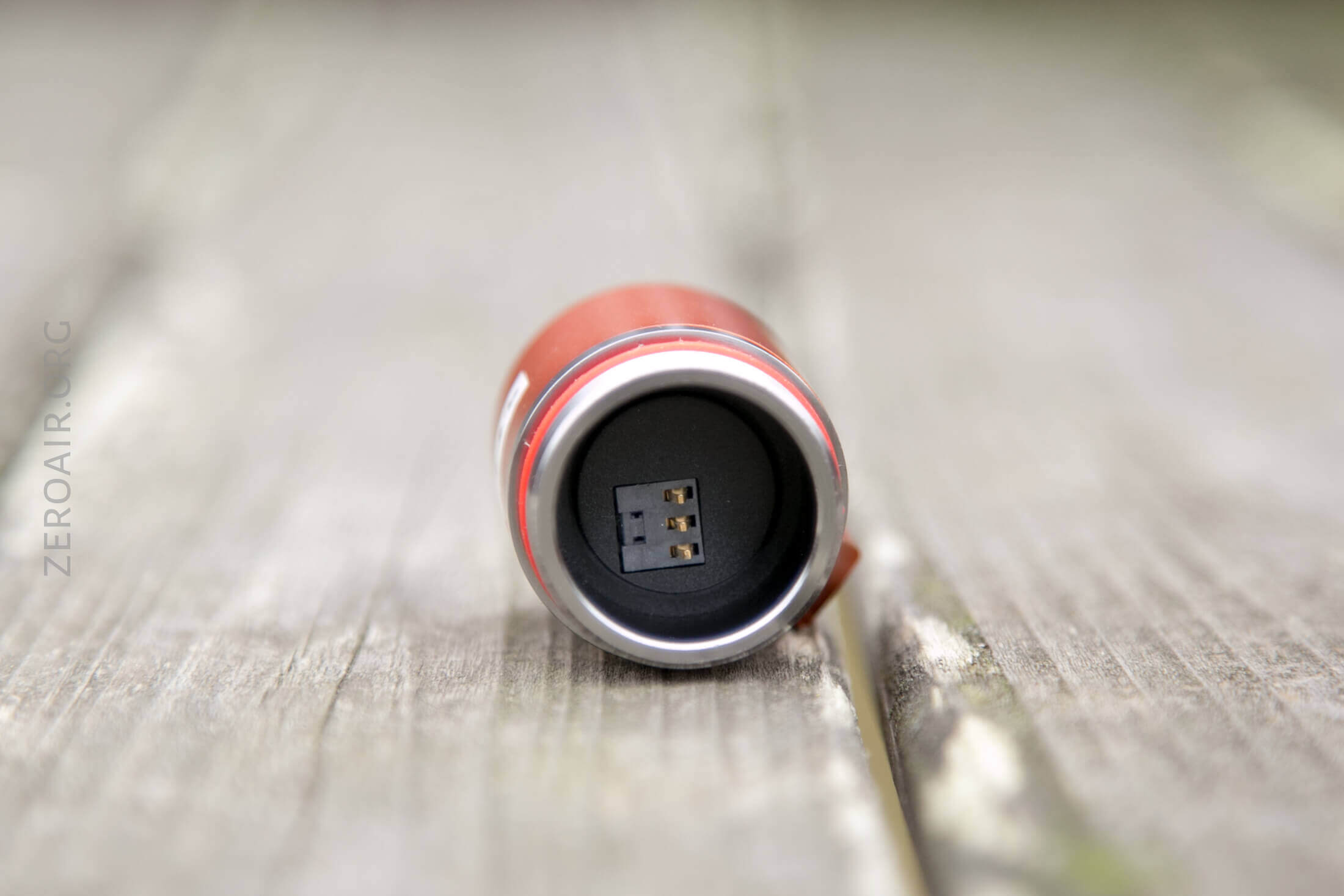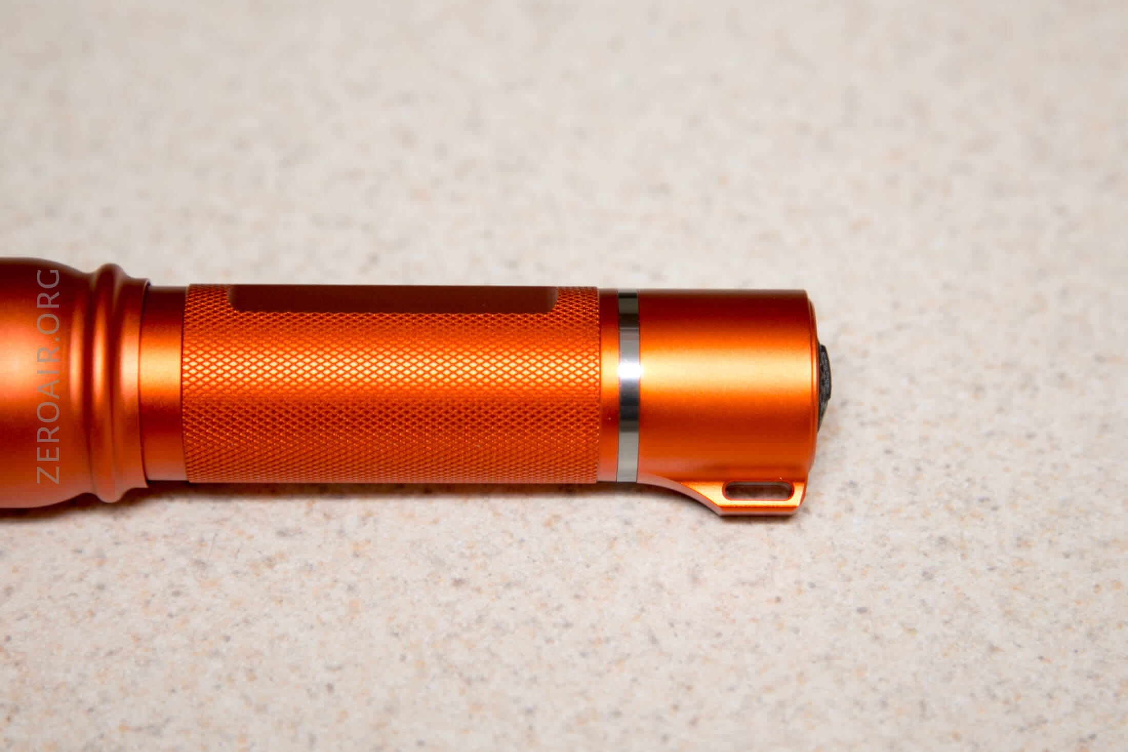 The body of the light ships with various stickers here and there. One, in particular, perplexed me until I just sat here and wrote. The sticker indicates the tailcap may be locked in some way. Well, what way? Turns out that when locked, the tailcap can be pulled away from the cell tube, revealing the charge port without having to remove the tailcap completely. This is a nice feature. There’s an o-ring in there to help with waterproofness when the tailcap is down (as seen below).