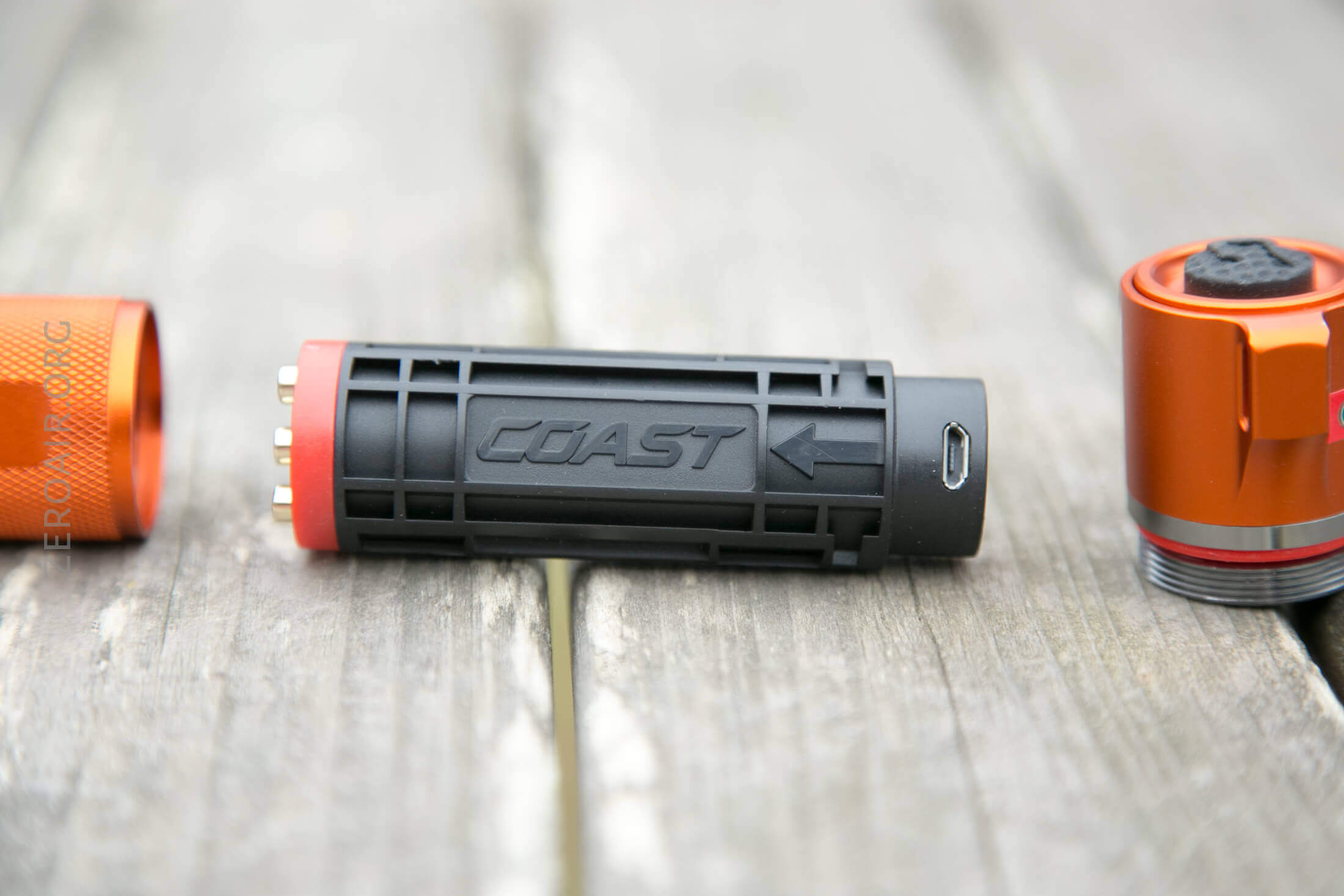 Coast includes a wall wart capable of outputting 1A, but the light won’t utilize that rate. Also included (not pictured here) is a car cigarette lighter adapter.