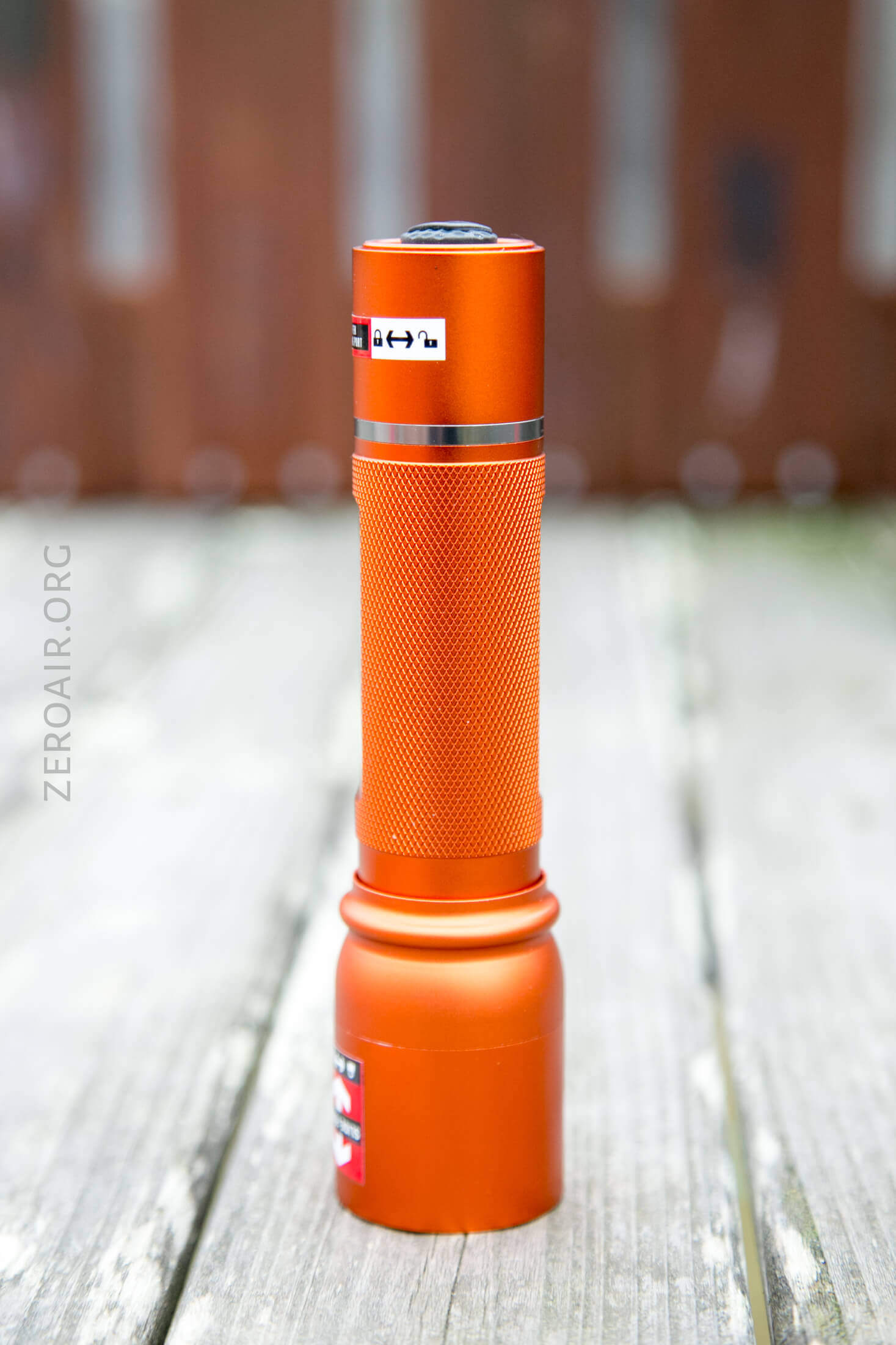 This is a big light. It’s not as big as the bigger brother Polysteel 600R and is much more manageable for carrying, though. The size is understandable because of the 4xAAA support. Those cells organized that way take up a lot of space.