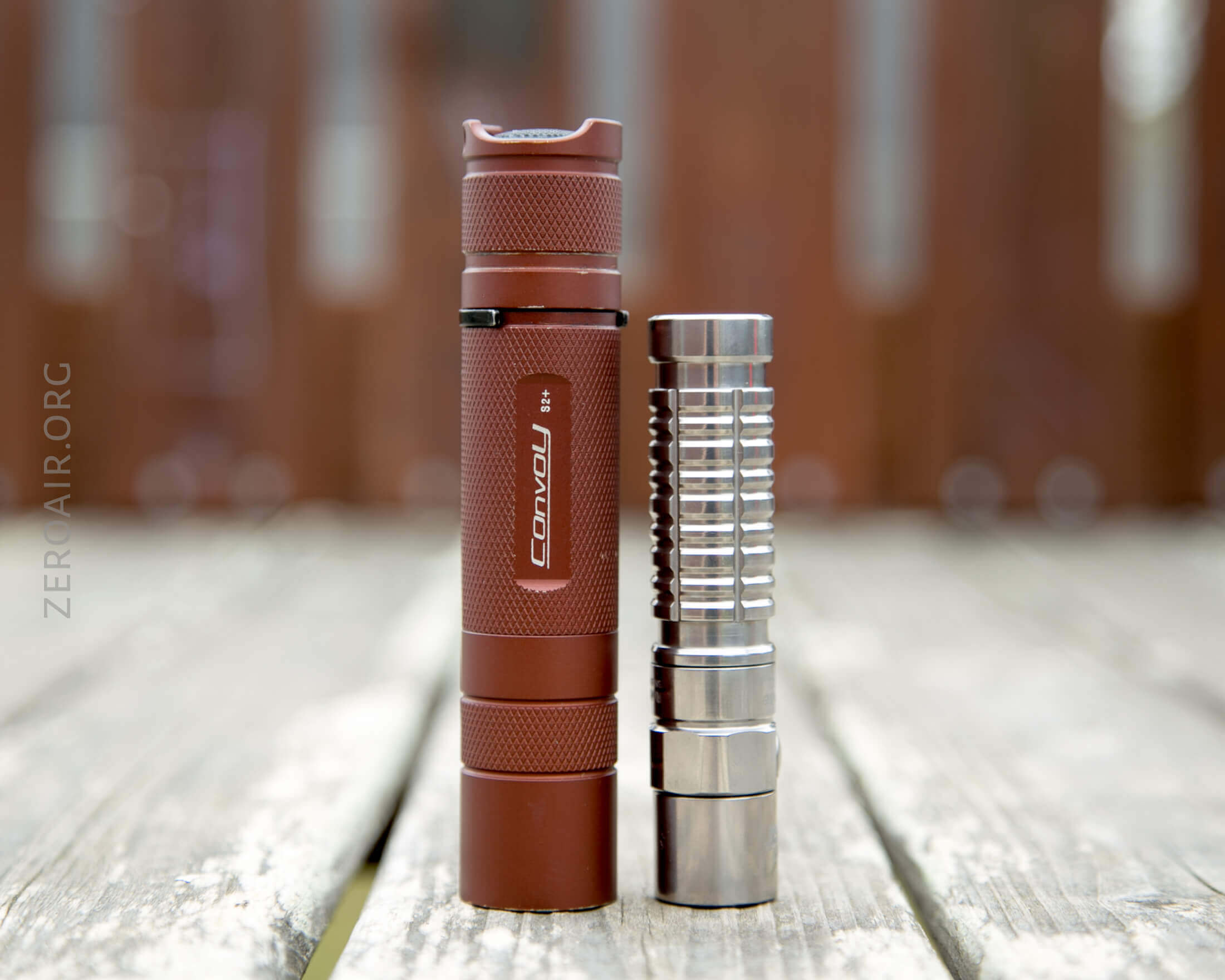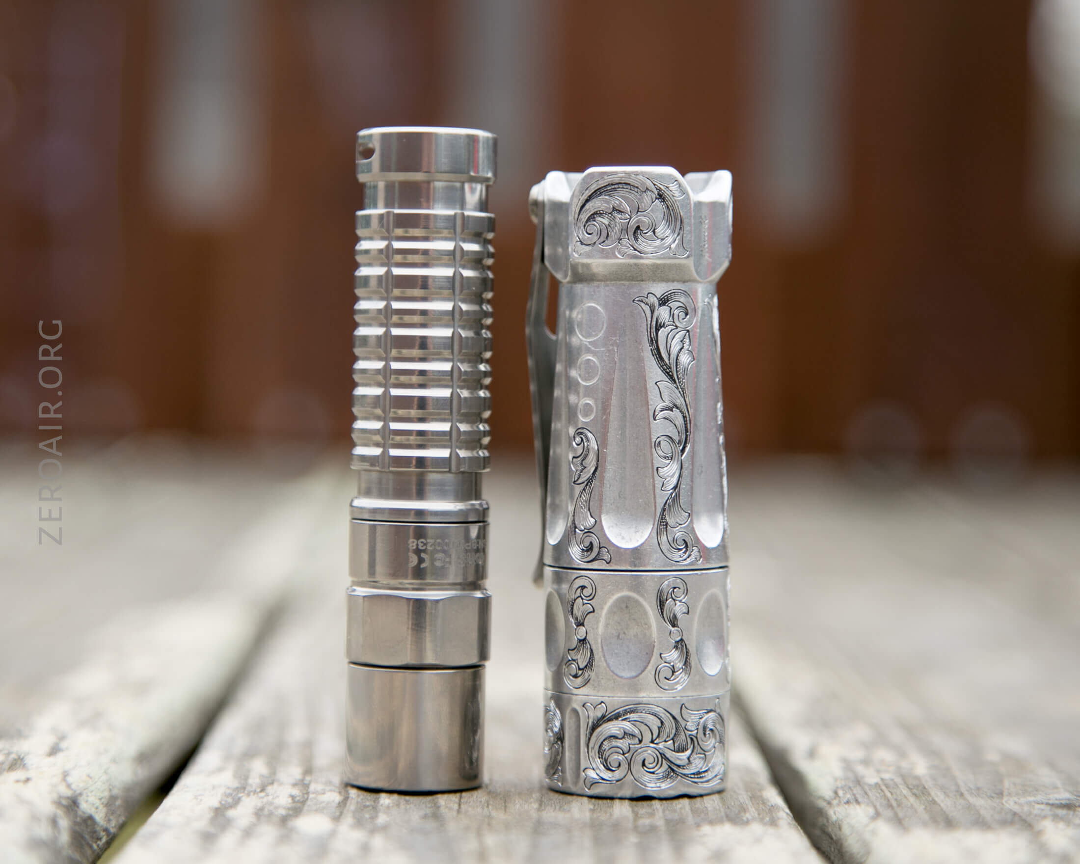 And here’s the light beside my custom-engraved TorchLAB BOSS 35, an 18350 light. I reviewed the aluminum version of that light in both 35 and 70 formats.