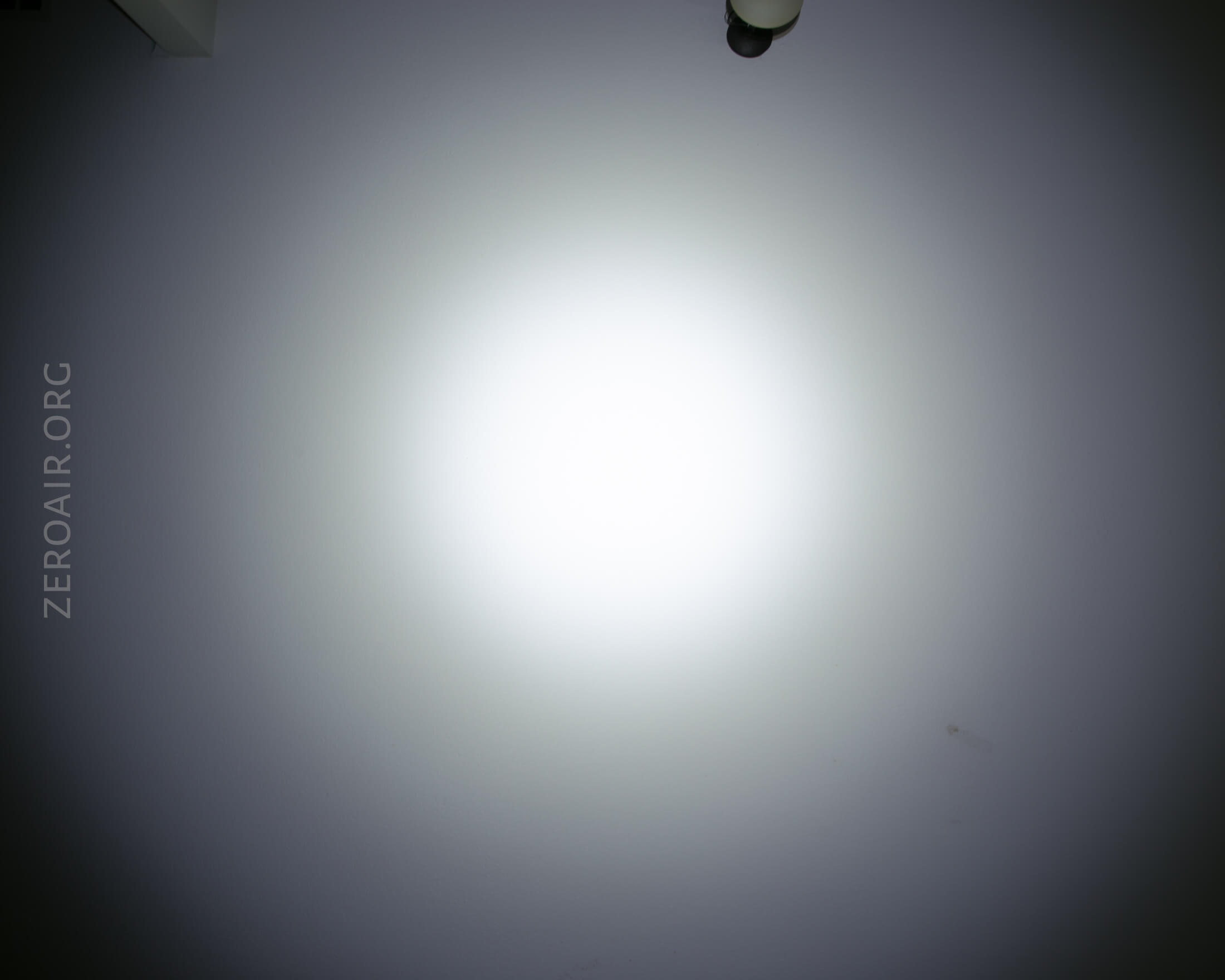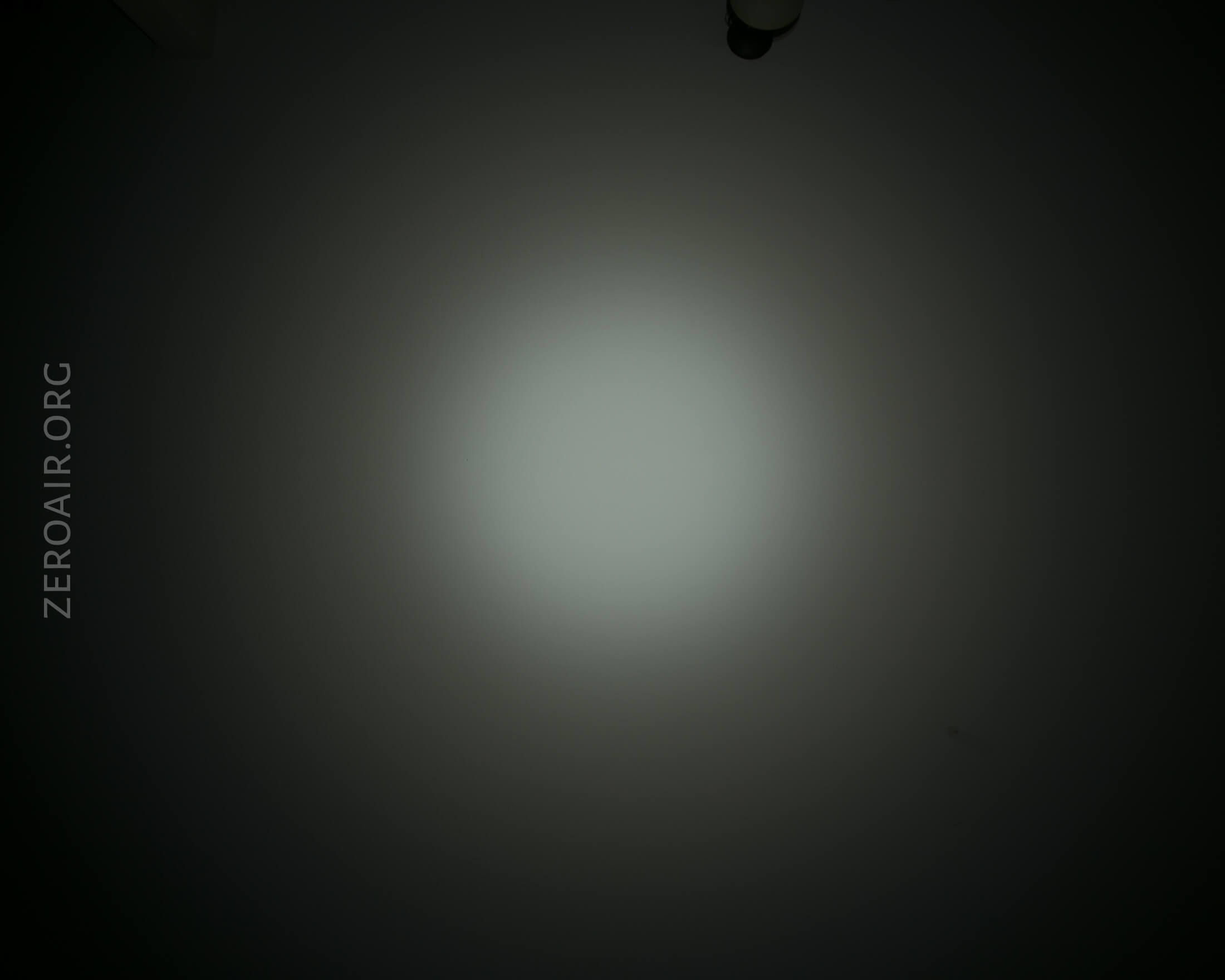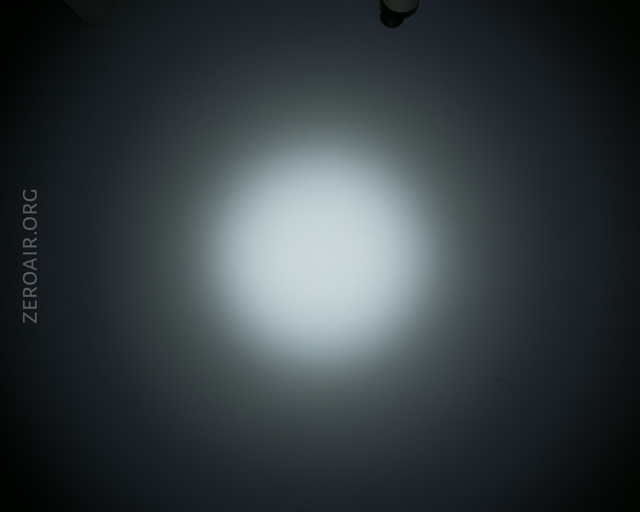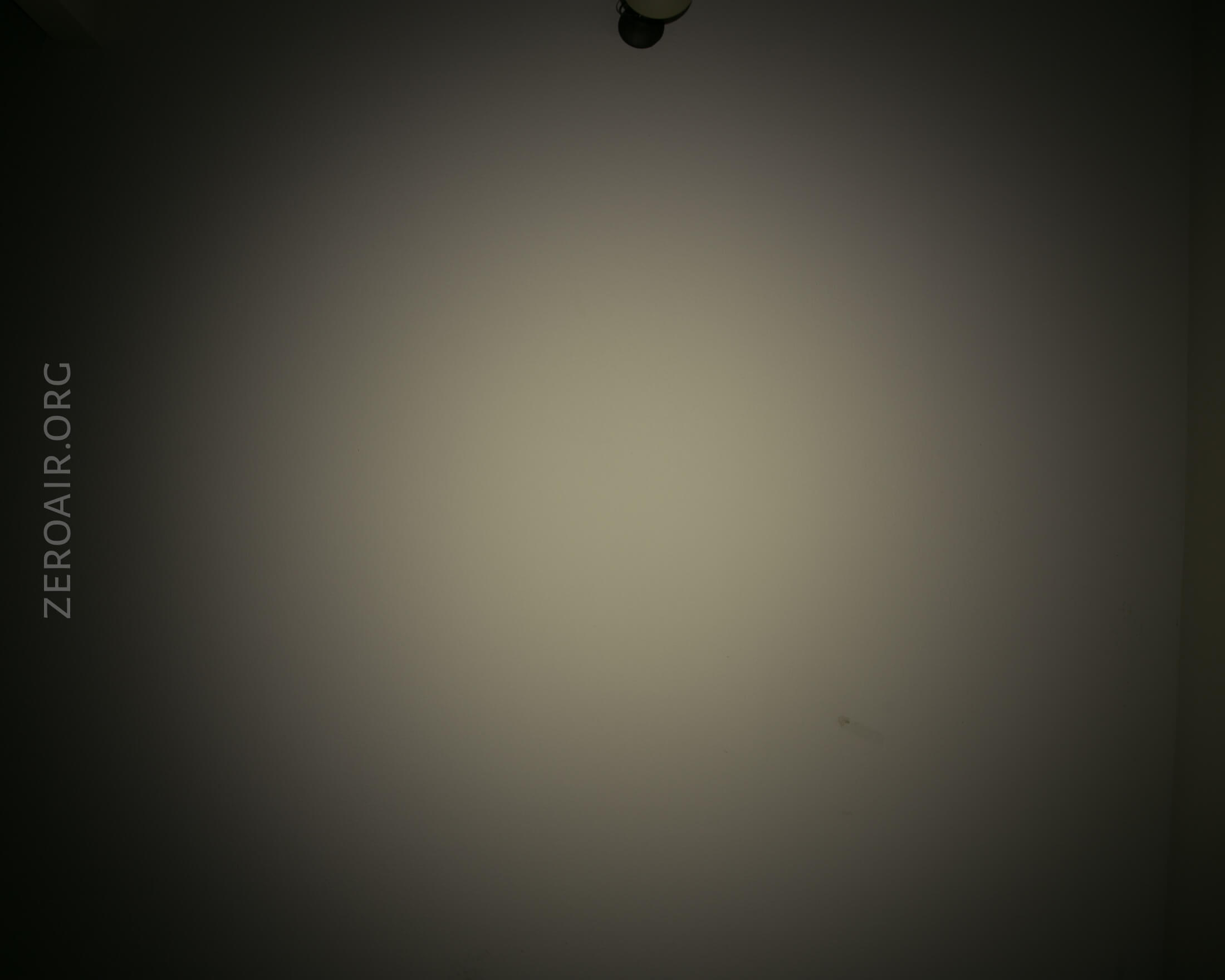 These beamshots always have the following settings: f8, ISO100, 0.3s shutter, and manual 5000K exposure. These photos are taken at floor level, and the beam hits the ceiling around 9 feet away. First, the 4-mode throw emitter.