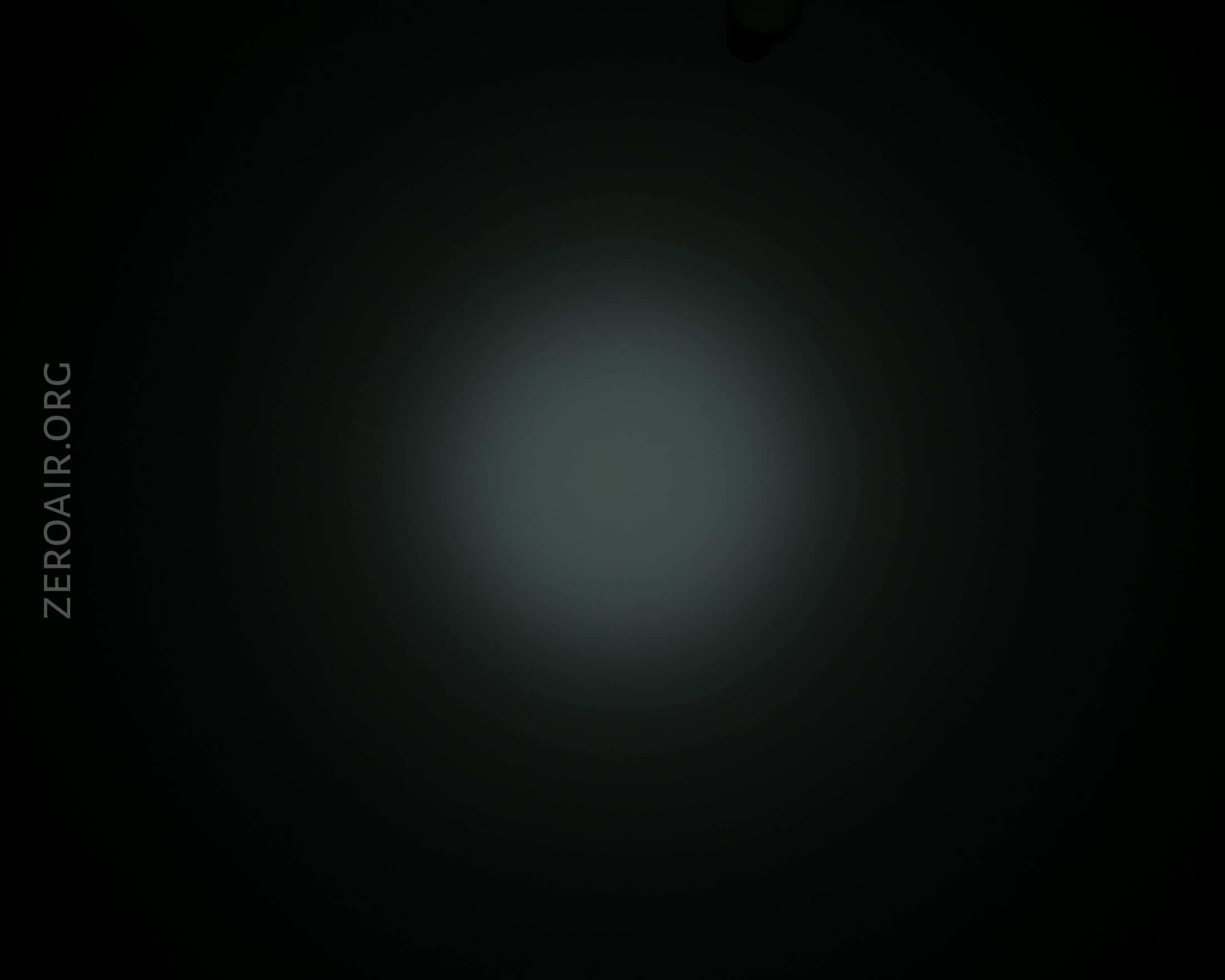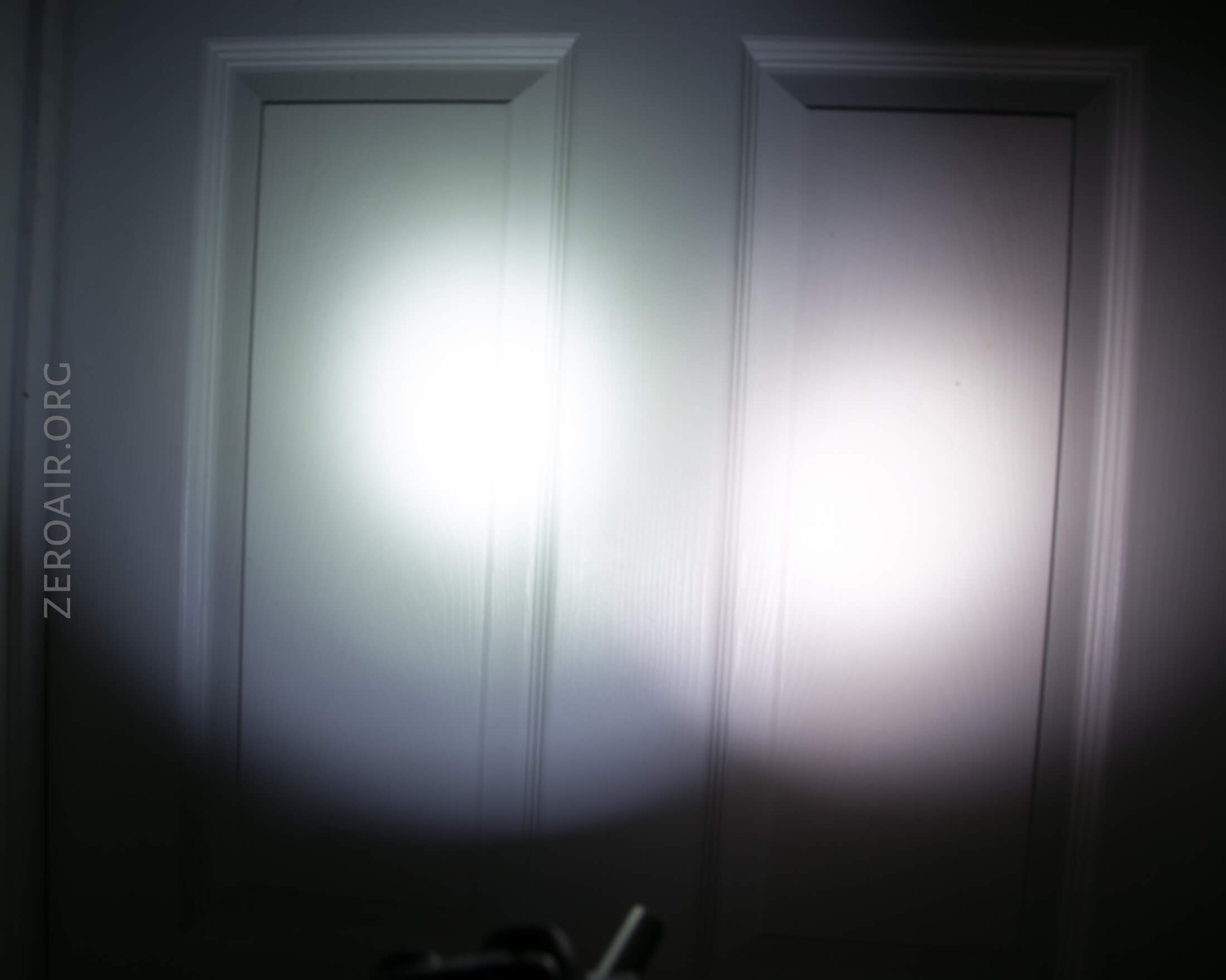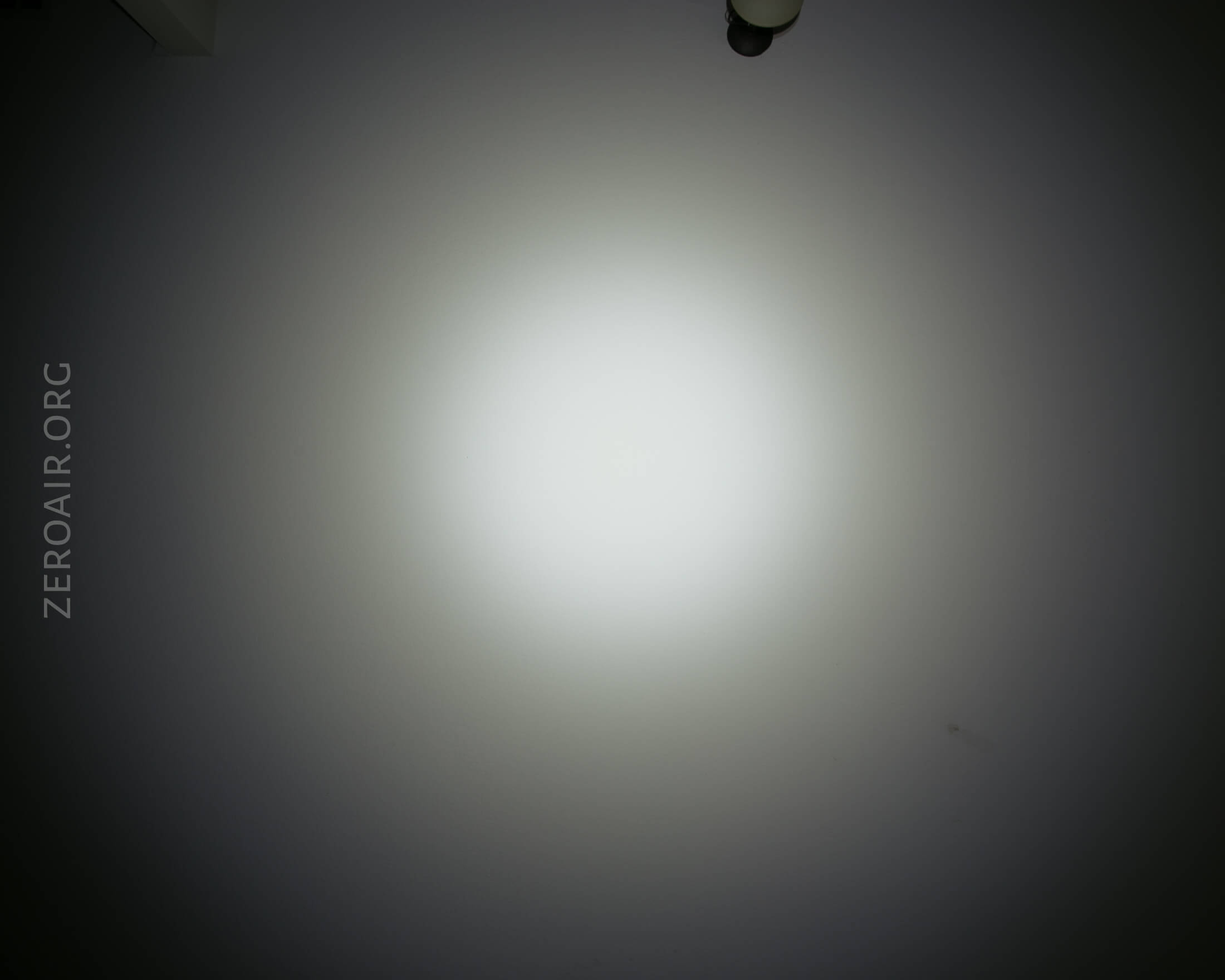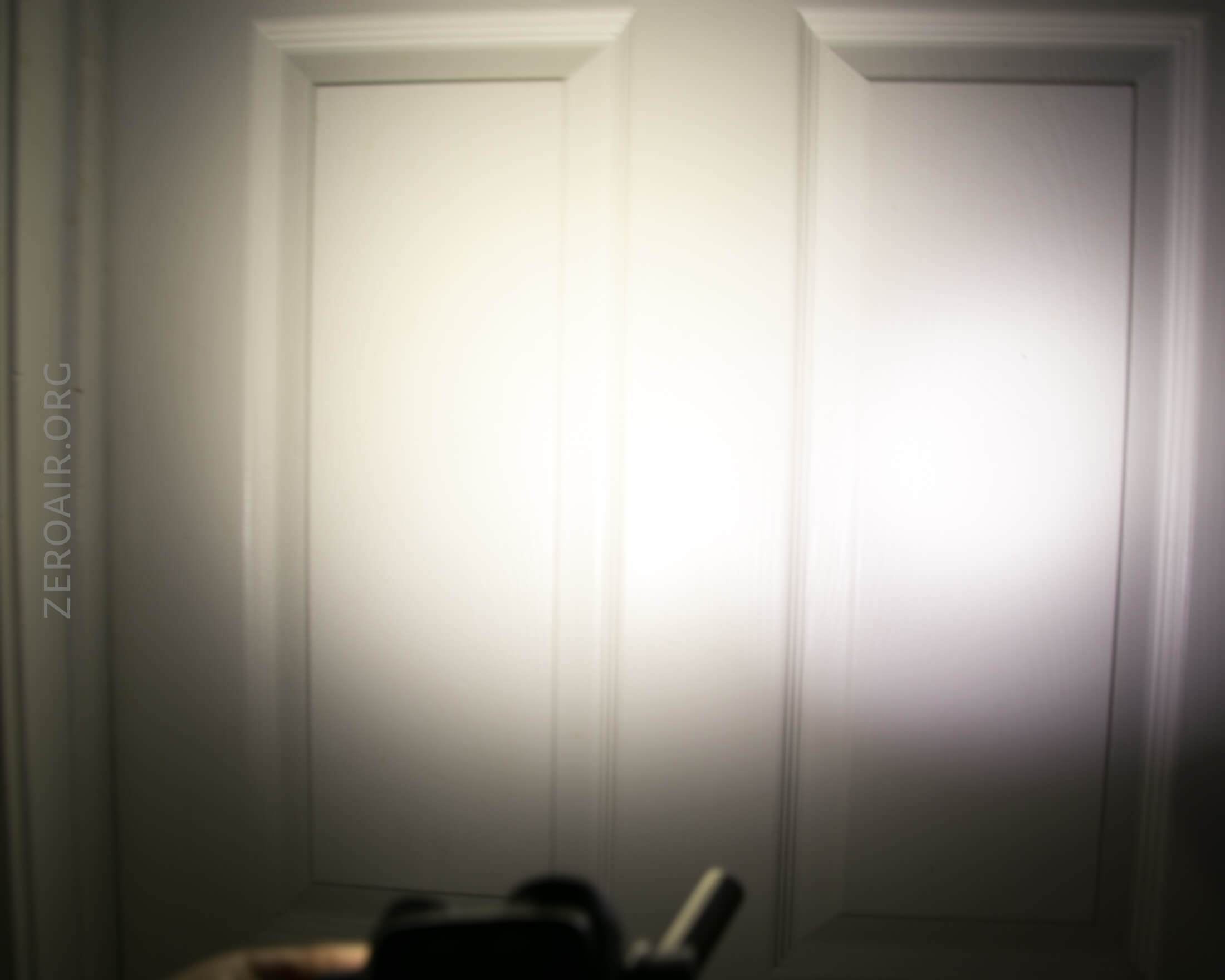These beamshots always have the following settings: f8, ISO100, 0.3s shutter, and manual 5000K exposure. These photos are taken at floor level, and the beam hits the ceiling around 9 feet away. First, the 4-mode throw emitter.