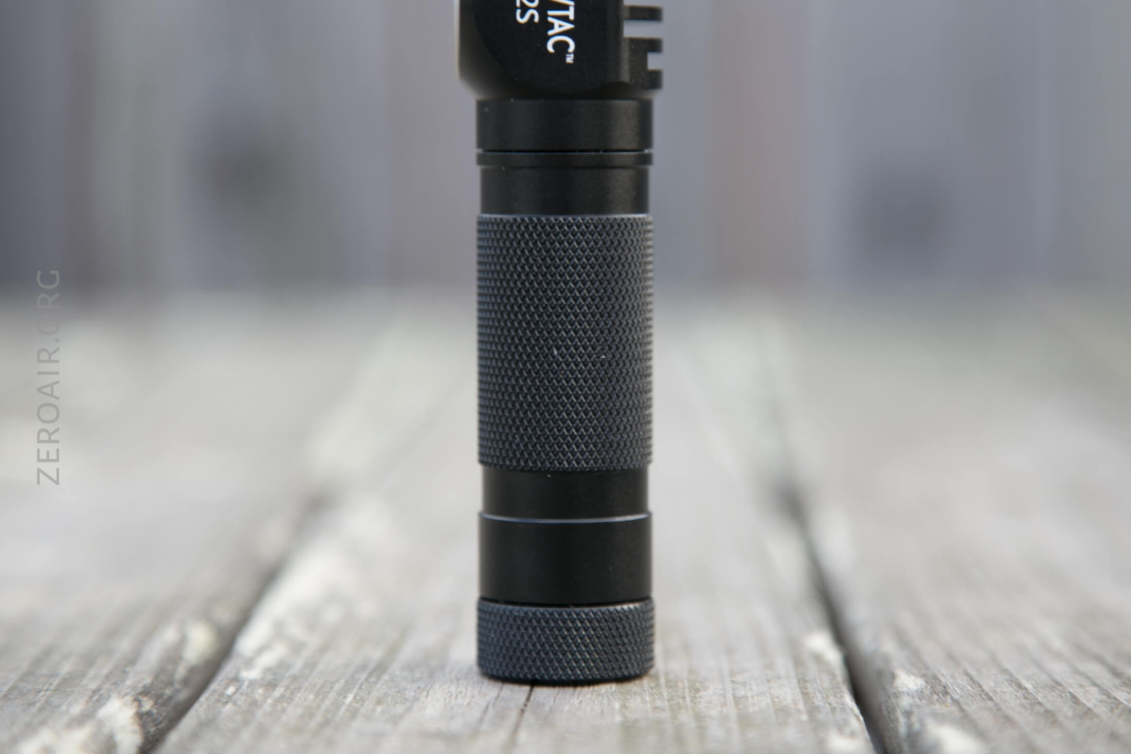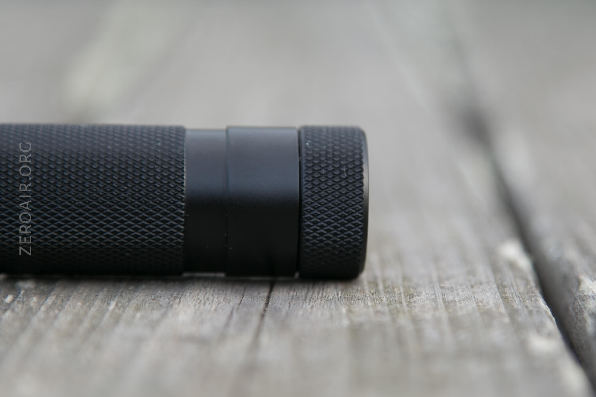 No complaints about build quality. In particular, I like most of the knurling. The tailcap, which must be removed for cell changes, has plenty of knurling and is large enough for a good grip.
