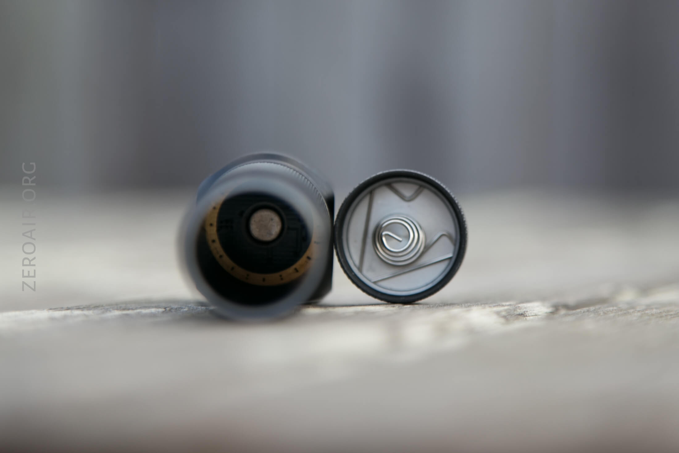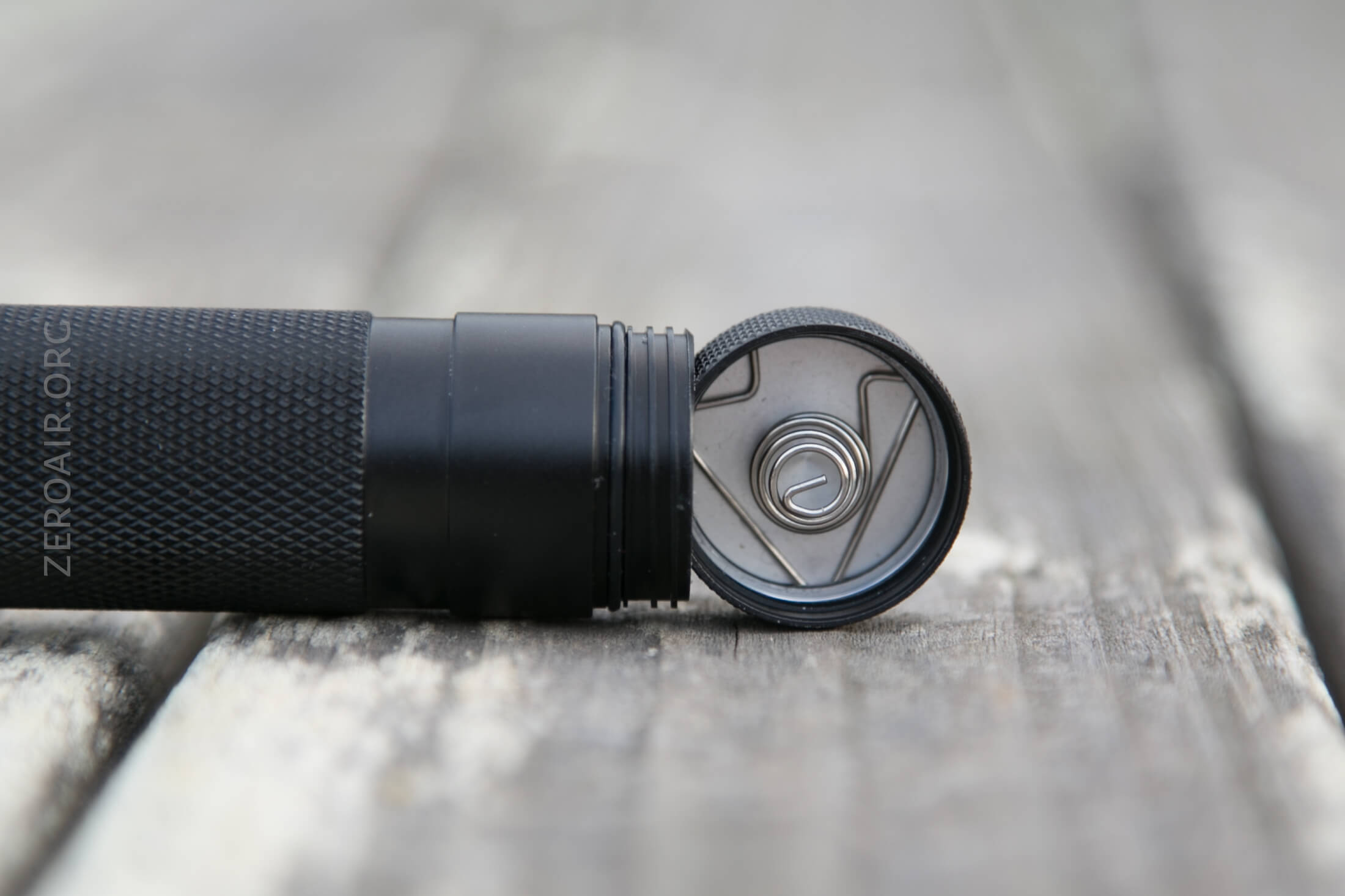 The tailcap has a big spring, but no magnet. Also note the threads on the body there – big beefy square-cut threads and not many of them. Just around a turn and a half for removal.