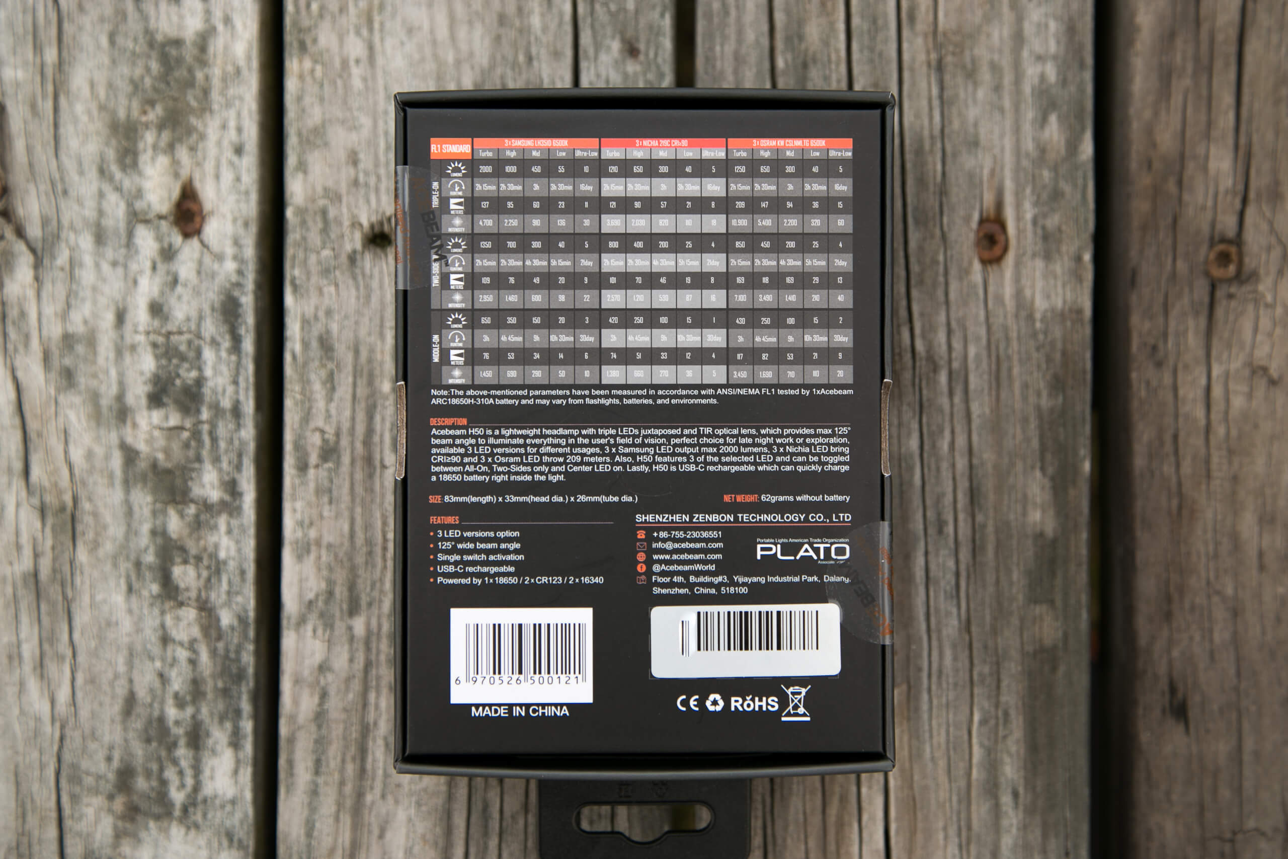 Acebeam ships in some very nice packages. And the back of the box has quite a bit of information.