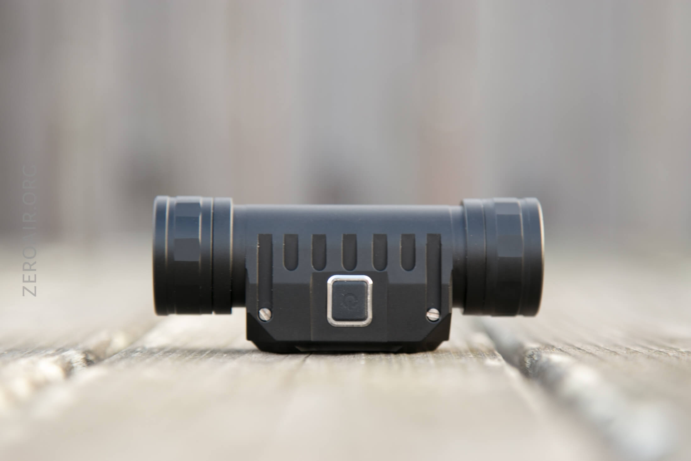The H50 is possibly a bit unusual for an 18650 headlamp. The emitters are in the center of the body, along the cylinder of the cell. It’s a good, very balanced design, and the light as a whole is very well built. Also symmetrical, which is something I like and appreciate.