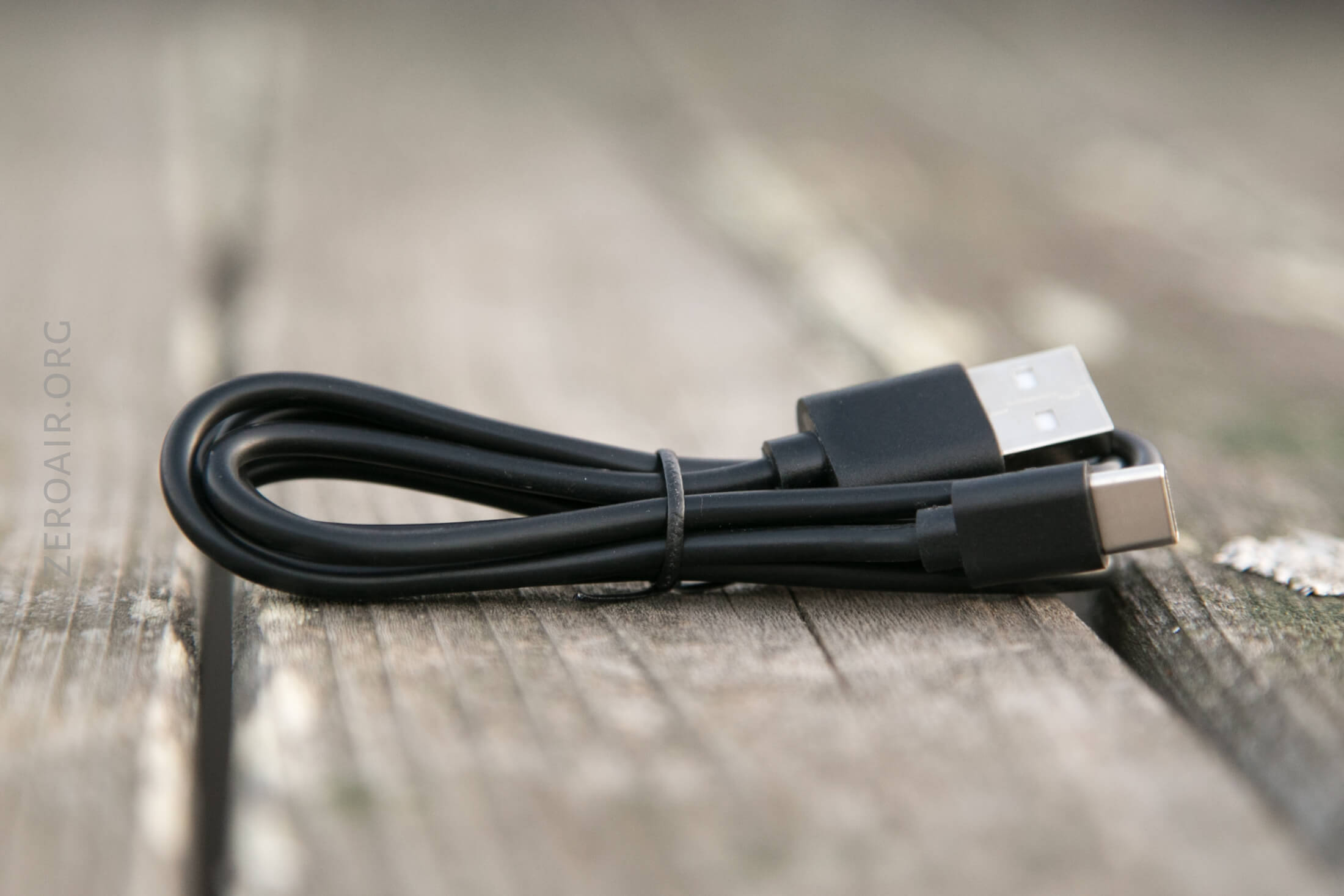 The necessary cable is included. USB to USB-C, not USB-C to USB-C.