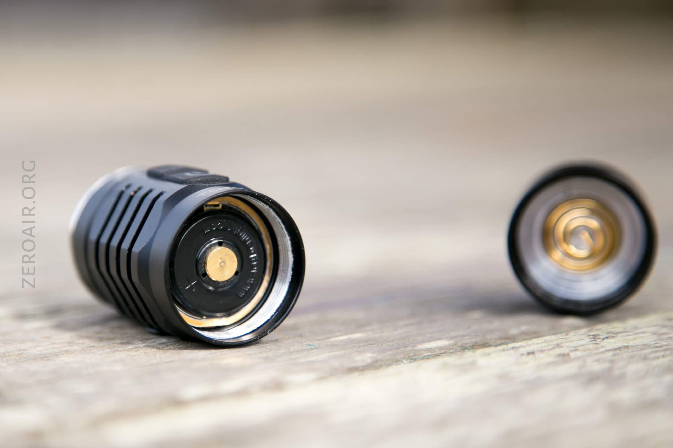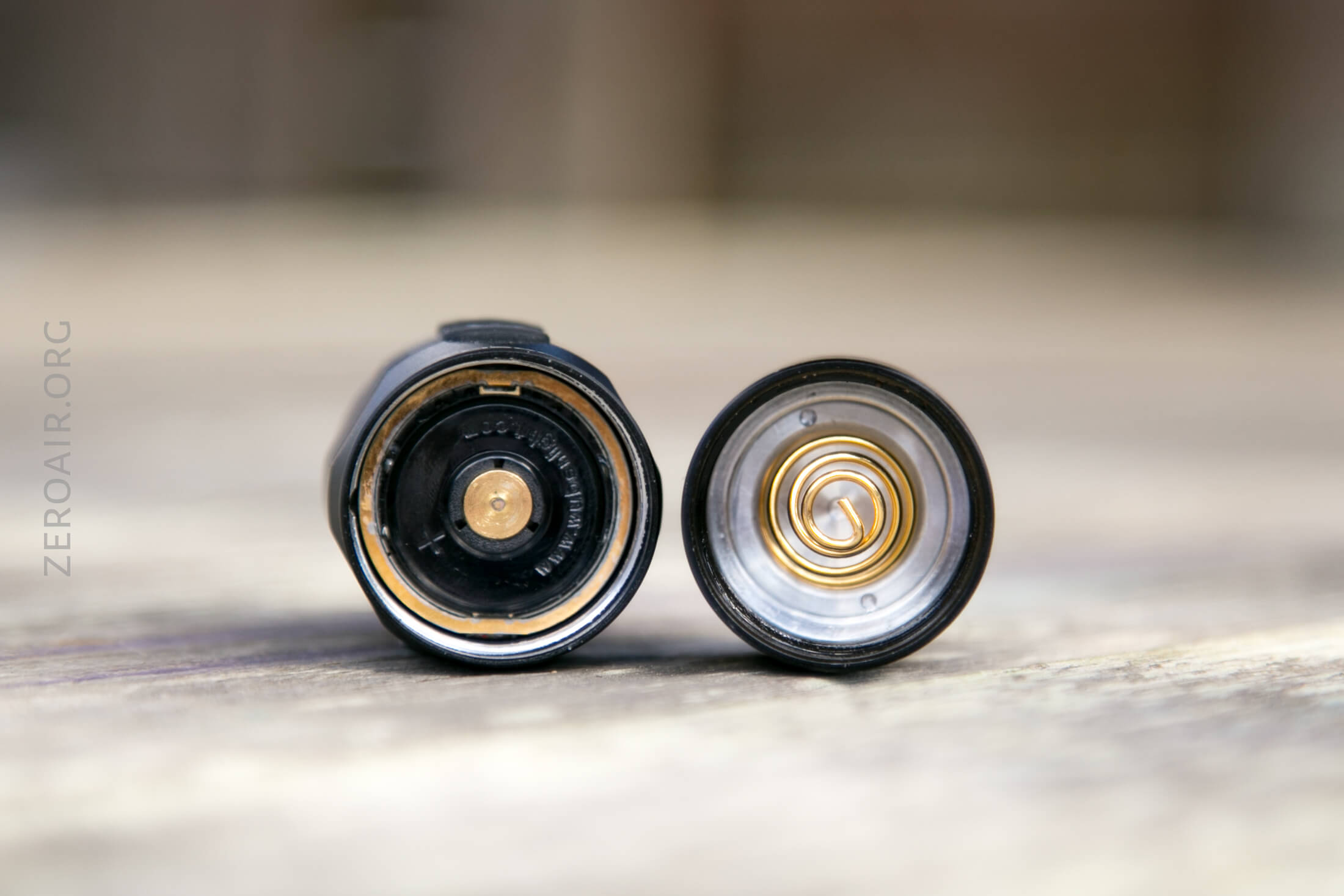 The tail cap has a big beefy spring, while the head has a brass button.