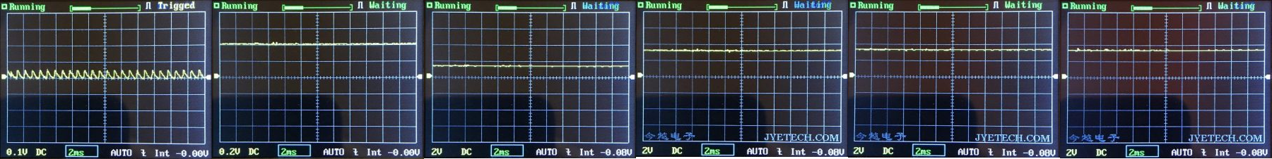 No PWM was observed. The sawtooth seen on the lowest mode (leftmost below) is not PWM and isn’t visible to my eye anyway.