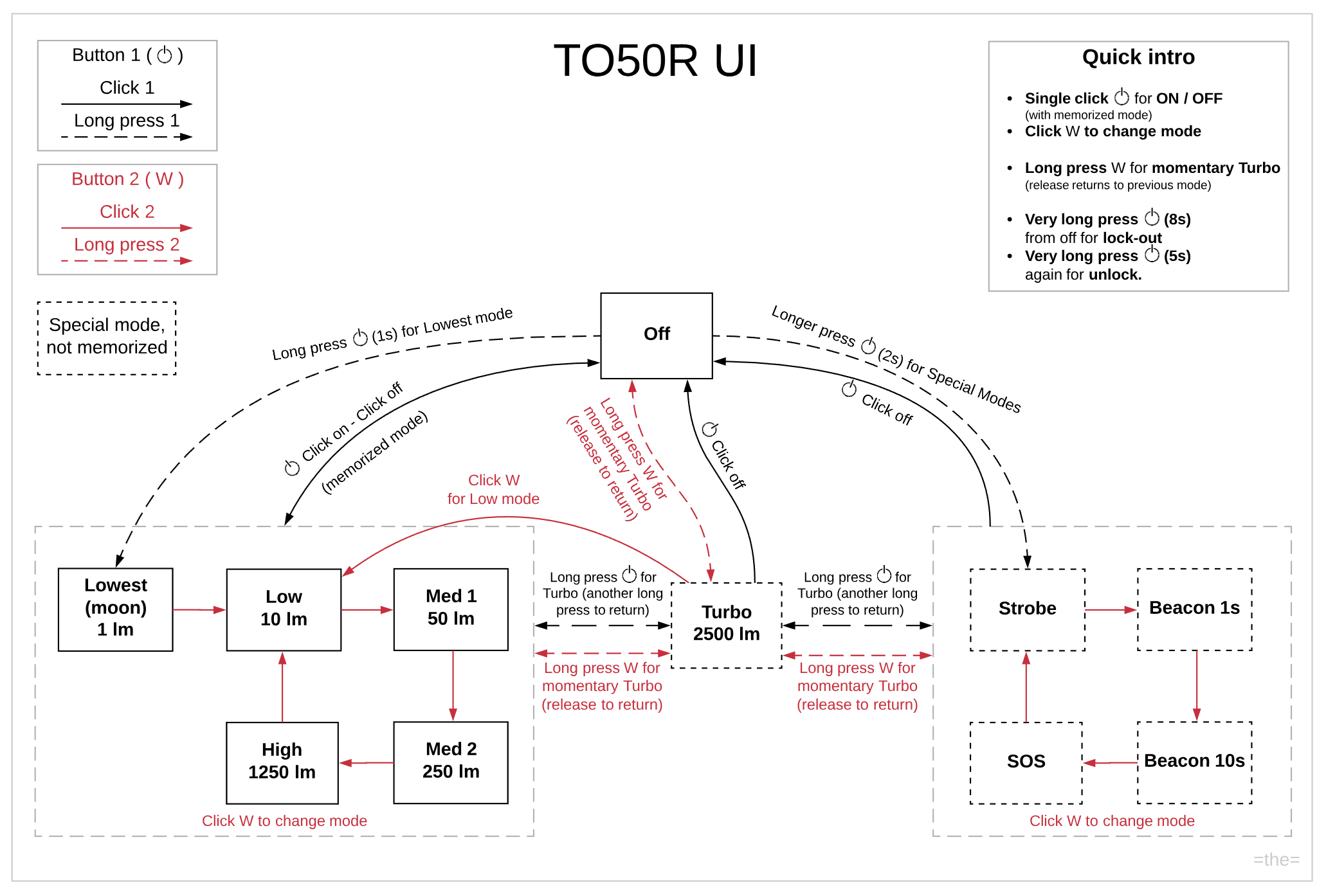 | Special Modes | Click W | Special advance (Strobe > Beacon 1s > Beacon 10s > SOS) |