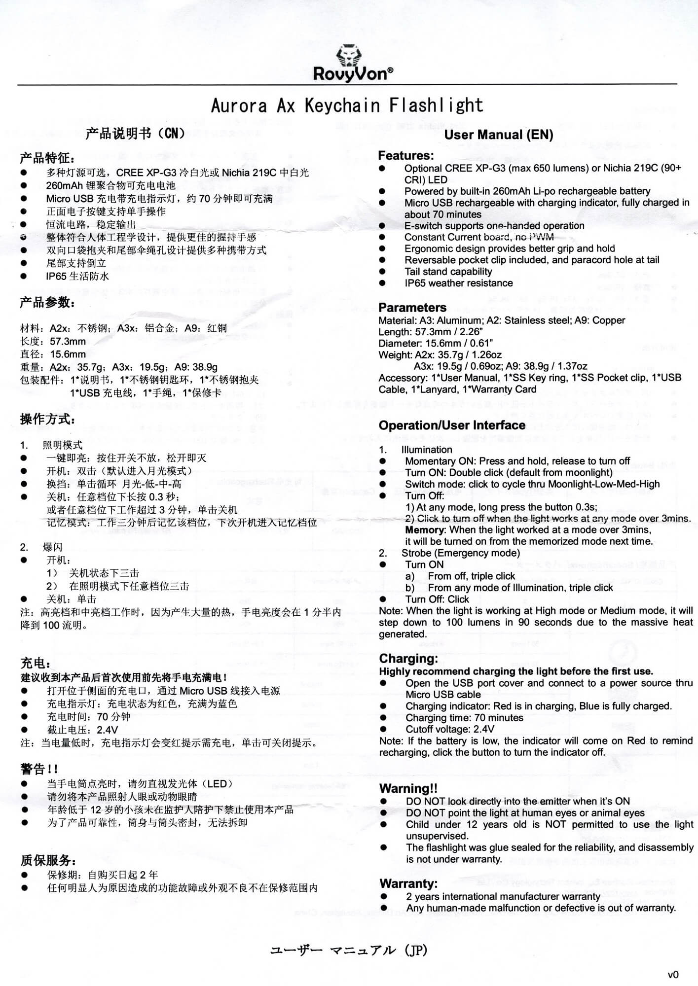 - RovyVon A3x Keychain Flashlight