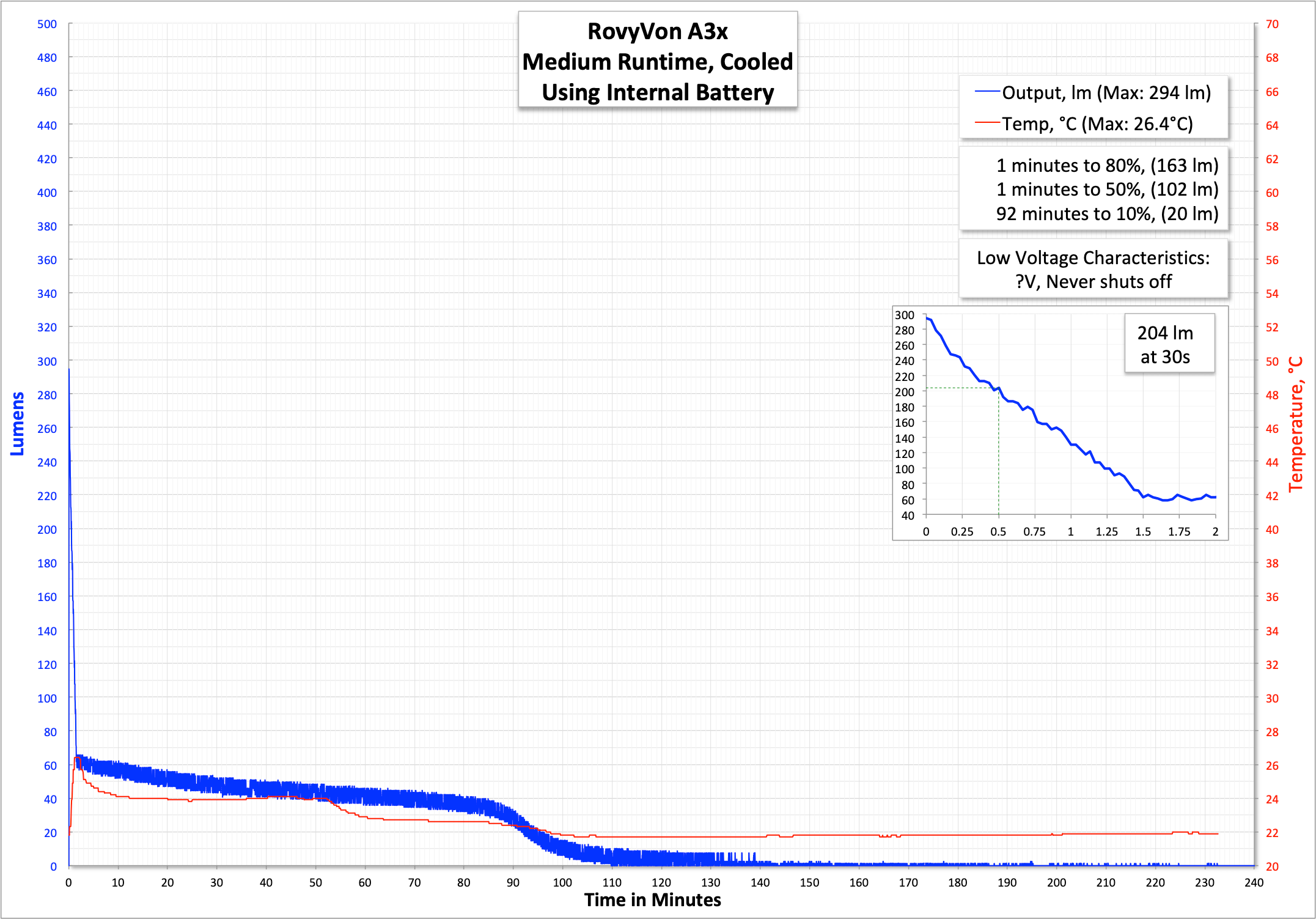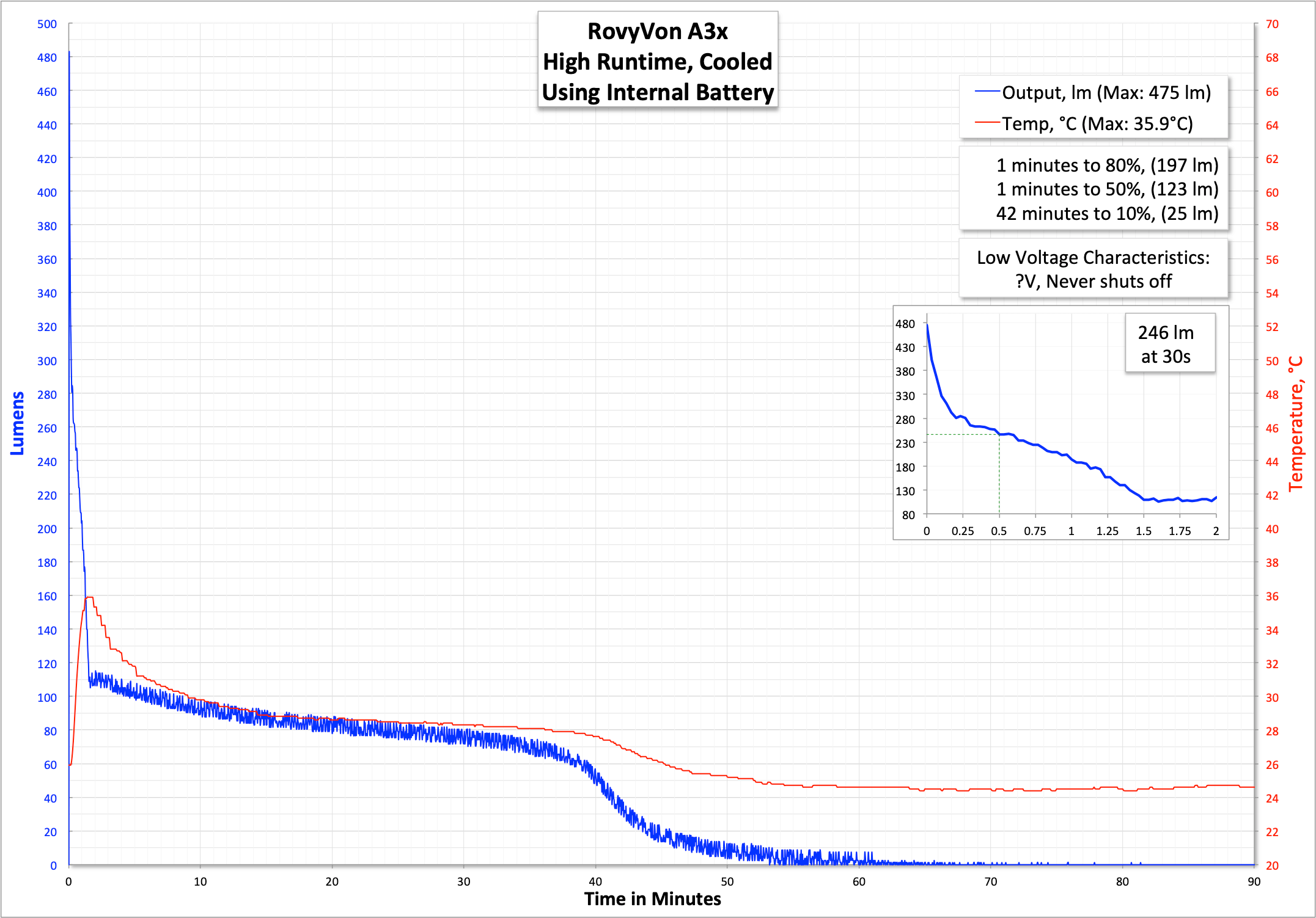 | Measured Lumens (at 30s) | 246 (54.7% of claim)^ |