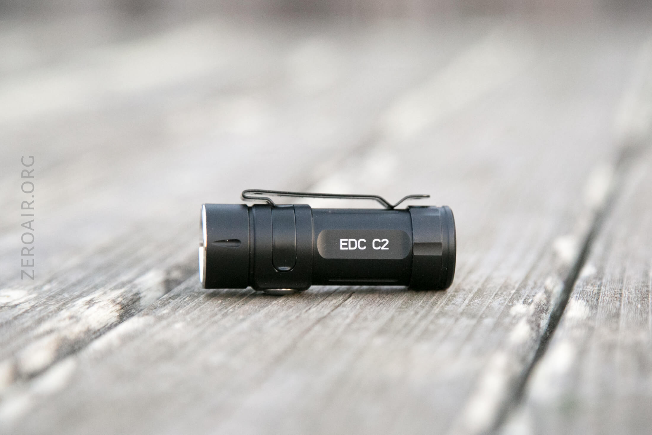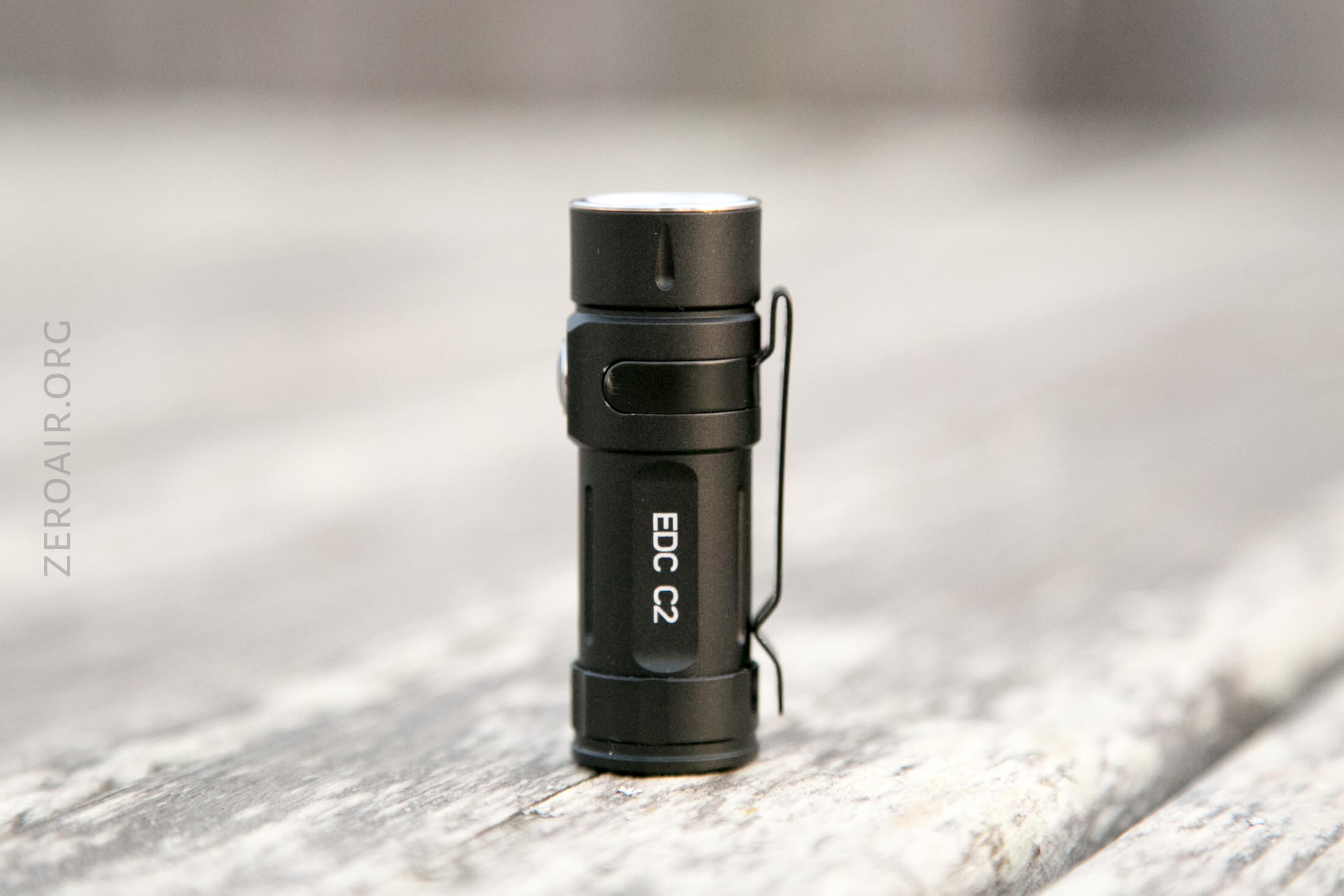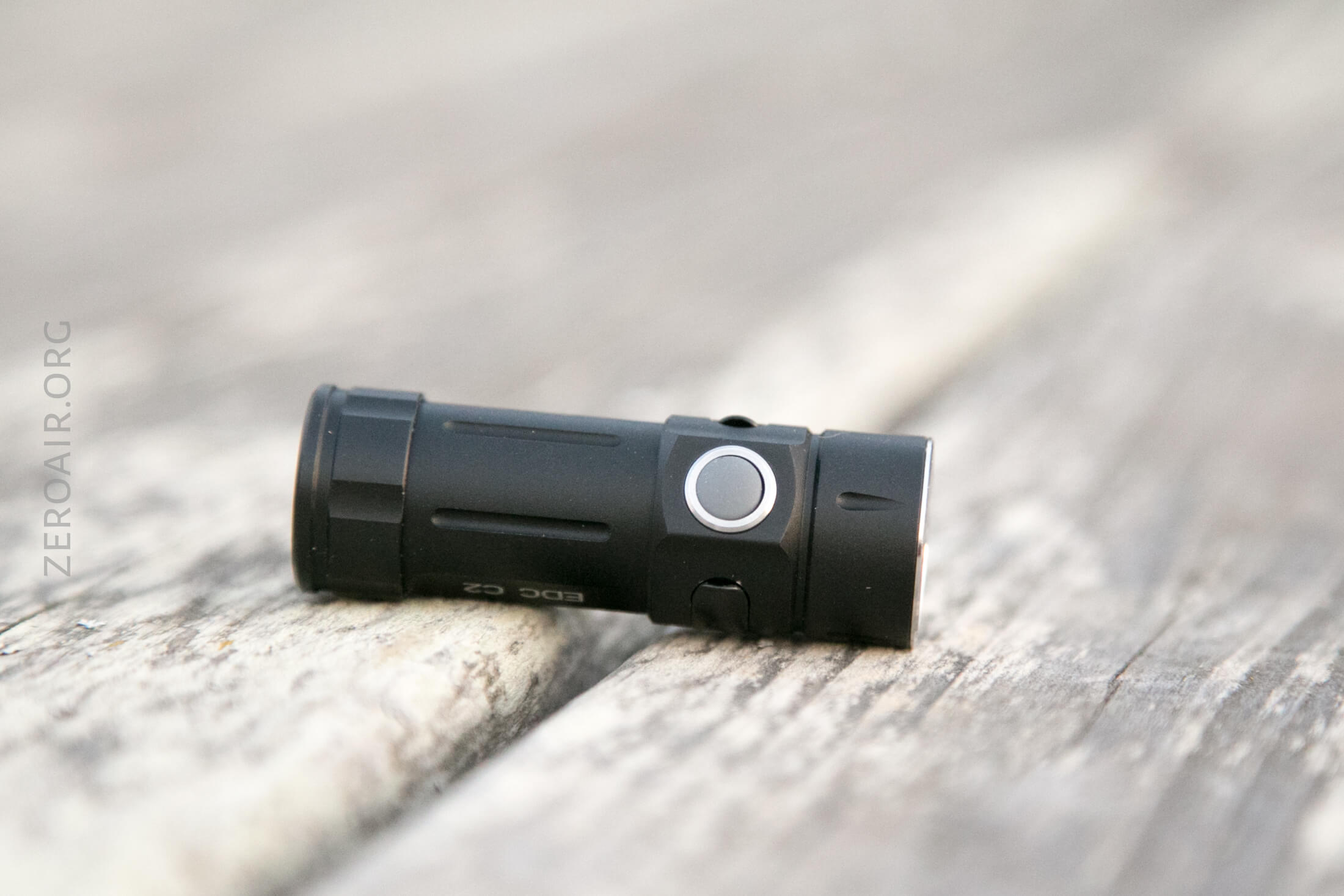 There’s a single indicating e-switch on the side of the head of the EDC C2. It’s gray (really translucent) and small (remember how small this light is overall), and quite clicky. The switch is proudish and easy to find.