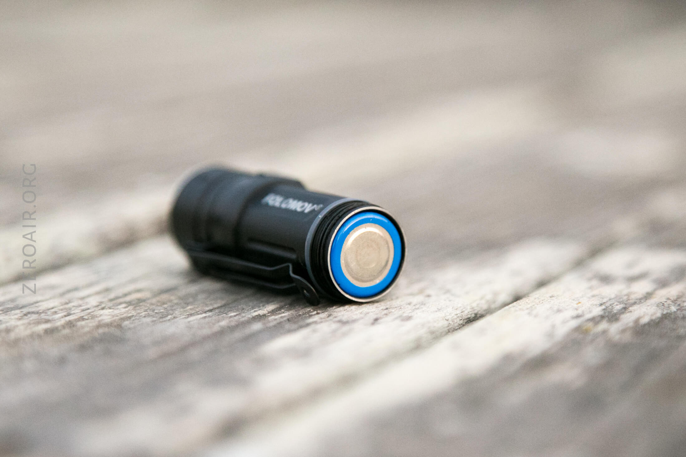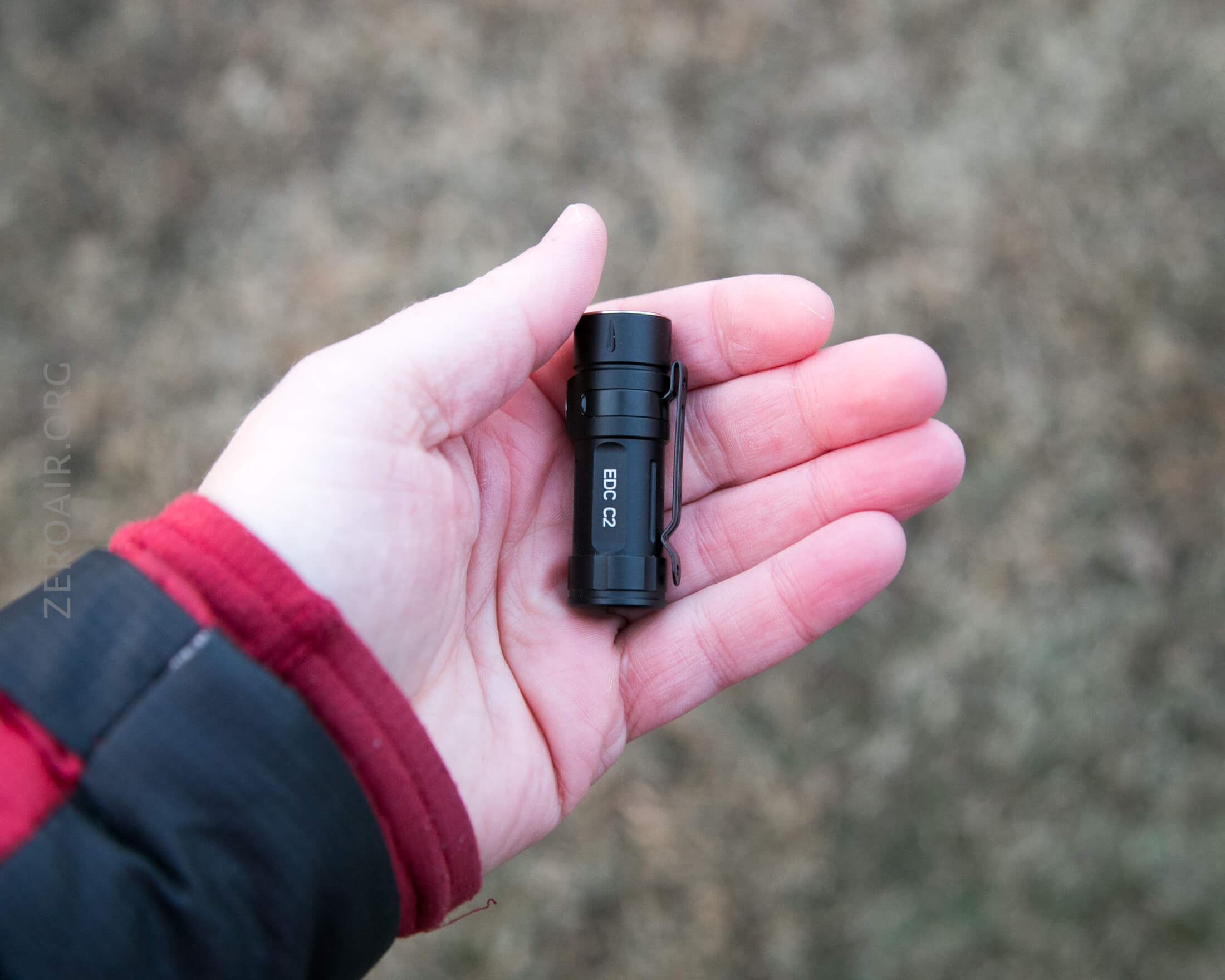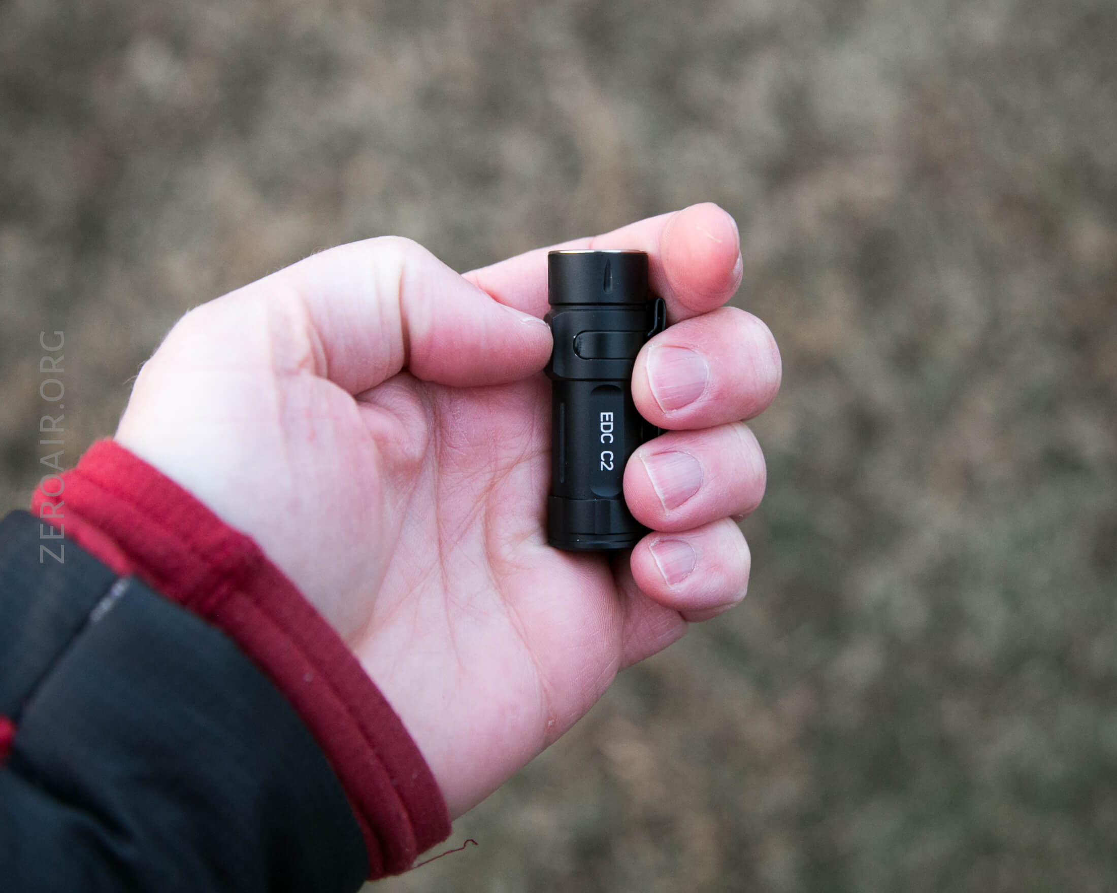 There’s a single indicating e-switch on the side of the head of the EDC C2. It’s gray (really translucent) and small (remember how small this light is overall), and quite clicky. The switch is proudish and easy to find.