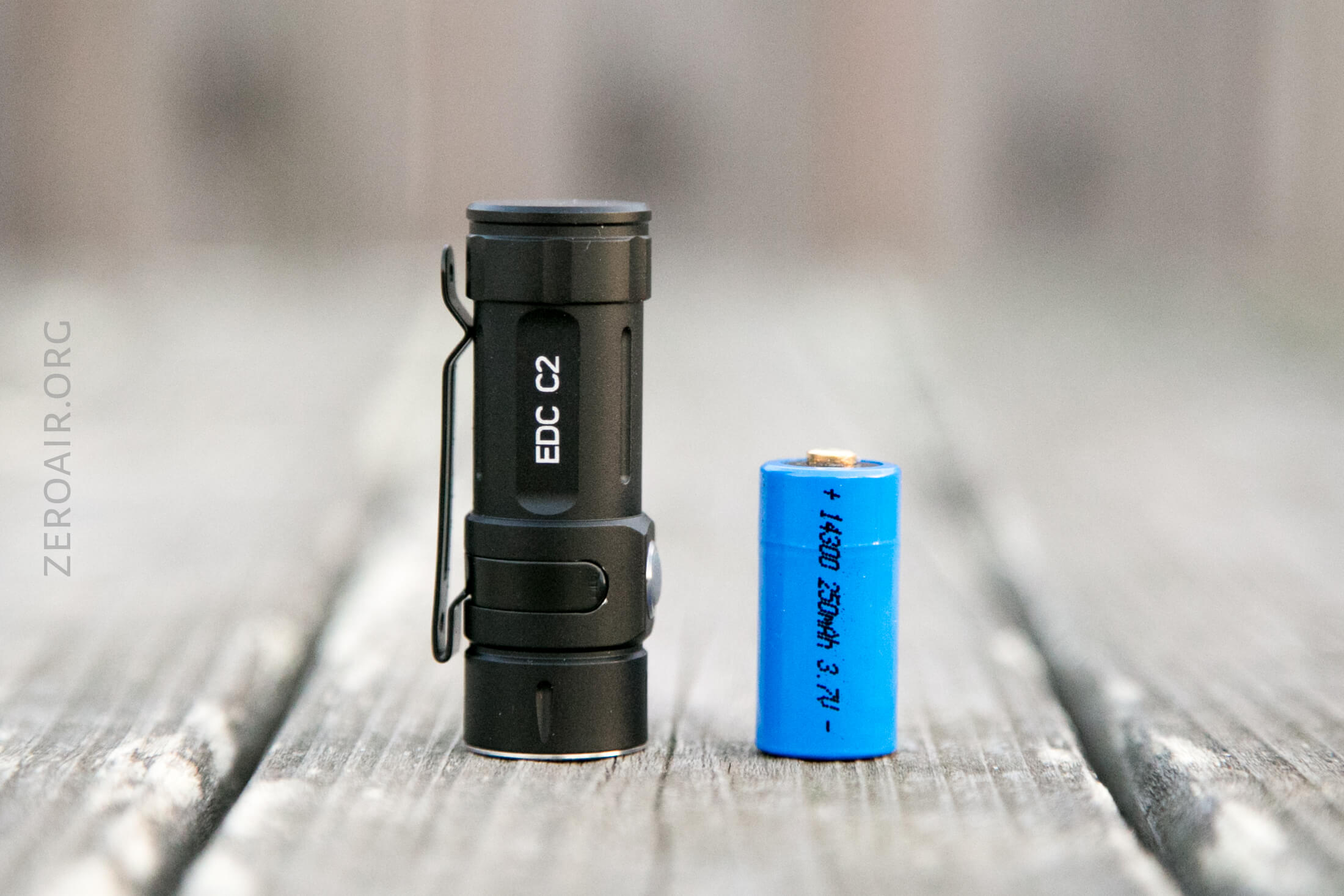 As stated above, the EDC C2 runs off lithium-ion power. In this case, it’s a custom (or “rare” – I’m not certain it’s a Folomov custom item) 14300 lithium-ion cell, which also has built-in charging.