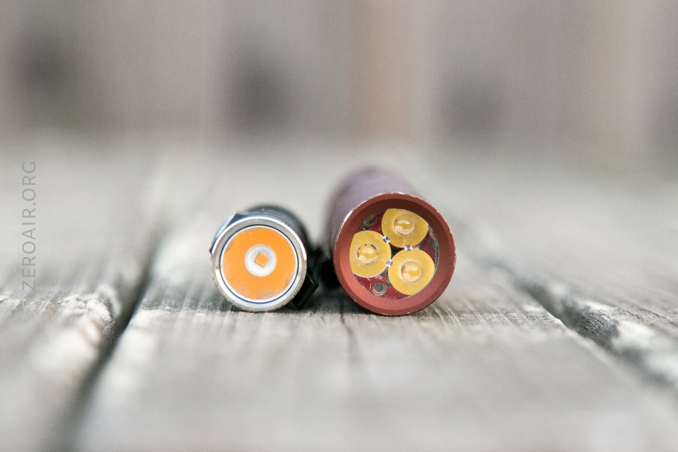 And here’s the light beside my custom-engraved TorchLAB BOSS 35, an 18350 light. I reviewed the aluminum version of that light in both 35 and 70 formats.