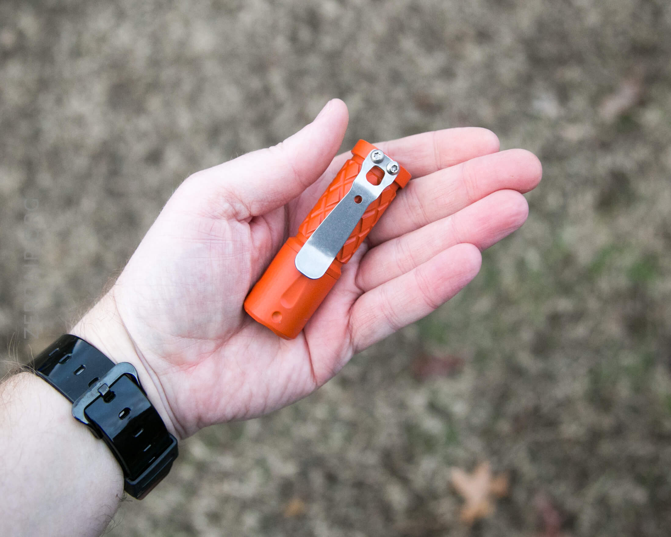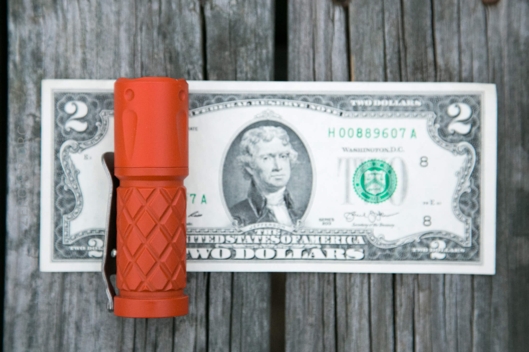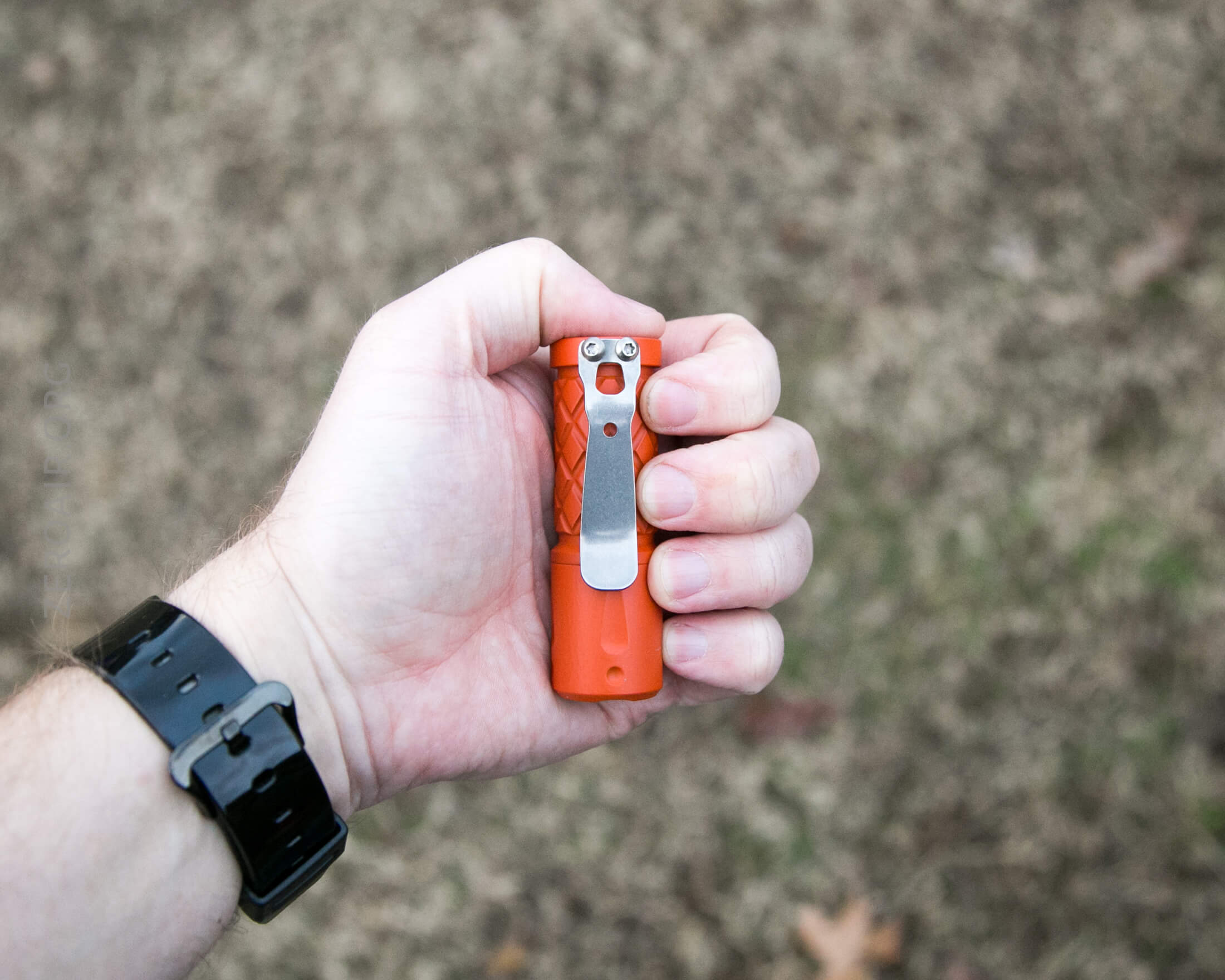 Above, you’ll see what my biggest and maybe only criticism of this light. The optic is just too covered! I want much more reveal here – there’s no need for the bezel of the light to require so much coverage over the optic. BOSS does this well, as does the Hanko Trident. I do like how short the bezel is, and also that it has some shape so that the light can sneak out the bottom when headstanding.
