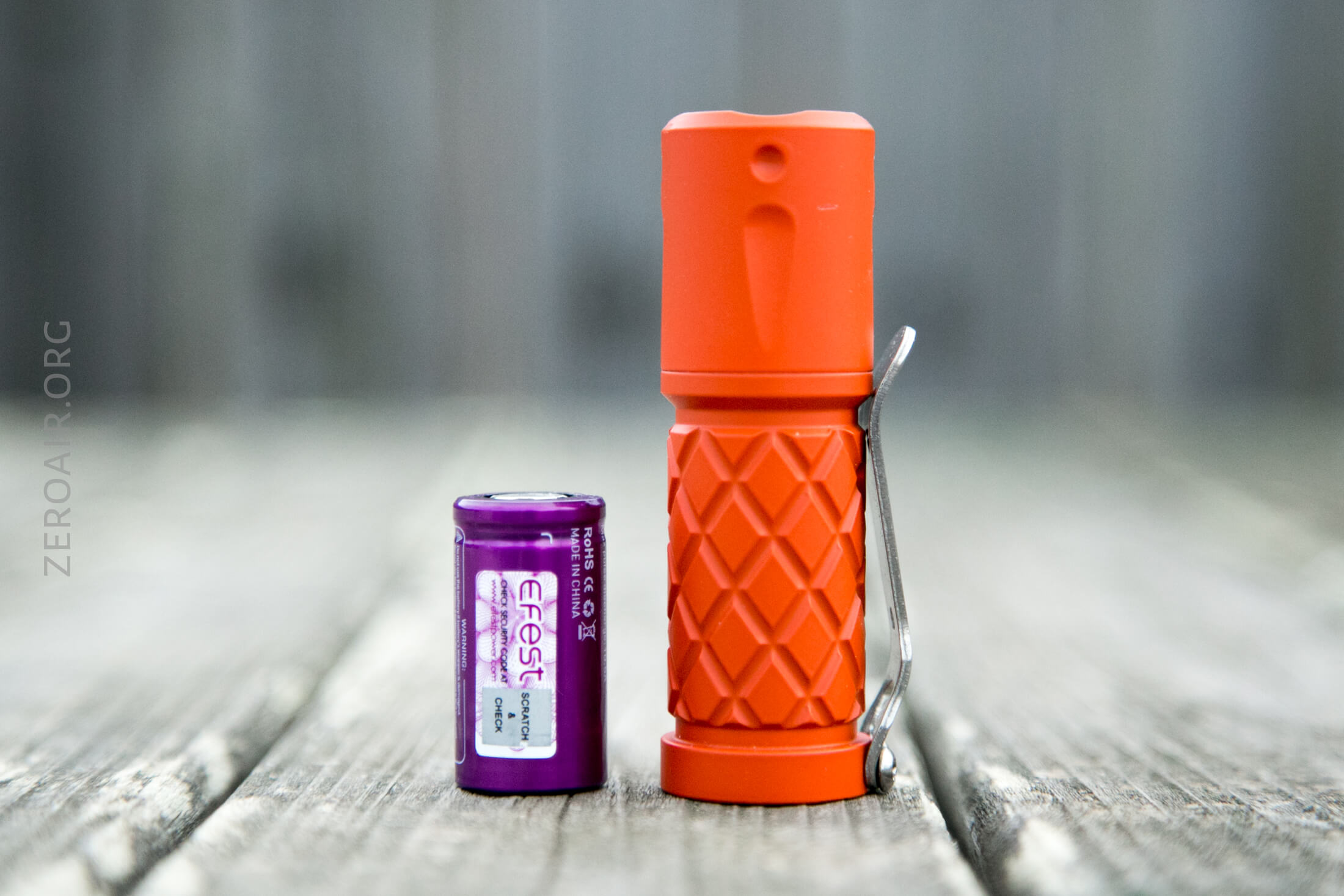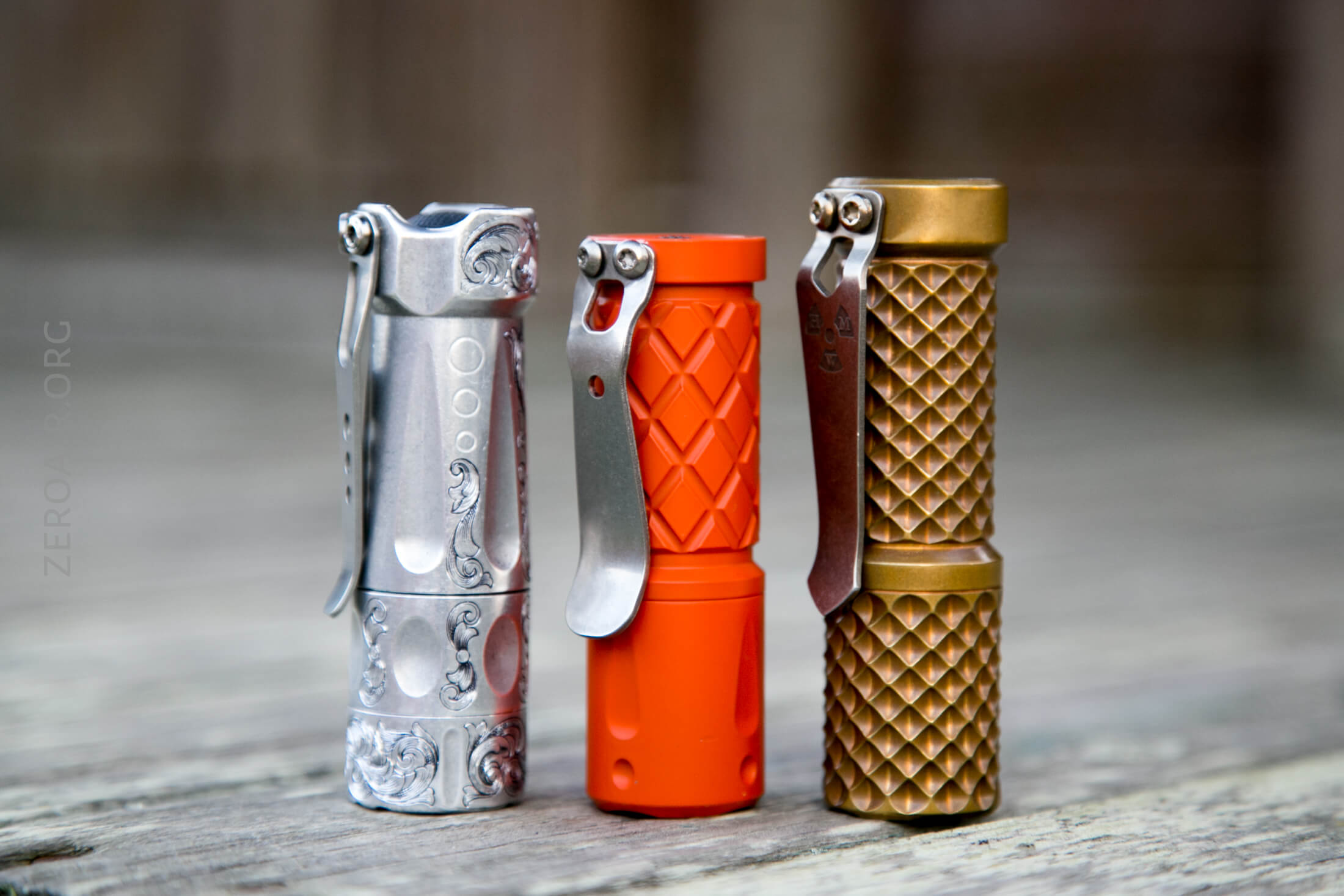 And here’s the light beside my custom-engraved TorchLAB BOSS 35, an 18350 light. I reviewed the aluminum version of that light in both 35 and 70 formats. Notably, it’s much smaller than the TorchLAB BOSS 35!