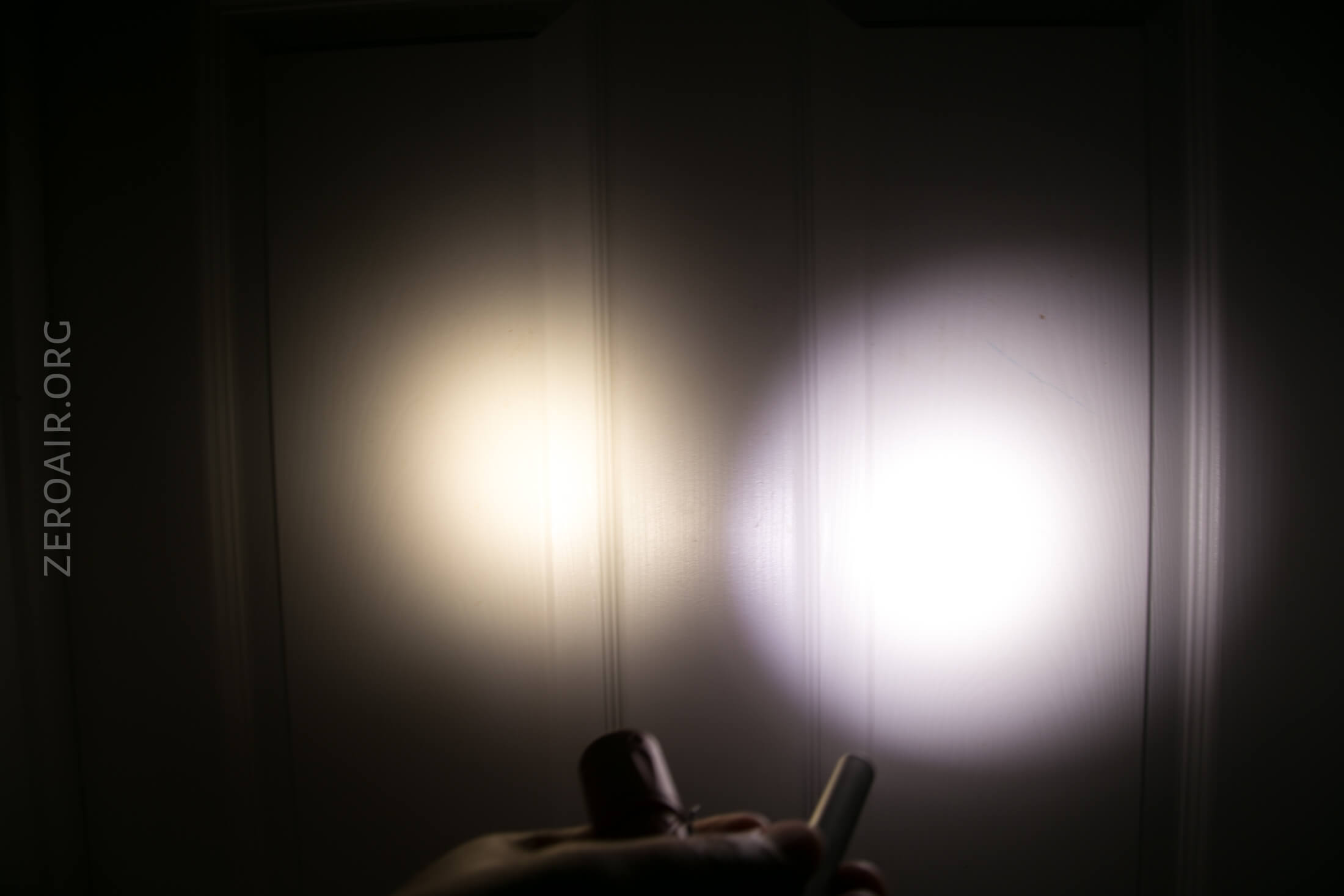 My copy has Luminus SST20 in 4000K. They’re very warm. The optic is unspecified in the product literature, but there is a sapphire lens over it. But the optic is another thing that’s been modified in this one – it has a 10511 optic for a smoother beam.