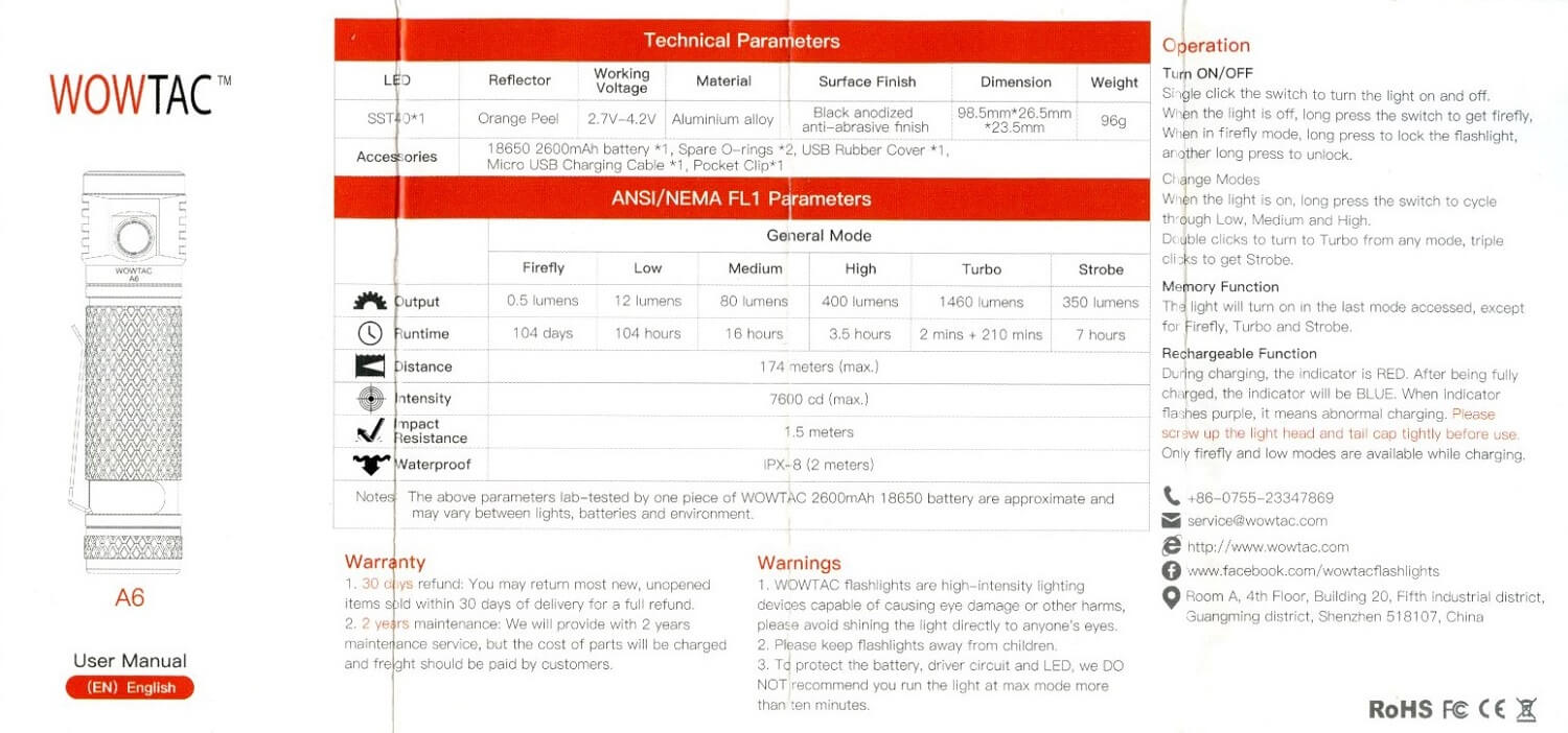 Here’s a link to the Wowtac A6 Flashlight product page. Wowtac also offers 2 years of maintenance service!