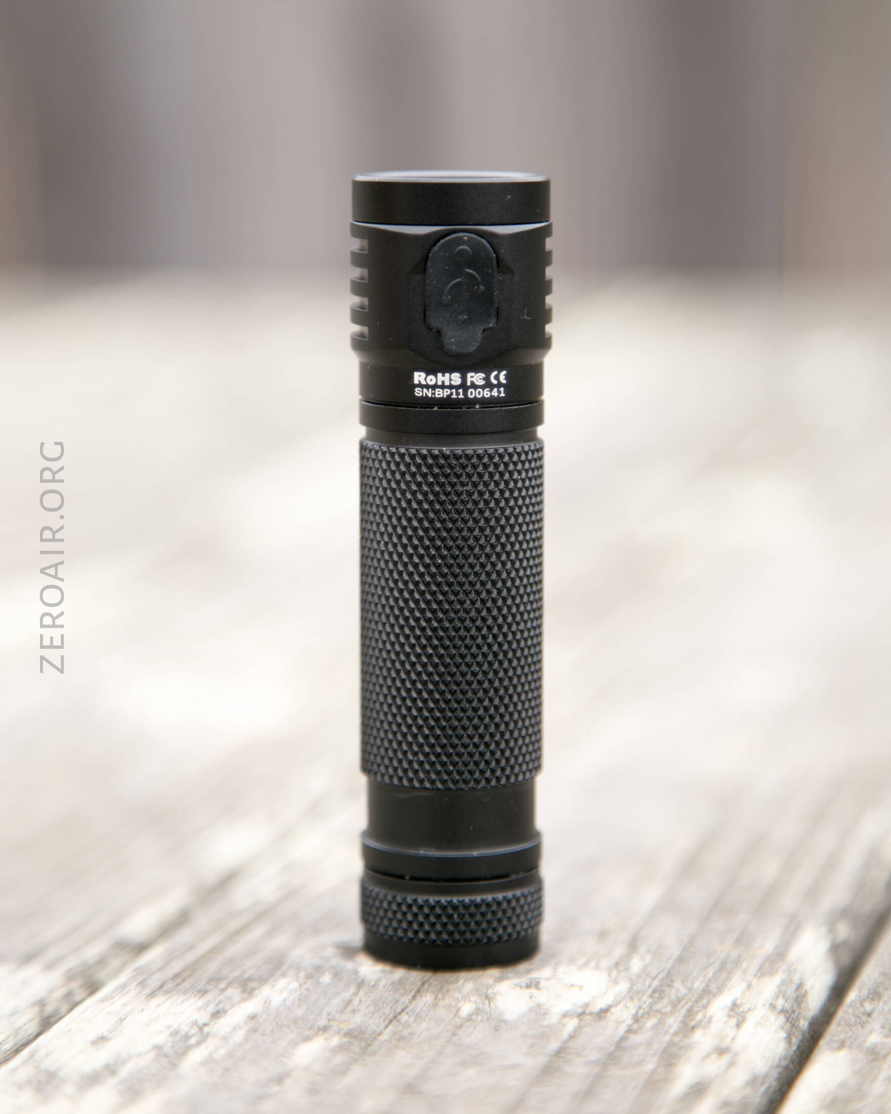Since the tailcap comes off, you can actually cut down the body tube to accommodate a smaller battery. With a little bit of file work you can then epoxy the tailcap back on. I’m running an 18500 and the light is a pinch shorter than an S2+ with an 18350.