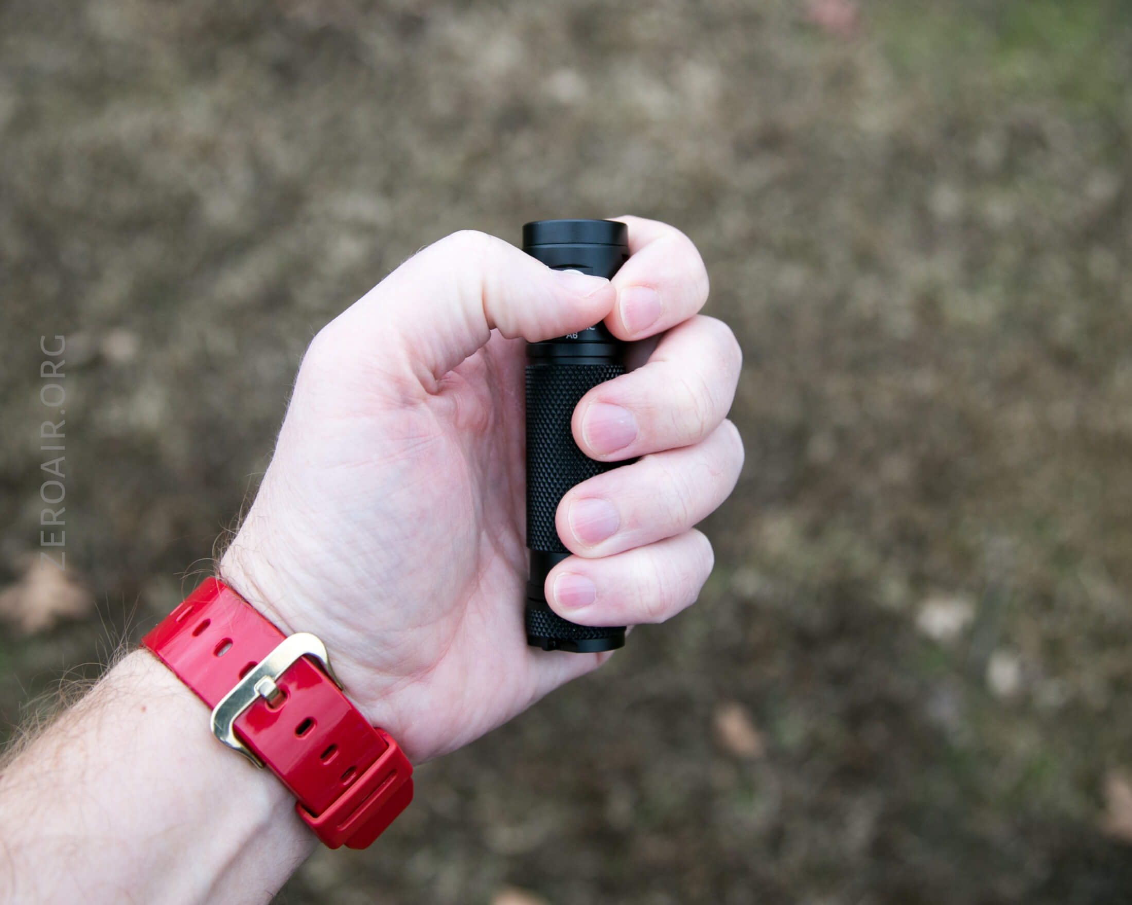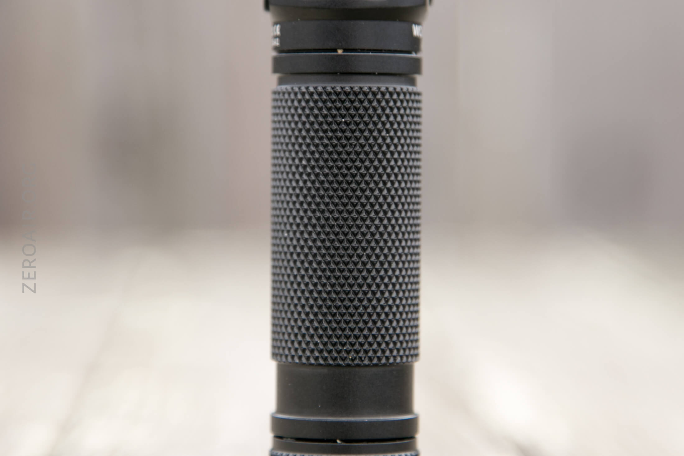 One thing I note immediately when holding this light is that the knurling is quite aggressive. It doesn’t tear the skin, but it’s very grippy.