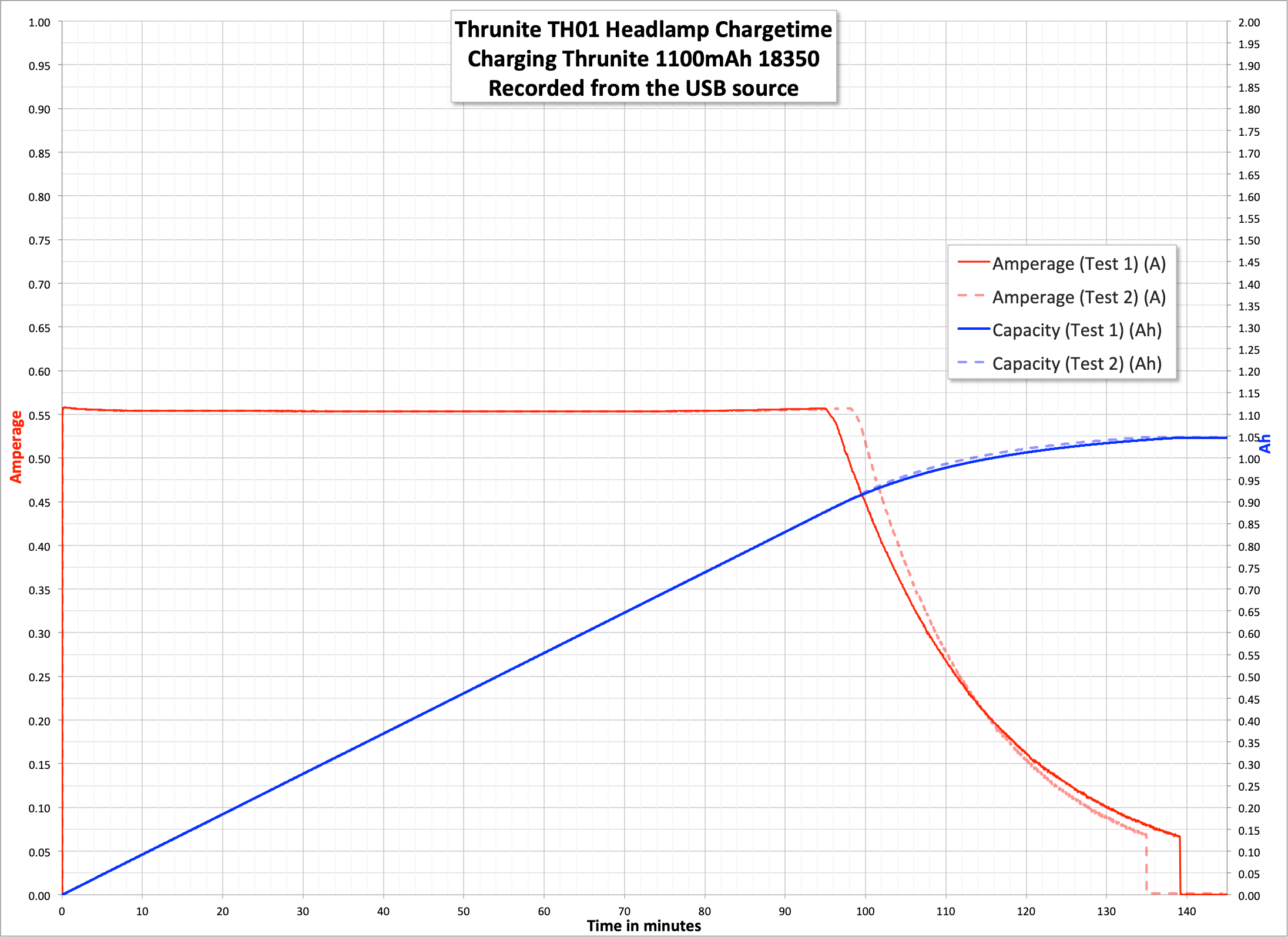 Charging is very consistent, at around 0.55A, and requires around 2.5 hours. These are reasonable specs; more importantly, the charge graph looks very well regulated.