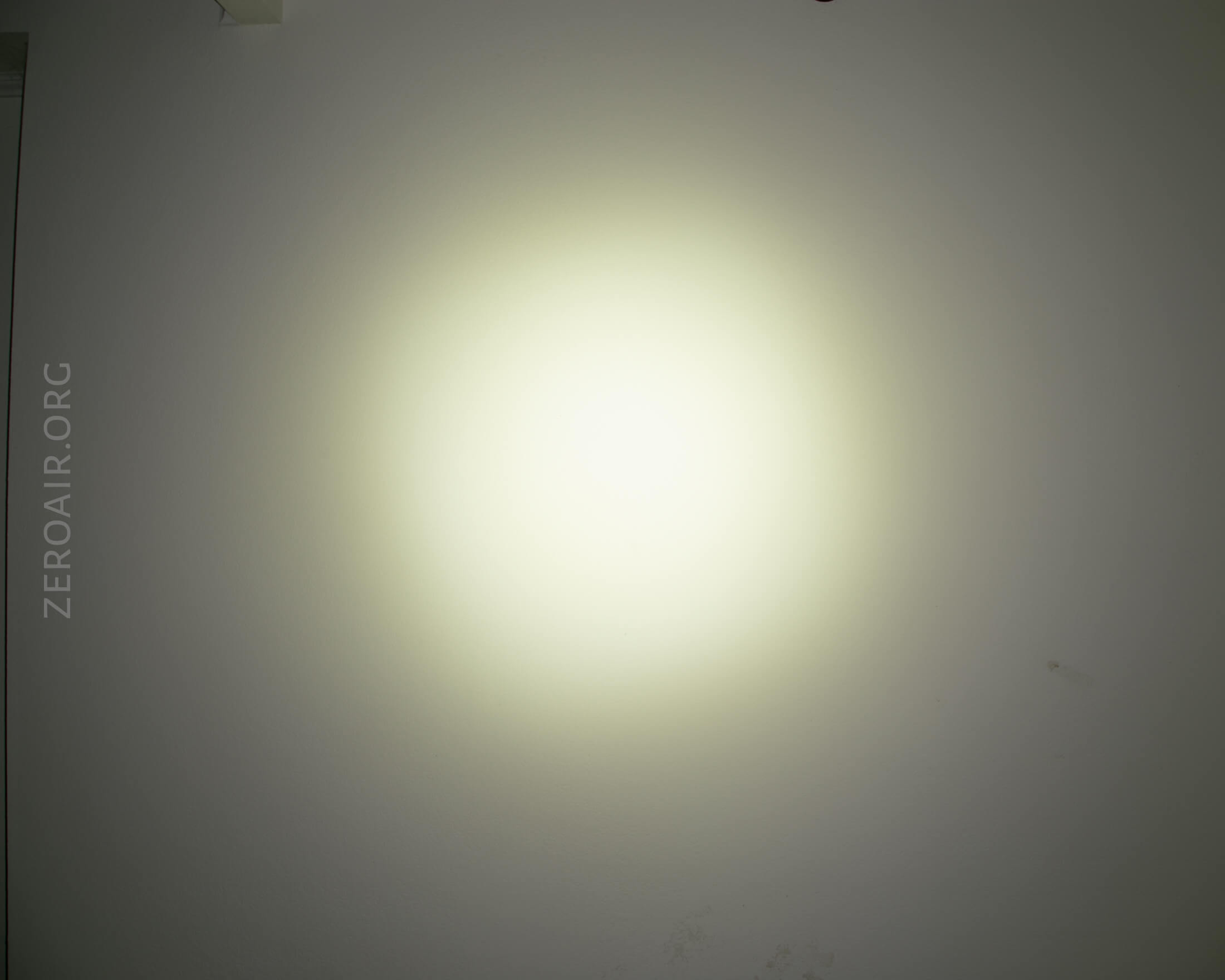The emitter here is a Cree XHP50 in CW. NW is also available, and that’s what I’d likely recommend (even though this CW is not bad). The reflector is shallow and broad and has a very light orange peel texture.