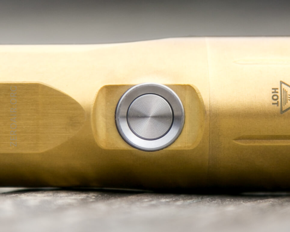 The button is a side switch, just below the head. It’s a metal-cover e-switch. The metal button has a metal surround, which both gives a place to find with your finger and helps prevent accidental presses.