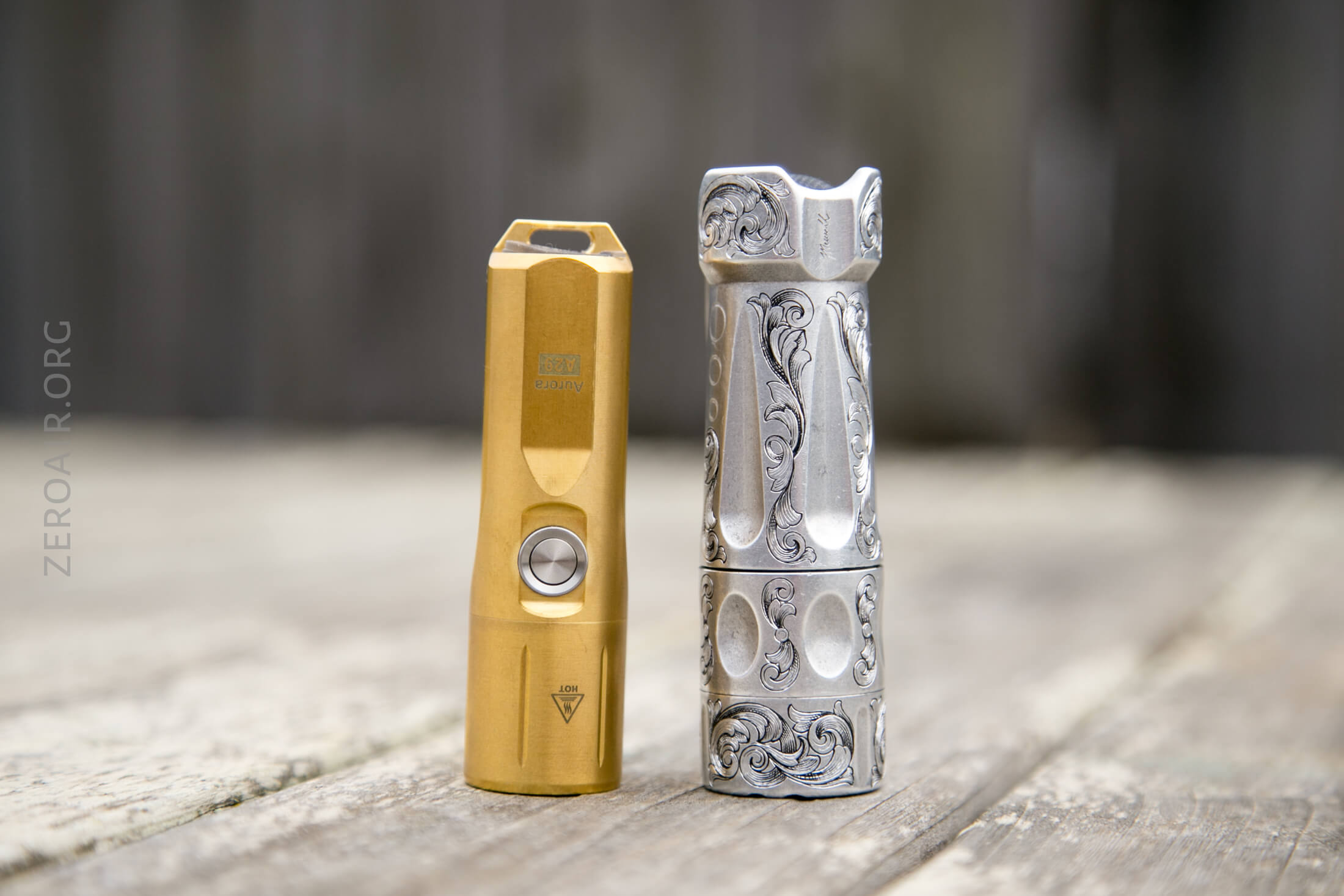 And here’s the light beside my custom-engraved TorchLAB BOSS 35, an 18350 light. I reviewed the aluminum version of that light in both 35 and 70 formats.