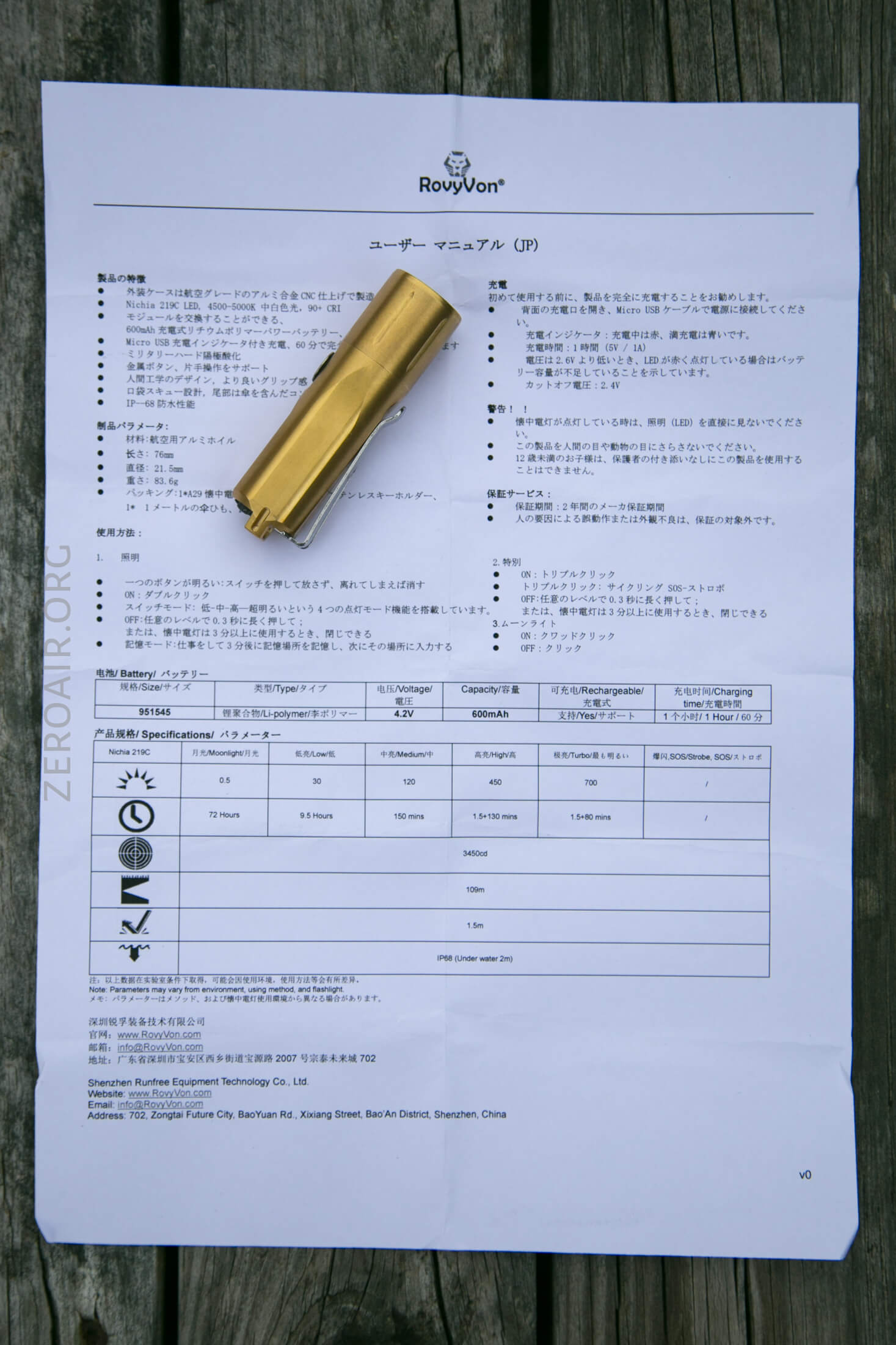Here’s a link to the RovyVon A29 Brass Flashlight product page.