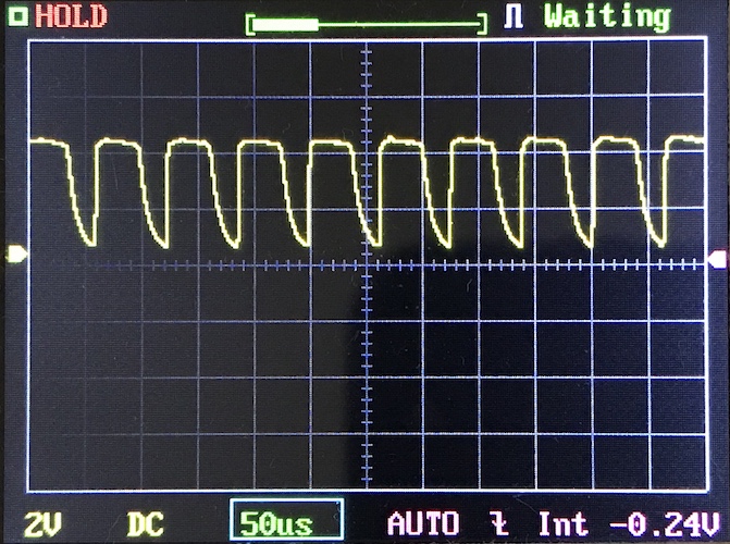 Then there’s the Ultrafire WF-602C flashlight, which has some of the worst PWM I’ve seen. It’s so bad that I used a post about it to explain PWM! Here are multiple timescales (10ms, 5ms, 2ms, 1ms, 0.5ms, 0.2ms) to make comparing this “worst” PWM light to the test light easier. That post also explains why I didn’t test the WF-602C at the usual 50us scale.
