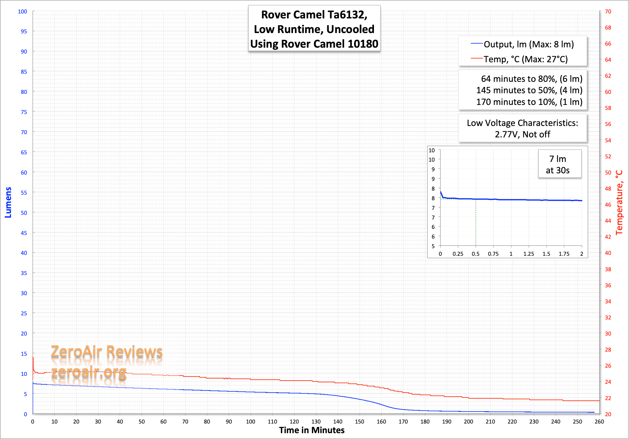 | Measured Lumens (at 30s) | 81 (62.3% of claim)^ |