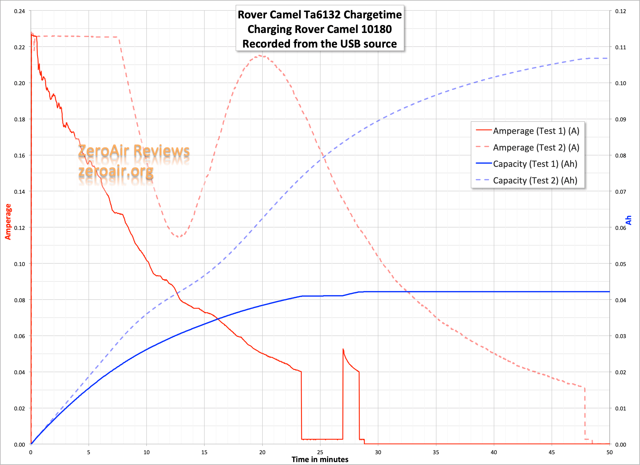 The charging looks a bit weird, and I can’t explain either the disparity between Test 1 and 2, or what’s going on with the huge hump in Test 2. I expect that Test 2 is more like what usually happens, but either way, the cell isn’t charged too fast. So we’ll call this one a wash.