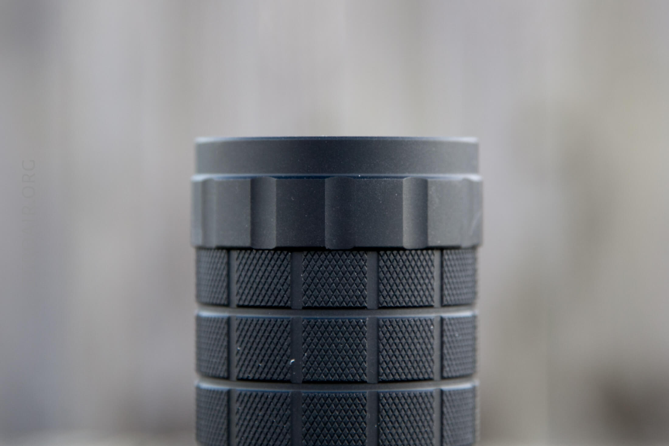 The threads on the head/body interface are unanodized, square-cut, and sort of long. The light can be locked out by breaking the contact here – very tiny twist.